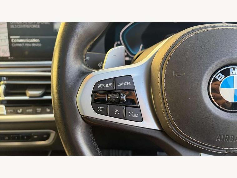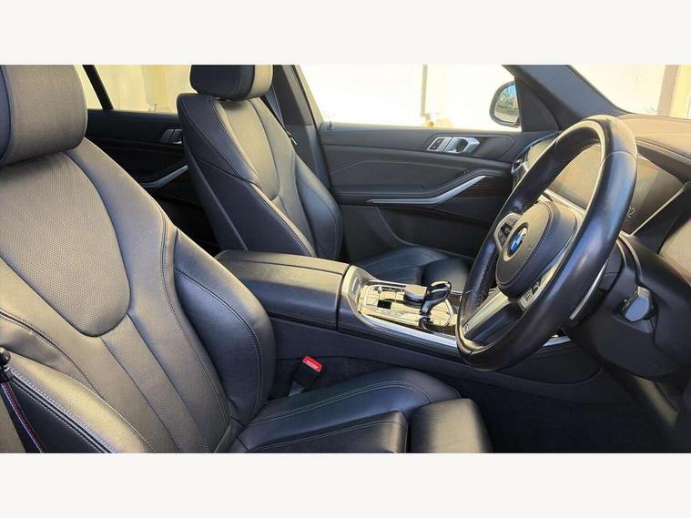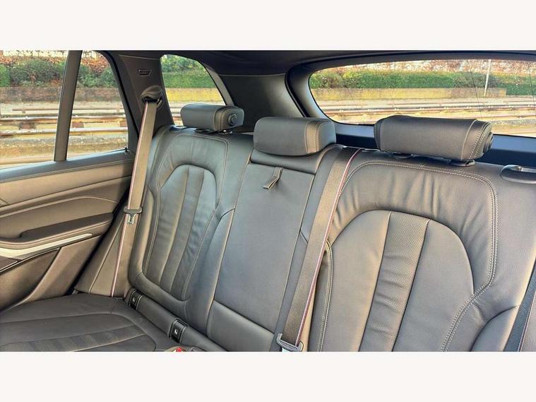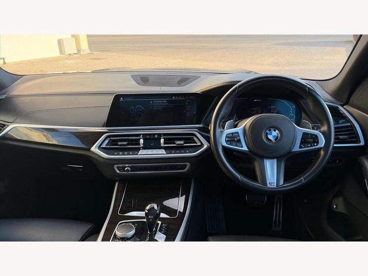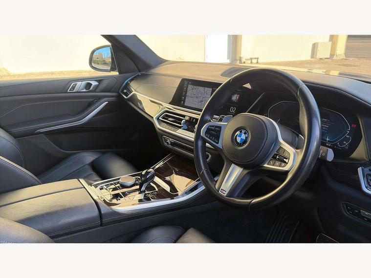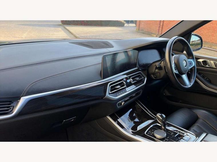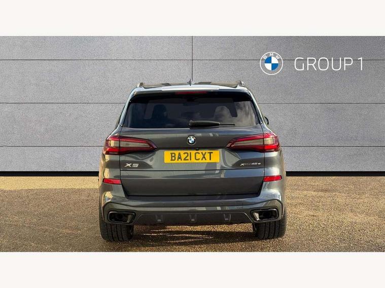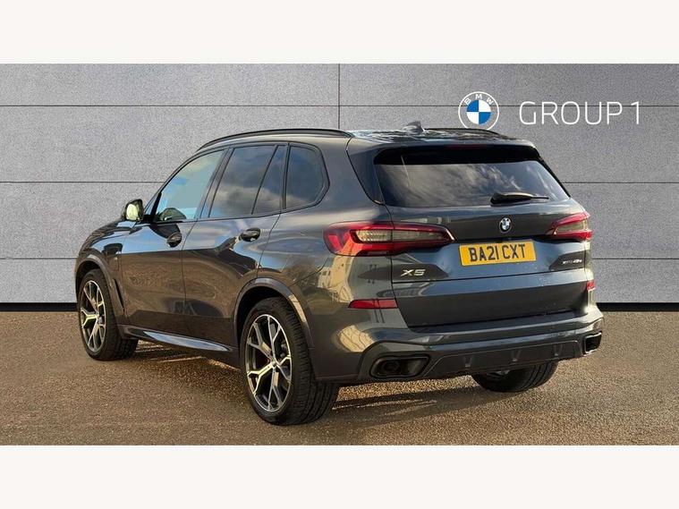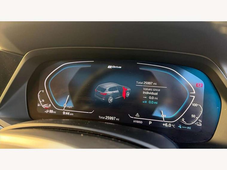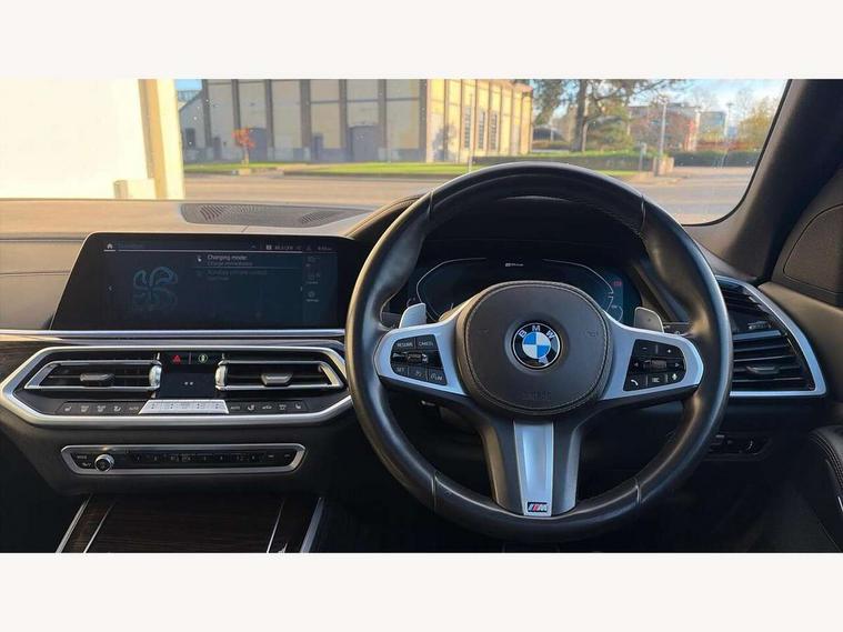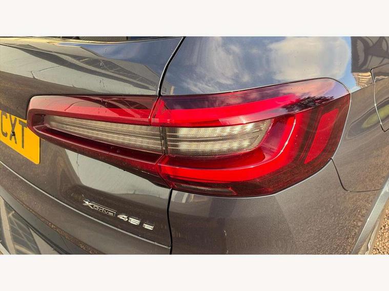 20GB hard disc drive (HDD) memory, Active guard plus, Attentiveness assist, Automatic tailgate with top hinged section open and manual bottom hinged section, BMW ConnectedDrive online services, BMW digital live cockpit professional - 12.3" digital instrument panel and 12.3" CID, with touch/voice command, BMW legal emergency call, BMW Teleservices, Brake force display, Brake pad wear indicator warning light, Cruise control with brake assist, eDrive button to select between AUTO eDrive, MAX eDrive and SAVE Battery settings, Front/rear park distance control, Galvanised plastic keyfob, Infinity symbol with line graphic on reset of average consumption, Lights on warning, Oil sensor for level and grade, On board computer inc. average speed, fuel consumption, liquid crystal Info display, journey computer, outside temperature display, personal profile, Service interval indicator, Speed limit info display, Speed limiting function, 5 metre AC Fast charge cable, Adaptive 2-axle air suspension, Double VANOS, Double wishbone front axle, Drive performance control with ECO PRO comfort + sport mode, eDrive exterior sound, Eight speed steptronic sport automatic transmission and gearshift paddles on the steering wheel, High precision injection, Petrol Particulate Filter, Safety battery terminal clamp, Standard Charging cable (Mode 2) for home socket, Twin scroll turbocharger with Valvetronic, DAB Tuner enables digital radio reception, Favourite buttons, USB connection, USB type A 1.5A in cupholder, USB Type C 3A in centre armrest, Active Air Stream kidney grille with high-gloss chrome, Adaptive air flap control bar in high-gloss black, Automatically dimming rear view mirror, BMW Individual high gloss black shadow line roof rails, Body colour bumpers, Body colour door handles, Dynamic brake lights with LED technology, Exhaust tailpipes - single, left and right with Chrome finisher, Follow me home headlight function, Front and rear electric windows with open and close fingertip control, anti trap facility and comfort closing, Heated windscreen washer jets, High beam assistant, High gloss black outer and central air intakes on front bumper with pearlescent chrome finish, High gloss black Side elements, LED daytime running lights, LED rear lights, Left charging flap on the front side, M aerodynamic body styling, M designation on left and right front side panels, Pearlescent chrome front grille bars, Rain sensor with automatic headlight activation and windscreen wiper control, Satin aluminium side window graphic, Third brake light in rear spoiler, Variable intermittent rear wash/wipe, Welcome light carpet, X5 on left tailgate, xDrive designation on right tailgate, 12V - Power sockets with 2x centre console and 1x luggage compartment, 40:20:40 split folding rear seats, Ambient interior lighting with 6 pre-designed selectable lights including dynamic function, Centre and rear interior light, Child seat ISOFIX attachment with rear outer seats includes top tether, Compartment in front of cupholder, Electric front seat adjustment with driver and front passenger memory function, Electrical steering column with adjustable height and length with activation and control on the steering column, Foldable rear centre armrest with 2 cupholders and storage compartment, Front and rear cupholders x 2, Front and rear door pockets, Front and rear door sill inlays with illuminated BMW M designation, Front and rear side armrest integrated into door trim, Front footwell lights, Front reading lights, Light inside glove compartment, Lockable glove compartment, Luggage compartment floor panel with integral storage tray, Luggage compartment lighting, M leather steering wheel, M specific key, M specific pedals, M specific steering wheel, M specific velour floor mats, Make-up mirror lights, Multifunction controls for leather steering wheel, Multifunctional hooks, Rear head restraints, Seat back with flap pocket, Securing rings in luggage compartment, Storage bins on all doors, Storage tray and compartment with cover in centre console, Sunvisors with illuminated vanity mirrors, Toolkit located in luggage compartment, Connected Package Professional - X5 xDrive45e, Expanded exterior mirror pack - X5/X5 M, Non-smokers pack - X5, Acoustic protection for pedestrians, Airbags - driver/front passenger, rear and side, first and second row seats head airbags, front passenger seat airbag deactivation + knee airbag, Anti-lock braking system (ABS), Automatic Stability Control (ASC), Brake drying, Brake energy regeneration, Brake fade compensation, Braking pre-tensioning, Cornering brake control (CBC), Crash sensor activating central locking release, hazard warning lights, fuel cut off, interior lighting + activation of safety battery terminal clamp, Deformation zones - front and rear with door reinforcements and bumpers up to 2.5 mph, DSC - Dynamic Stability Control, Dynamic brake control, Dynamic Traction Control - DTC, Electromechanical parking brake with automatic drive away release and auto hold function, Electronic brake force distribution, Front and rear seatbelts with seatbelt stopper, seatbelt tensioner for front and outer rear seats and belt force limiter, Front head restraints with anti-whiplash, Height adjustable front seatbelts, Hill start assistant, Integrated brake system, M Sport braking system in blue high gloss + blue painted brake calipers with M designation, Mechanical child proof lock on rear doors, Passive protection for pedestrians, Seat occupancy detection for driver and passenger side, Side impact protection, Three 3 point inertia reel seatbelts, Two tone horn, Tyre pressure monitoring system, Ventilated front and rear disc brakes, Warning triangle and first aid kit, Closing system with central locking, Driver and front passenger door centre lock switch, Locking wheel bolts, Thatcham 1 alarm system with remote control and engine immobiliser, Start/stop toggle diamond shaped trim finisher in pearl chrome,
