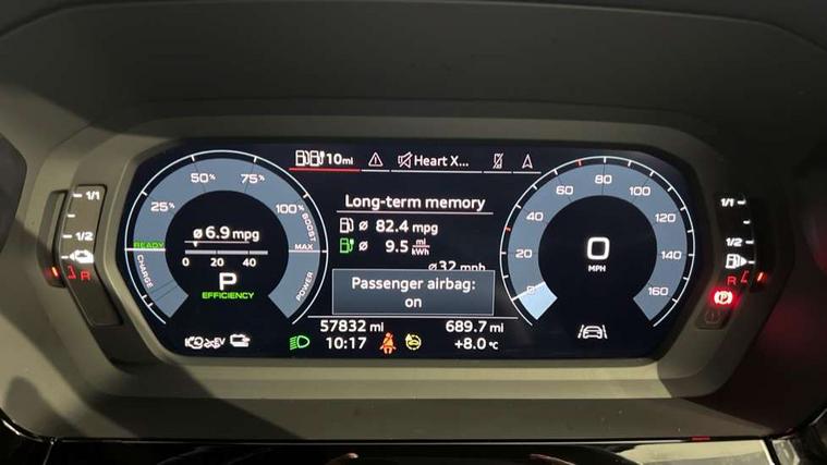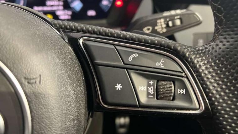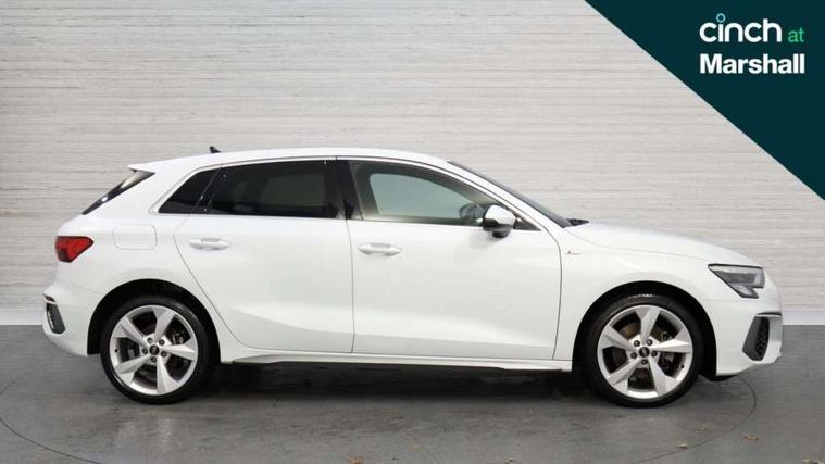 Audi drive select (Auto, Comfort, Dynamic, Efficiency and Individual), Audi smartphone interface, Audi Virtual Cockpit - 10.25" digital and colour instrument cluster, Automatic start/stop system with recuperation, Bluetooth interface, Collision avoidance assistant, e-Call (emergency call), Electromechanical power speed sensitive steering, Lane departure warning system, MMI Navigation Plus with high resolution 10.1" colour touch screen display, Service indicator, Trip computer, Voice control system with natural language interaction, 3 pin 10 amp domestic charging cable, 3.6 kw On-board charger, Standard suspension, Type 2 mode 3 32 amp charging cable, Type 2 socket for AC charging, 2xUSB-C connection with data and charging functions, 6 passive loudspeakers, DAB Digital radio, 3rd brake light, Acoustic glass windscreen, Aluminium window trim, Auto dimming frameless rear view mirror, Body colour exterior mirrors, Electrically adjustable/heated/folding/auto dimming door mirrors with integrated LED indications + kerb view function for passenger side, Front electric windows, Illuminated aluminium inserts front door sills with S logo, LED daytime running lights, LED headlights with LED rear lights and dynamic rear indicators, Light and rain sensors, Privacy glass - dark tinted rear window, rear door and side windows, Rear electric windows, Rear side air outlets in grained matt black, Rear side wing doors, Rear wiper, S line bumpers, S roof spoiler, 12V socket and storage compartment in front centre console, 3 seat bench in 2nd row, 3 spoke leather multifunction steering wheel with paddle shift, 40/20/40 split folding rear seat bench with cupholder, Black cloth headlining, Dual zone electronic climate control, Front and rear centre armrest in leather, Front and rear headrests, Front/rear floor mats, Height and reach adjustable steering wheel, Illuminated vanity mirror, Interior lighting - glove compartment light and right hand side, Luggage compartment floor covering, Manual boot compartment lid, Manually adjustable front seats, Seat side bolsters, Single front passenger seat, Stainless steel pedals and front footrest in black, Twin leather upholstery with front sports seats S embossed logo, Aluminium interior elements pack - A3 Sportback, LED interior lighting pack - A3 Sportback, S line styling pack - A3 Sportback, 3x3 point rear seat belts, Audi pre sense front, Driver and front passenger airbag with passenger airbag deactivation, Electronic Stabilisation Control (ESC) including ABS, ASR and EDL, First aid kit with warning triangle and 2 safety vests, Front side airbags with head airbags and interaction airbag, Pre-sense front with pedestrian and cyclist detection, Seatbelt monitoring, Tyre pressure loss indicator, Anti theft alarm, Anti-theft wheel bolts, Electronically operated child lock, Immobiliser, Remote control central locking, Accent surfaces in the dashboard and centre console in platinum grey silk effect paint finish, Dark spectrum aluminium inlays, Tool kit, Tyre repair kit,