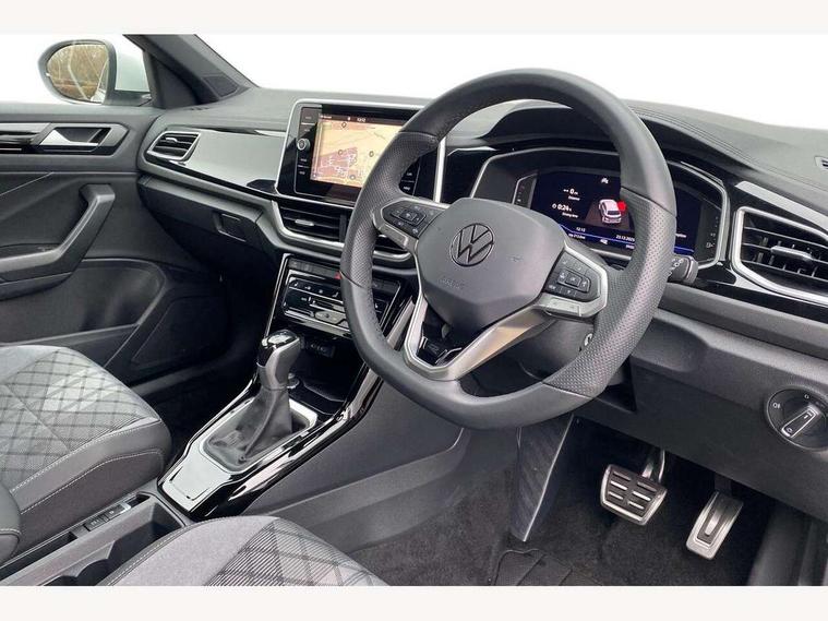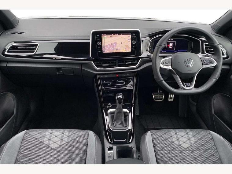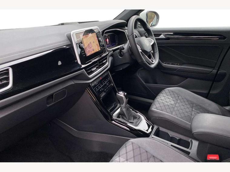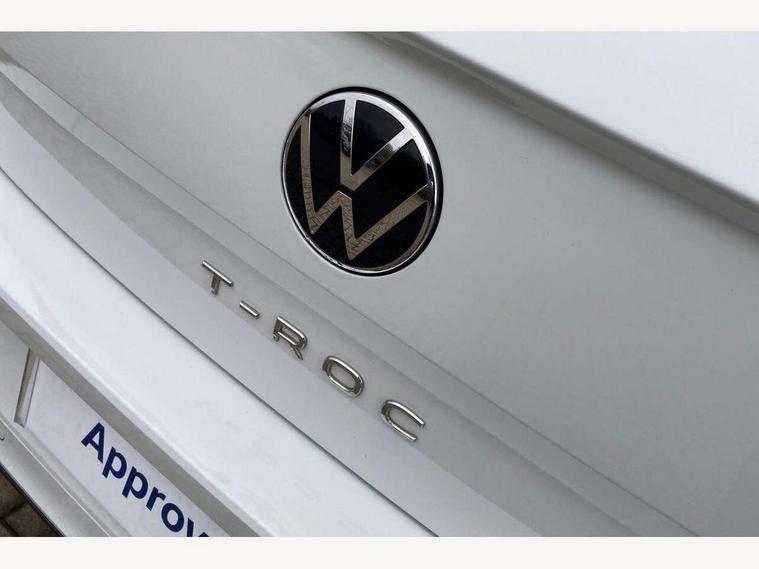 10.25" Digital cockpit pro, Advanced driver attention and drowsiness monitor, Emergency call service, Lane keeping system Lane Assist, Mobile phone interface, Modified key software - reduce switch off time for key status change to Long no motion, Online services, Park assist including front and rear parking sensors, Service interval indicator, Tailgate/trunk lid release from outside, Think blue trainer driver tips and journey analysis, Warning sound and light for front seatbelts unfastened, Wireless app connect, Battery regeneration during braking, Start/stop function with battery regeneration, DAB Digital radio, Diversity antenna for FM reception, Front and rear 6 speakers, Music playback - MP3, WMA and AAC files, Premium USB cable in choice of either Apple or Android smartphone compatibility, SD card slot, Simultaneous pairing of 2 compatible mobile devices, Title and cover art display, We Connect and We Connect Plus functionality, Auto dimming interior rear view mirror, Automatic hazard lights activation under emergency braking, Automatic headlight control with LED separate daytime running lights with coming/leaving home function, Body coloured exterior mirror housings and door handles, Electrically adjustable and heated door mirrors, Extended roof spoiler, Exterior mirrors aspherical on driver side, convex on front passenger side, External USB type C socket and charging sockets, Front windscreen wiper with intermittent wipe and 4 position delay, Heated rear window, LED 3rd brake light, LED rear combination lamps, LED rear number plate lights, Power windows with comfort operation and circuit breaker, Privacy glass for rear side windows and rear window, R-Line design body coloured bumpers, Rain sensor, Rear exhaust tailpipe, Rear fog light on one side and reversing lights on both sides, Rear side wing doors, Rear wash/wipe with intermittent wipe setting, Remote electrically foldable door mirrors, puddle lights and reverse activated passenger's door mirror, 12V power socket in centre console, 3 rear head restraints, 3 seat bench in 2nd row, 4 load lashing points in luggage compartment, Air care climatronic air conditoning system with active combination filter and 2-zone temperature control, Black roof lining, Chrome plated decorative trims, Chrome plated radiator grille inserts, air vent surrounds and light switch surrounds, Door and side trim panel with leatherette insert, Front + rear carpet mats, Front centre armrest, Front cupholders x 2, Front footwell illumination, Front reading light, Front scuff plates with R Line logo, Front seat back storage pockets, Glove compartment door with light, Instrument lighting, white adjustable panel illumination, Interior ambient lighting and surround lighting, Interior light delay, Isofix child seat preparation, Leather gearshift handle, Load-through provision with cup holder when folded down ('Unsplit rear seat bench, split folding backrest, with centre armrest), Luggage compartment lighting, Single front passenger seat, Stainless steel pedals, Storage compartment in left and right luggage area, Storage compartment in rear doors, Storage compartments in driver and front passenger doors, Sunvisors with illuminated vanity mirrors, Variable boot floor, height adjustable and removable, Driver assistance pack without proactive passenger protection - T-Roc, 3 point height adj front seatbelts + pretensioners, 3 point seatbelts in outer rear with ECE label, ABS, Child locks on rear doors, City emergency braking and pedestrian monitoring, Driver and front passenger airbag with front passenger airbag deactivation, Driver and front passenger safety-optimised head restraints, Drivers seatbelt reminder, Electronic parking brake, Electronic Stability Control (ESC) inc EDL (Electronic Differential Lock) and ASR (Traction Control), Front and rear passengers curtain airbag system including front side airbags, Hill start assist, Predictive pedestrian protection, Rear disc brakes, Two tone horn, Tyre pressure loss indicator, Volkswagen roadside assistance, Piano black decorative inserts in dashboard and front door trim panels, Trims for alloy wheels,