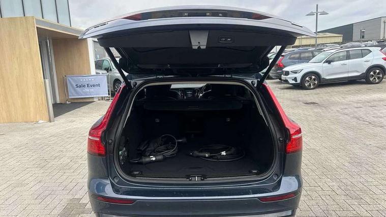 12.3" Progressive Driver Display, 360 degree surround view parking camera with side proximity sensors, 9" centre console touch screen, Adjustable steering wheel force, Apple CarPlay, Bluetooth handsfree system, Cruise control, Drive mode settings, Driver alert control with lane keeping aid, E-call, Emergency and breakdown call function, Front and rear park assist, Google automotive services - Enabled entertainment apps, navigation with google maps, voice recognition with google assistant, Handsfree tailgate opening/closing, Information centre, Oncoming Lane Mitigation, Service interval indicator, Speed limiter, Speed sensitive steering, Trip computer, Volvo cars services with app, Volvo on call app, 6m 3 phase 16amp Type 2 / mode 3 charge cable, 7m 10amp charge cable with 3 pin plug, Automatic transmission with start/stop and manual change functions, Dynamic chassis, Electric rear axle drive, Lithium-ion battery, On board charger - 6.4 kW 2 phase/3.7kW single phase, Recharging port located in nearside front wing, DAB Digital radio, Fresh air subwoofer, High performance sound, 2 x front and rear Type C USB, 10 speakers/220W output, Low speed exterior sound speaker, Steering wheel remote infotainment controls, Adaptive brake lights with high level LED brake lights, Auto dimming interior + exterior mirrors, Automatic headlight levelling system, Automatic LED Headlights + Active high beam incorporating daytime running lights, Body colour bumpers, Bootlid/tailgate illumination, Colour coordinated auto folding and heated power door mirrors, Front and rear power windows, Heated front windscreen, High gloss black door mirrors and window surround, High gloss black mesh front grille with high gloss black surround, Home safe and approach lighting, Integrated roof rails in high gloss black, Puddle lights, Rain sensor with automatic windscreen wiper activation, Rear side wing doors, Rear wiper, Roof antenna, Roof spoiler, Variable front intermittent wipers, Visible VIN plate, 12V socket in front tunnel console and luggage compartment, 2 zone electronic climate control with Clean zone air quality system + pollen filter, 60/40 versatile split folding 3 bench rear seats in 2nd row, A-pillar parking ticket holder, Advanced interior air cleaner PM2.5, B Pillar ventilation, Bright metal luggage compartment threshold, Centre console storage, Charcoal carpets and floor mats, Extended front seat cushions, Flexible load floor and grocery bag holder, Front and rear courtesy and front reading lights, Front cupholders, Front footwell illumination, Front head restraints, Front passenger seat electric height adjust, Front/rear door pockets and front cupholder illumination, Glovebox compartment with illumination, Heated front seats, Heated rear seats outer positions, Heated steering wheel, Height/reach adjustable steering column, Illuminated vanity mirrors + ticket holder, ISOFIX attachment on outer rear seats, Load cover, Load protection net, Luggage compartment illumination, Luggage compartment load hooks, Multi directional lumbar support, Power driver seat with memory + exterior mirrors memory, Power folding rear headrests, Rear armrest with cupholder, Rear footwell and front and rear side step illumination, Rear reading lights, Recharge aluminium tread plates, Single front passenger seat, Underfloor cargo storage, 5 x 3 point seatbelts, City safety with steering support with Pedestrian + cyclist + front collision warning with full auto brake and rear auto brake, Dual stage driver/passenger airbags, First aid kit, Front seats SIPS airbags, Hill start assist, IC (Inflatable Curtains) - Full Length, Passenger airbag cut-off switch, Power child locks on rear doors, Power parking brake with auto hold function, Road sign information display, Run off Road Mitigation, Run off Road Protection, Seatbelt reminder and pretensioners for all seats, SIPS (Side Impact Protection System), Slippery road and hazard light alert, Stability and Traction Control with Spin control, Engine Drag Control and Corner Traction Control, Tyre pressure monitoring system, Vehicle deceleration control with Anti-lock Brake System, Electronic Brake Distribution and Emergency Brake Assist, Warning triangle, WHIPS whiplash protection system - front, Anti-theft alarm including immobiliser/volume sensor + level sensor, Care key with user defined top speed, Key integrated remote control central locking + fuel flap with deadlocking system and auto open/close power windows, Keyless drive includes keyless entry and keyless start, Locking wheel nuts, Private locking luggage compartment, Tyre sealant kit and compressor,