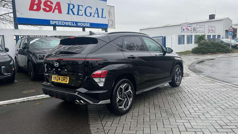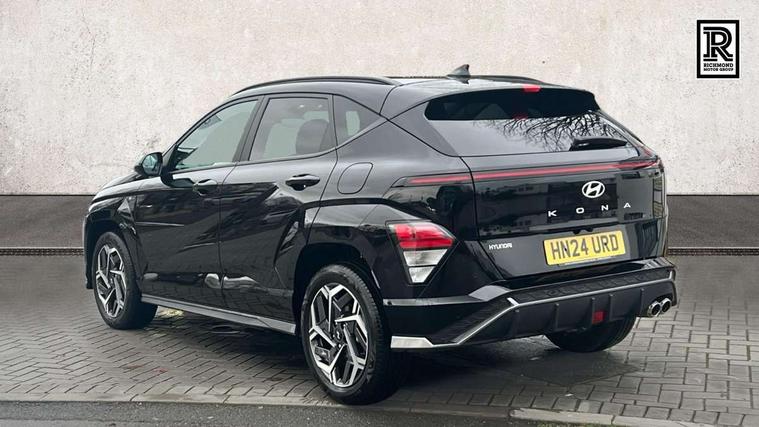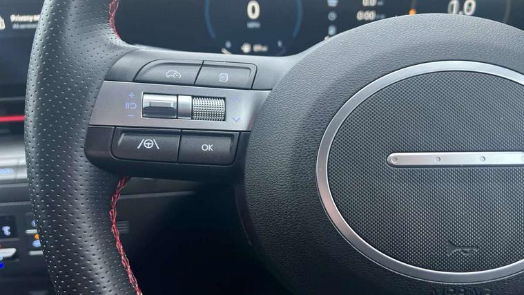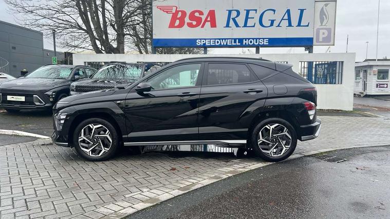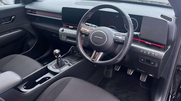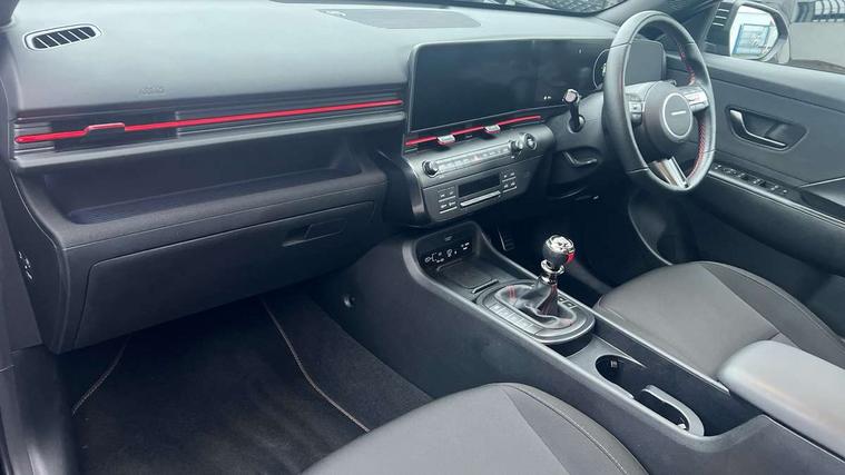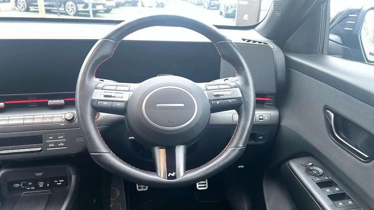 12.3" touchscreen centre console display satellite navigation with bluelink, live services and mapcare, Bluetooth connectivity with voice recognition, Cruise control, Digital clock, Driver status monitor (DSM), Driver supervision instrument cluster with 12.3" LCD display, eCall emergency call system, Feature on demand - Enabled, Forward collision avoidance assist (FCA 1.5) - Car, pededstrian, cycle and junction turning, Front parking sensor, Height adjustable power tailgate, Intelligent speed limit assist, Lane follow assist, Lane keep assist, Leading vehicle departure alert (LVDA), Parking system with rear camera and guidance system, PAS, Rear parking sensor, Roadside assistance, Windscreen washer fluid sensor and warning indicator, Wireless phone charging pad, Wireless Smartphone Integration includes Apple CarPlay and Android auto, 2 front USB C and 2 rear USB C charging points, DAB Digital radio, Speakers - Front, rear and tweeters, Steering wheel audio, phone and cruise controls, Auto dimming rear view mirror, Automatic headlights with dusk sensor, Automatic windscreen wipers with rain sensor, Body colour bumpers, Body colour exterior door handles, Body coloured wheel arch inserts, Door mirror LED indicator lights, Electric front windows with anti-trap mechanism and one touch control, Electric rear windows, Electrically adjustable and heated door mirrors, Full LED MFR headlights, Gloss black door mirrors, LED daytime running lights, LED upper and lower rear lights, Power folding door mirrors, Privacy glass - Rear windows and tailgate, Rear roof spoiler with integrated LED brake light, Rear side wing doors, Rear wiper, Roof rails, Solar glass with front door glass and windscreen, Tinted glass in front and rear doors, Windscreen auto defog function, 12V power outlet in front console, 2 zone climate control, 3 seat bench in 2nd row, 40/20/40 split folding rear seat, Adjustable head restraints, Aluminium pedals, Ambient lighting, Driver and passenger front seat pockets, Driver's seat lumbar support, Driver/passenger manual seat height adjustment, Driver/passenger sunvisors and illuminated vanity mirrors, Floor mats, Heated front seats, Heated rear seats, Heated steering wheel, Height/reach adjustable steering column, Isofix rear child seat fastenings, Leather wrapped steering wheel and gear knob, LED centre interior light, LED front interior light, Luggage compartment LED lighting, Luggage shelf, Metal paint effect interior door handles, N Line cloth upholstery, Parcel shelf, Rear centre armrest, Rear centre console with air vents, Single front passenger seat, Vertical adjustment rear head restraints, N Line exterior design pack - Kona, Trailer wiring package - Kona, Airbag - front, front side, curtain and centre front airbag, Anti-lock brake system (ABS), Childproof rear door locks, Downhill brake control, EBD + Brake Assist, Electric parking brake, Electronic stability control, Fasten seatbelt reminder, Fixed 3 point for second row centre passenger seatbelt, Front seatbelt pretensioners, Height adjustable front seatbelts, Hill start assist control (HAC), Passenger airbag deactivate switch, Rear seat alert, Traction control, Tyre pressure monitoring system, Alarm/immobiliser, Deadlocks, Folding key, Locking wheel nuts, Remote central locking, Smart key with keyless entry and engine start/stop button, Five year annual vehicle health checks, Temporary mobility kit (TMK),