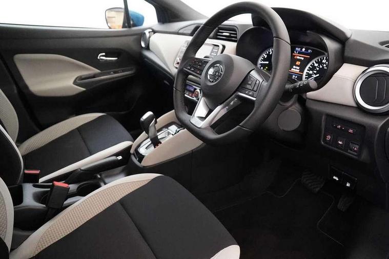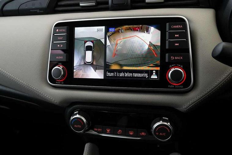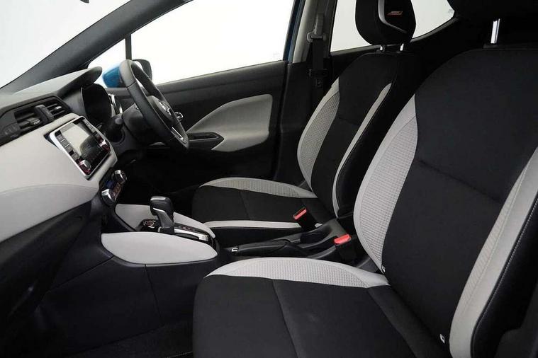 360 degree around view monitor, Adjustable speed limiter, Bluetooth system, Cruise control, Lane departure prevention, Lane departure warning system, Nissan Connect touchscreen navigation and Entertainment system, Outside temperature gauge, Power assist steering, Rear parking sensors, Rear view camera, Smartphone integration with Apple CarPlay and Android auto, Stop/start system, Traffic sign recognition, Trip computer, Audio system with MP3, BOSE sound system with 6 speakers, DAB Digital radio, USB/iPod connection, 4 pocket halogen headlights with signature finisher, Antenna, Auto dimming rear view mirror, Automatic activation of hazard warning lights, Automatic headlights, Body colour front door handles, Body coloured bumpers, Body coloured door mirrors, Concealed rear door handles, Electric folding door mirrors, Front and rear electric windows, Front fog lights, Heated door mirrors, High beam assist, High mounted stop lamp, Jacknife key type x1, LED daytime running lights, LED Headlights, Rain sensor windscreen wipers, Rear privacy glass, Rear roof spoiler, Rear wiper with reverse link, 12V power point front, 2 height adjustable rear headrests, 3 cupholders, 60/40 split folding rear seat, Automatic air conditioning, Boot compartment cover, Boot light, Chrome interior door handles, Driver's seat manual height adjust, Driver/passenger sunvisors and vanity mirrors, Front and rear door pockets with bottle holders, Front console storage box, Gear shift indicator, Height adjustable front headrests with satin sliver decoration, Illuminated electric window switch, Isofix front passenger and rear seat preparation, Leather wrapped gear shift knob, Leather wrapped parking break, Leather wrapped steering wheel, LED ambient lighting, Map reading lamp, Parcel shelf, Passenger seat back pocket, Reclining front seats, Synthetic leather front door pads, Synthetic leather instrumental panel inserts, ABS+EBD+Brake assist, Crash sensor, Driver/Front Passenger airbags, Front and rear curtain airbags, Front side airbags, Height adjustable front seatbelts with pre-tensioners and load limiters, Hill start assist, Intelligent emergency braking with pedestrian recognition, Passenger airbag deactivation system, Rear seatbelts with pre-tensioners and load limiters, Seatbelt warning, Three 3 point rear seatbelts, Tyre pressure monitoring system, Warning triangle and first aid kit, Anti-theft immobiliser, Intelligent key with push button ignition, Remote central locking, 17" Diamond cut alloy wheels, Tyre repair kit,