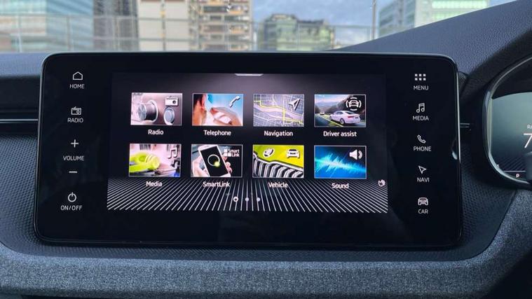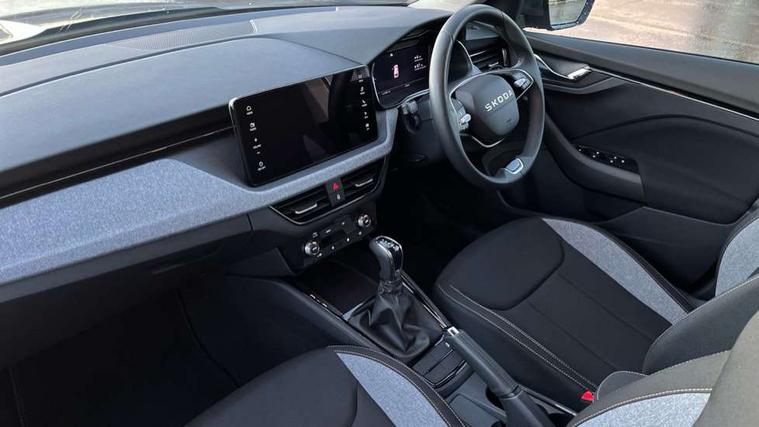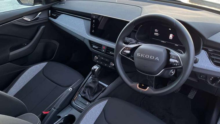 Advanced driver attention and drowsiness monitor, Bluetooth system, E-call, Front assist system, PAS, Rear parking sensors, Rear view camera, Service indicator, Speed limiter, Traffic sign recognition, Virtual cockpit with 10.25" display, Voice control system, Wireless smartlink, 4 USB C ports, 8 Speakers, 8.25" Skoda infotainment display, 9.2" Skoda navigation display, DAB Digital radio, Auto dimming rear view mirror, Automatic headlight control with coming home and leaving home feature, Black roof rails, Body colour bumpers, Body colour door mirrors and handles, Chrome grille surround, Front and rear electric windows, Full LED headlights, Heated rear window, LED brake lights, LED daytime running lights, LED front turning lights, LED high beam, LED low beam, LED third brake light, Rear LED fog light, Rear side wing doors, Rear wiper, Ticket holder inside windscreen, 12V socket in luggage compartment, 3 seat bench in 2nd row, Black hotstamping, Cargo elements, Chrome inner door handles, Driver and passenger sun visors with vanity mirror, Dual zone climate control, Front and rear roof lights, Front centre armrest, Front head restraints, Glove compartment with illumination, Height adjustable driver seat, Height adjustable front passenger seat, Ice scraper, Inner circulation control with pollen filter, ISOFIX on front passenger seat, Isofix preparation for back seats, Krepp recycled decor inserts, Leather gearknob and handbrake lever, Loft cloth upholstery, Manual lumbar support for front seats, Net package and top tether hooks in boot space, Net under rear shelf, Overhead glasses storage compartment, Pocket on the back of both front seats include mobile phone pockets, Rake/reach adjustable steering wheel, Reading lights, Satin black door inserts, Single front passenger seat, Textile floor mats, Third rear headrest, Top tether for front passenger seat, Umbrella in driver's door, 3x3 point rear seatbelts, Airbags - driver and front passenger, Disc brakes, ESP, Extended and predictive pedestrian/cyclist protection, Front passenger airbag deactivation switch, Front side airbags with curtain airbags, Hill hold control, Manual leather parking brake, Manual rear child locks, One tone horn, Seatbelt reminder for driver an co-driver, Traction control, Tyre pressure monitor, Anti-theft alarm system with interior monitoring, backup horn, towing protection and remote central locking with SAFE system, Anti-theft wheel bolts, Electronic engine immobilizer,