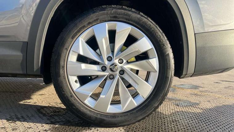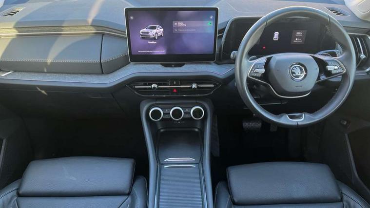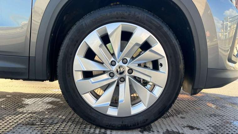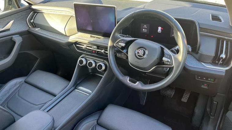 13" satellite navigation touchscreen display, Blind spot detection with door exit warning, Bluetooth system, ChatGPT functionality, Drive mode selector, Driver alert with fatigue sensor, Driver drowsiness alert system, Dry display cleaner, e call+, Front cross traffic assist, Lane assist, PAS, Rear traffic assist, Tailgate unlocking from outside, Traffic sign recognition, USB C Port x 2 in front centre console, Virtual Cockpit - 10.25" digital display, Voice control system, Wireless charging for two smartphones (15W) with cooling function, Wireless SmartLink for Apple CarPlay and Android Auto, Stop/start function, 2x USB-C in the rear, DAB Digital radio, Aero front windscreen wipers with intermittent function, Auto dimming rear view mirror, AWL (all weather lighting) and all weather light with cornering function, Black wheel arch surrounds, Body colour bumpers, Body colour door mirrors and handles, Cornering light and poor weather light, Electric folding /adjustable/separted heated/folding door mirrors, auto dimming with boarding sports and memory function, Electric front and rear windows, Exterior black decorative trims, Heat insulating glass in windshield, Heated rear window, Ice scraper in fuel tank cap, Invisible tailpipe, LED daytime running lights, LED rear fog light, LED third brake light in rear spoiler, Light assistant with automatic headlight control and coming home feature, Logo projection in door mirrors, Privacy glass, Rear side wing doors, Rear spoiler, Rear window wiper, Red decorative strip between rear LED lights, Safety reflectors on front and rear doors, Window control switches with black trim, Windscreen wipers with rain sensor, Without engine designation, 1.5l bottle holder points in all door, 12V socket in boot, 1x centre rear reading light, 2 seat bench in 3rd row, 3 configurable smart dials with 32mm coloured display, 3 seat bench in 2nd row, 4 foldable roof handles with rear coat hooks, Ambient interior lighting - Dashboard, front-door stowage compartments, front and rear door panels and footwell lighting, Automatic gear selector on steering wheel, Chrome interior door handles, Driver/front passenger reading lights, Fabric headlining, Fixed bench 40:60:40 split folding backrests, Front and rear floor mats, Front centre armrest with jumbo box storage compartment, cup holder and 12V socket, Front courtesy lights, Height adjustable front headrests, Isofix child seat fittings in outer middle row rear seats and front passenger with top tether, Manually adjustable steering column, Pollen filter, Rear centre armrest with cupholders, Rear seat boot backrest release, Retractable luggage compartment cover, Single front passenger seat, Sliding trunk cover, Small Bags on the inner sides of the front backrests, Storage pocket including mobile phone pockets on the backs of the front seats, Sunvisors with illuminated vanity mirrors, Three rear height adjustable headrests, Ticket holder on A Pillar, Tri zone climate control, Umbrella in door panel x1 made from sustainable materials, Upper and lower glovebox with card holder and coin compartment, USB C port by rear view mirror for charging only (15W), Exterior styling pack - Kodiaq, Auto door release and activation of warning lights in the event of an accident, Driver and front passenger airbag with knee airbag and front passenger airbag deactivation, Electric child locks, Electronic parking brake, ESC (incl. ABS+EMD+MSR+ASR+EDL+HBA+DSR+RBS+ESBS+MCB+TSA+XDS), Front assist with braking reaction to vehicles, pedestrians and cyclists, Front disc brakes, Fuel cut off safety device, Height adjustable front 3 point seatbelts + pretensioners, Hill hold control, Junction assist with automatic emergency braking, Rear disc brakes, Safety vest holder in door, Seat belt reminder for all seats, Three point rear seat belts, Two tone horn, Tyre pressure monitor, Anti-theft wheel bolts, Immobiliser, Remote central locking with 2 keys, Breakdown kit,