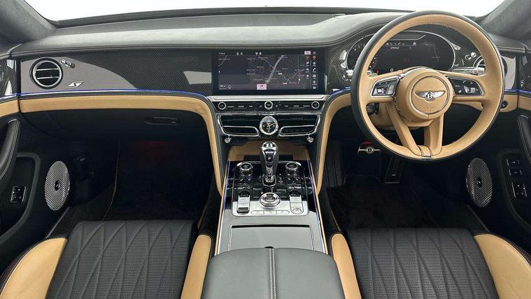 4G LTE telephone module, Apple car play, Blind spot assist, Bluetooth telephone connectivity, Car computer, City assist, Continuous damping control, Emergency services call system, Engine start/stop button, Front/rear park distance control, Hands free boot opening, Inductive phone charger, Infotainment system/satellite navigation, Power latching to all doors for easy entry, Rear cross traffic alert, Speed sensitive power steering, Telephone voice dialling, Top view camera, Traffic sign recognition, Anti roll bar front and rear, Battery charger, Wi-Fi hot spot, 3rd brake light, Acoustic glass, Adaptive brake lights, Auto dimming door mirrors, Automatic headlamps, Body coloured bumpers, Elec/heat/adj/fold door mirror+memory, Electric front windows, Front fog lights, Full LED Matrix headlamps with high-beam assist, Hidden antennae, LED daytime running lights, Rain sensor windscreen wipers, Rear boot, Rear diffuser, Rear electric windows, Rear side wing doors, S fascia badge, S fender badge, 14 way Elec adj front seats/memory/lumbar control, 5 seats, Air Ioniser, Door lights, Easy entry/electrically adj steering column+memory, Electric rear window sunblinds, Fluted seat S design, Footwell illumination, Front head restraints, Full hide trim upholstery, Illuminated centre console storage, Isofix attachments on outer rear seats, Multi-zone automatic climate control - two zone, Rear centre armrest with 2 cupholders + storage, Rear headrests, Blackline Specification with matrix grille - Flying Spur, City specification pack - Flying Spur, Comfort specification pack - Flying spur, 3 point inertia reel seatbelts on outer rear seats, ABS/EBD, Child safety lock, Driver/front passenger airbag, Drivers knee airbag, Electronic park brake with move-off assist, Electronic tyre pressure monitoring, ESP, Exit warning, Front and rear curtain airbags, Front and rear thorax airbag system, Front passenger airbag deactivation, Hydraulic Brake Assist (HBA), Motor Slip Regulation (MSR) - Engine Drag Torque Control, Pedestrian warning, Traction control, Anti-theft wheel bolts, Bentley GPS advanced tracking system, Immobiliser, Keyless entry, Keyless ignition, Preparation for vehicle tracking, Remote central locking, Ultrasonic alarm, Tyre inflation kit,