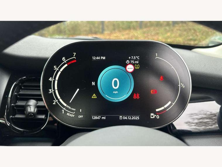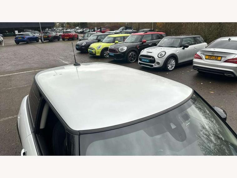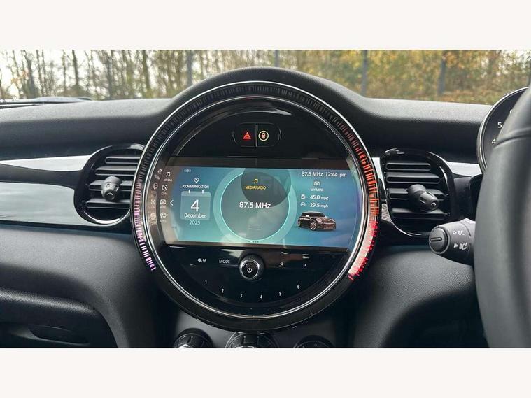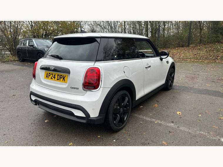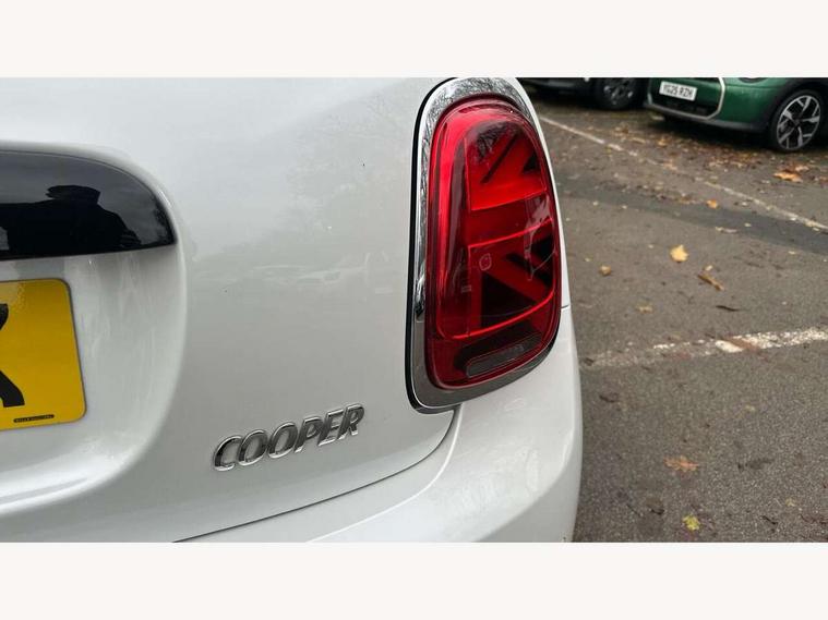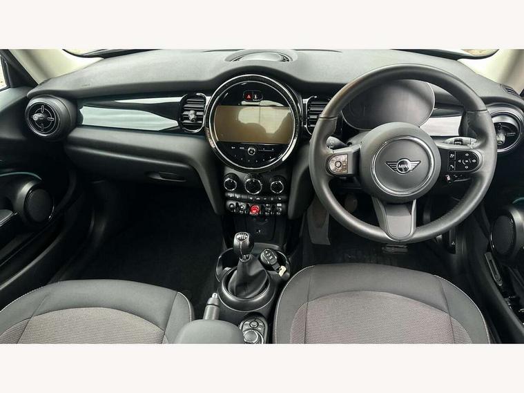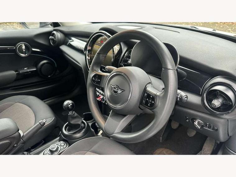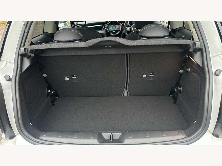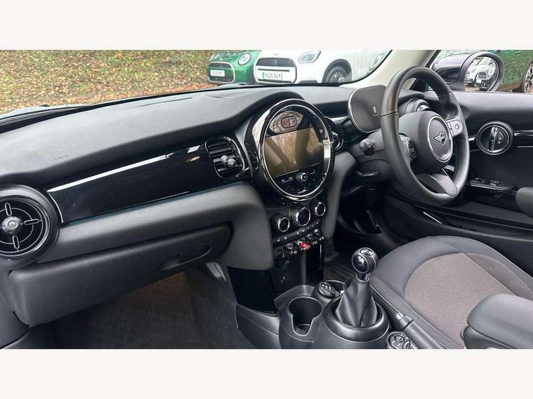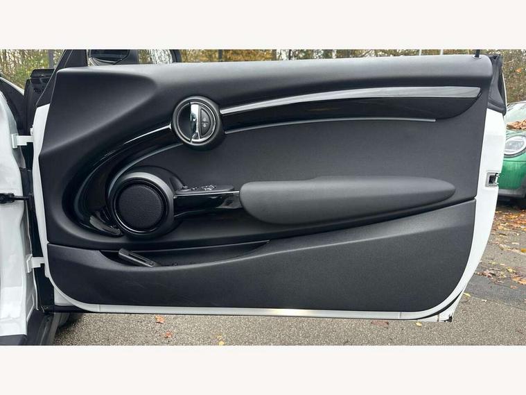 Apple CarPlay, Automatic start/stop function with brake energy recuperation, Compatible mobile phone bluetooth with audio streaming, Digital dashboard display, Electro-mechanical speed dependant steering assistance, Flexible car sharing preparation, Instrument cluster, Mini E-call, MINI TeleServices, On board computer, Service interval indicator, Double Vanos system, Fully variable valve control, High precision injection, Performance Control, 4 speakers in front door trims and underneath front seats, 8.8" touchscreen with LED ring, FM tuner and DAB digital radio, 3rd brake light, Automatic headlight activation switch, Body colour fuel filler cap, Chrome border high gloss black slats radiator grille, Dynamic brake lights, Electric front windows, Exhaust tailpipe on left with chrome finisher, Heated rear window, Heated windscreen washer jets, LED headlight with closed ring and daytime driving lights, Metal door sill strips with MINI imprint, Model logo Cooper on right of tailgate, Rain sensor window wipers, Rear fog lights, Rear LED lights with union jack design, Rear window wiper, Side scuttle panel with integrated indicator, Sun/heat protection glass, White indicator lenses, 12V Accessory socket in centre console, 2 seat bench in 2nd row, 4 lashing eyes in luggage compartment, 60/40 split folding rear seat, Ambient lighting, Chrome interior highlights, Cupholders, Front and rear head restraints, Front and rear isofix with front passenger airbag deactivation, Front floor mats in velour, Glove compartment, Height and length steering column adjustment, Interior lighting with 12 different colours across the dashboard, underneath door bezel with illuminated laser-engraved design on central display, Leatherette gearshift lever and handbrake gaiters, LED reading lights, vanity mirror lights, front foot well light and spotlight on front seats, Mechanical seat adjustment - forward/back & backrest for front seats and driver seat height adjust, Multifunction steering wheel, Passenger seat height adjuster, Satellite grey headlining including grab handles and clothes hooks, Single front passenger seat, Sport leather steering wheel with speed limiter and audio/communication controls, Storage compartments in doors, Sunvisors with vanity mirrors, Driving assistant pack - Mini Hatchback, Premium pack - Hatchback, 3 point seatbelts on all four seats, 6 Airbags - front, side, head and seat belt tensioners, Anti-lock braking system (ABS), DSC - Dynamic Stability Control, Front and rear disc brakes, Single tone fanfare horn, Tyre pressure monitoring system, Alarm system with tilt sensor, monitoring doors, bonnet interior and tailgate, Electronic vehicle immobiliser, Start/stop toggle with keyless go, Piano black interior trim, Tool kit, Tyre repair kit,