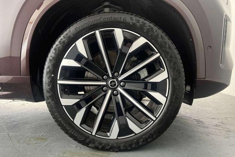 11.2" centre console touch screen, 12.3" Progressive Driver Display, 360 degree surround view parking camera with side proximity sensors, Adjustable steering wheel force, Apple carplay (wired), Bluetooth handsfree system, Driver alert control with lane keeping aid, Driver assistance (pilot assist and adaptive cruise control), Driver awareness - Blind spot information system with steer assist, cross traffic alert with autobrake and rear collision warning and mitigation, Driver monitoring system, Emergency call service, Front and rear park assist, Google Automotive Services - Navigation with Voice recoginition and google assistant, Handsfree power tailgate opening and closing, Intelligent speed assistance, Oncoming Lane Mitigation, PAS, Power operated tailgate, Service interval indicator, Speed sensitive steering, Trip computer, Volvo on call, Wireless/Inductive Mobile Phone Charging, 8 speed automatic transmission with start/stop + manual change functions, Active four C chassis - four corner adaptive dampers with electronic air suspension, DAB Radio (Digital Audio Broadcasting), Premium Sound by Harman Kardon, dirac unison, dolby pro logic II surround sound, 13 speakers/600W output and fresh air subwoofer, Steering wheel remote infotainment controls, Adaptive brake lights with high level LED brake lights, Auto dimming interior + exterior mirrors, Auto folding and heated power door mirrors, Automatic headlight levelling system, Automatic matrix LED headlights with Adaptive shadow technology and Active high beam, incorporating Day running lights, Body colour bumpers, Front and rear power windows, Headlight cleaning system, Heated front windscreen, High gloss black door mirrors and window surround, High gloss black front and rear bumper deco, High gloss black front grille and deco, Home safe and approach lighting, Integrated roof rails in high gloss black, Power glass tilt and slide panoramic sunroof with sun curtain, Puddle lights, Rain sensor with automatic windscreen wiper activation, Rear side wing doors, Rear wash/wipe with intermittent wipe setting, Roof antenna, Roof spoiler, Visible VIN plate, 12V socket in luggage compartment, 2nd Row centre armrest with and cupholders, 3 Spoke tailored sport steering wheel with chrome trim, 4 zone electronic climate control with Clean zone air quality system + pollen filter, A-pillar parking ticket holder, Air conditioning for 3rd row of seats, Air purifier PM2.5, Ambient door and instrument panel lighting, B Pillar ventilation, Bright metal luggage scuff plate, Centre console cupholders and storage, Floor mats, Front and rear courtesy lights, Front and rear door pocket illumination, Front footwell and side step illumination, Front headrests, Front reading lights, Front seat cushion extensions, Front tunnel storage illumination, Glovebox compartment light, Heated front seats, Heated rear seats, Heated steering wheel, Height/reach adjustable steering column, Illuminated front and rear aluminium tread plates, Illuminated luggage compartment, Illuminated tailgate, Illuminated vanity mirrors + ticket holder, Inner door release handle illumination, Isofix outer rear child seat preparation in 2nd row, Load cover, Load protection net, Lockable glovebox compartment, Luggage compartment divider with grocery bag holder, Outboard armrest with cupholder and storage for third row passengers, Power driver seat with multi directional lumbar support and memory for seat and exterior mirrors, Power folding 2nd row headrests, Power passenger seat with multi directional lumbar support and memory, Rear footwell and side step illumination, Rear headrests, Rear reading lights, Second row integrated child seat for centre seat, Single front passenger seat, Textile headlining, Three 2nd row individual folding passenger seats with fore/aft adjustment, Two 3rd row individual folding passenger seats, Underfloor luggage compartment storage, 7 three point seatbelts, City safety with steering support includes pedestrian, cyclist detection, front collision warning with full auto brake and rear auto brake, Driver and passenger airbags, Drivers knee airbag, First aid kit, Front seats SIPS airbags, Hill descent control - off drive mode, Hill start assist, IC (Inflatable Curtains) - Full Length, Passenger airbag cut-off switch, Power child locks on rear doors, Power parking brake with auto hold function, Road sign information display, Run off Road Protection, Seatbelt reminder and pretensioners for all seats, SIPS (Side Impact Protection System), Slippery road and hazard light alert, Stability and Traction Control with Spin control, Engine Drag Control and Corner Traction Control, Tyre pressure monitoring system, Vehicle deceleration control with Anti-lock Brake System, Electronic Brake Distribution and Emergency Brake Assist, Warning triangle, WHIPS whiplash protection system - front, 2x Key integrated remote control central locking + deadlocking system and auto open/close windows, Anti-theft alarm including immobiliser/volume sensor + level sensor, Keyless drive includes keyless entry and keyless start, Locking wheel nuts, Tailored instrument panel and door tops, Tempa spare wheel and jack,
