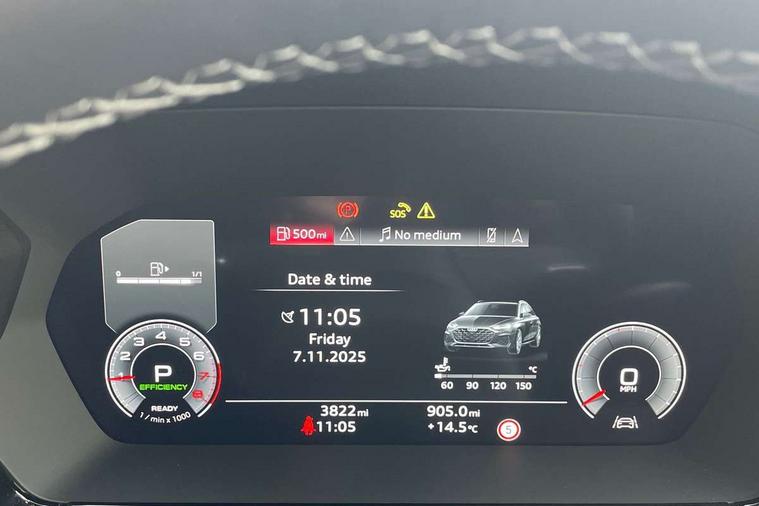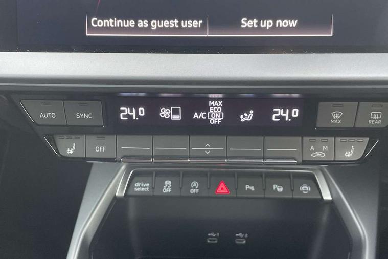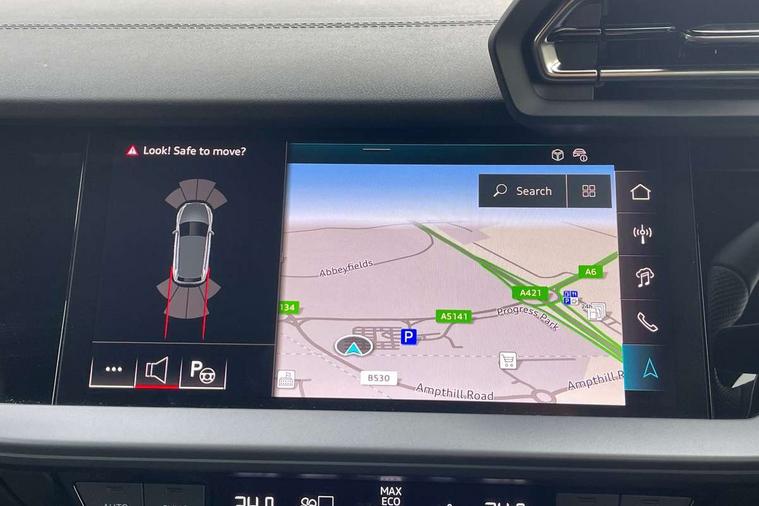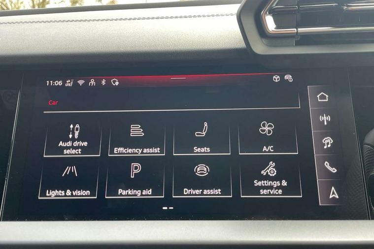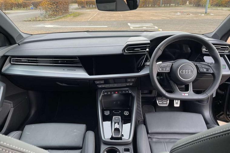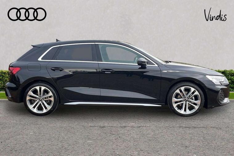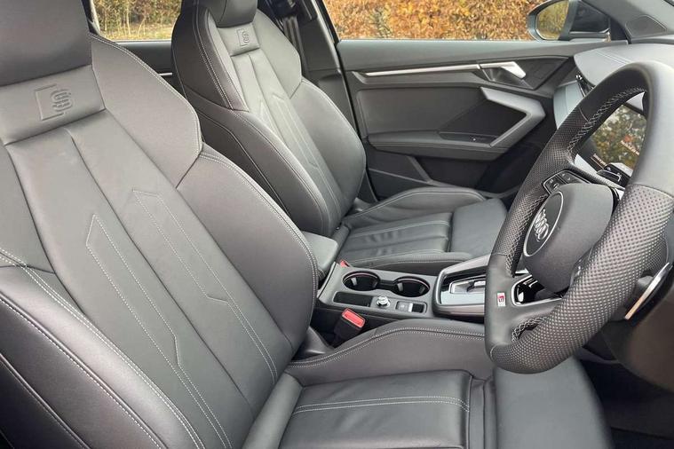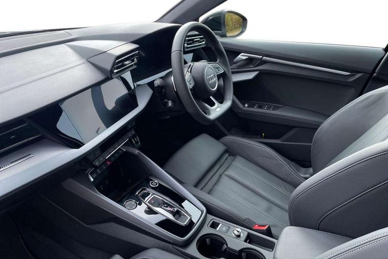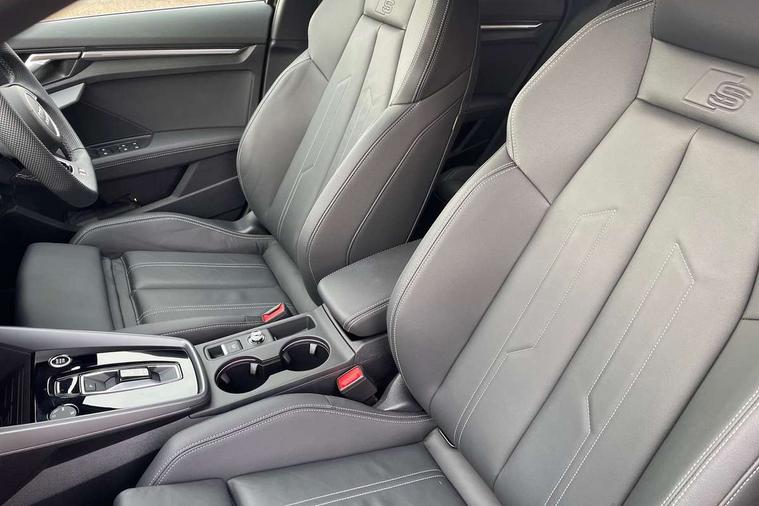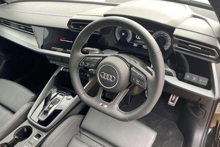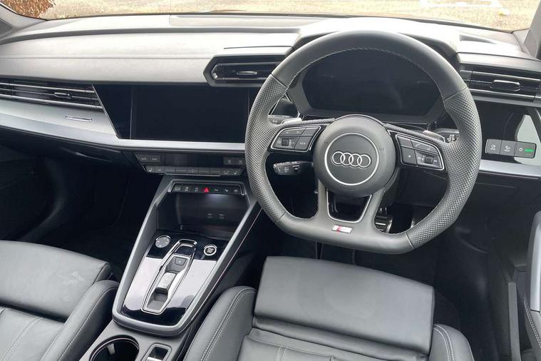 Adjustable speed limiter, Audi drive select, Audi smartphone interface with app store includes wireless Apple carplay, Android auto and Amazon alexa integration, Audi virtual cockpit plus - 12.3" full HD resolution dynamic digital instrument cluster, Automatic start/stop system with recuperation, Bluetooth interface, Camera based traffic sign recognition, Collision avoidance assistant, Cruise control, Distraction and Fatigue warning, e-Call (emergency call), Electromechanical power speed sensitive steering, Emergency assist, Lane departure warning system, MMI Navigation Plus with high resolution 10.1" colour touch screen display, Park Assist with parking system Plus, Service indicator, Tailgate, Trip computer, Voice control system with natural language interaction, Sports suspension, Audi Phonebox light with wireless charging, Audi sound system - 10 loudspeakers including centre loudspeaker and subwoofer, DAB Digital radio, USB ports with charging function in the rear, Acoustic glass windscreen, All weather light, Aluminium window trim, Auto dimming frameless rear view mirror, Automatic dynamic range control, Body colour exterior mirrors, Chrome exhaust tailpipes, Dipped beam, main beam, position light and turning light, Electrically adjustable/heated/folding/auto dimming door mirrors with integrated LED indications + kerb view function for passenger side, Exterior model badging, Front and rear side air inlets in grained matt black with dark liquid chrome frame, Front electric windows, Front radiator grill in high gloss dark chrome, Heat insulating glass windscreen, Illuminated door sills with aluminium inserts at the front with S logo, Intersection light, LED 3rd brake light, LED brake lights, LED daytime running x3, LED headlights with LED rear lights and dynamic rear indicators, LED rear number plate lights, LED reverse light, LED tail lights, Light and rain sensors, Manoeuvring light, Motorway light, Privacy glass - dark tinted rear window, rear door and side windows, Rear diffuser and grill in grained matt black with inlay in dark liquid chrome, Rear electric windows, Rear side wing doors, Rear wiper, S line bumpers, S roof spoiler, Side S line emblems on front wings, Side sill trim in dark liquid chrome, Static Cornering lights, 12V socket and storage compartment in front centre console, 3 seat bench in 2nd row, 3 spoke flat bottomed leather multifunction sport steering wheel with gear shift paddles, 3-zone deluxe automatic air conditioning, 4 way electrically adjustable lumbar support for driver and front passenger, 40/20/40 split folding rear seat bench, Black cloth headlining, Black front and rear floor mats, Front and rear centre armrest in artificial leather with contrasting stitching on armrests and instrument panel, Front and rear headrests, Heated front seats, Height and reach adjustable steering wheel, Manual boot compartment lid, Manually adjustable front seats, Rear centre armrest with cupholder, S badging on the steering wheel, Seat side bolsters, Single front passenger seat, Stainless steel pedals and front footrest in black, Twin leather upholstery with front sports seats S embossed logo, Aluminium interior elements pack - A3, Multi-coloured LED interior lighting package with Multi-coloured contour lighting of instrument panel - A3, 3x3 point rear seat belts, Driver and front passenger airbag with passenger airbag deactivation, Electronic Stabilisation Control (ESC) including ABS, ASR and EDL, First aid kit with warning triangle and 2 safety vests, Front side airbags with head airbags and interaction airbag, Hill hold assist, Pre-sense front with pedestrian and cyclist detection, Seatbelt monitoring, Tyre pressure loss indicator, Anti theft alarm, Anti-theft wheel bolts, Electronically operated child locks, Immobiliser, Remote central locking with safelock, Black dashboard, Inlay in dark aluminium spectrum,