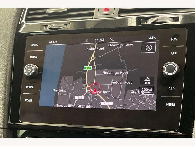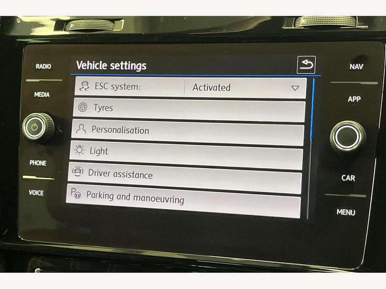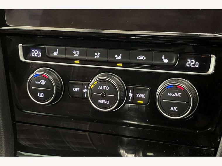 'Lights On' Reminder warning buzzer, 8" touch screen, Adaptive Cruise Control with pedestrian detection and speed limiter, Bluetooth hands free telephone connection, Brake pad wear indicator warning light, Drive mode selector, Driver alert system, Driver profile selection, Exterior temperature gauge, Instrument cluster in white, Multifunction computer, Progressive power assisted steering, Rev counter, Trip and service interval display, Ultrasonic front and rear optical and audible parking sensors, Warning buzzer and light for front seatbelts unfastened, Anti-tramp function, Diesel particulate filter, Lowered sports suspension, XDS plus electronic differential lock, CD/MP3/WMA, USB and SD card reader, aux-in, Composition media system, DAB Digital radio, Auto dimming rear view mirror, Automatic coming/leaving home lighting function, Automatic headlights, Black rear diffuser, Body colour door handles, Body colour door mirrors, Body colour rear roof spoiler, Body colour sports bumpers, Electric front windows, Electric rear windows, Electrically adjustable and heated door mirrors, Front intermittent wipe with 4 position delay, Heat insulated tinted glass 65% light absorbing from B pillar back, Heated rear windscreen, Honeycomb radiator grille - black, LED daytime running lights, LED front fog lights, LED rear lights, Rain sensor, Rear windscreen washer and wiper with interval delay, Silver roof rails, Twin exhaust tailpipe, 12V socket in luggage compartment, 3 rear headrests, 3 spoke steering wheel, 60/40 split folding rear seat, Air conditioning - 2 zone electronic climate control, Bag hook in luggage compartment, Black headlining, Boot lashing points, Cooled glovebox, Courtesy light delay, Cover for storage compartment in centre, Dust/pollen filter, Front + rear carpet mats, Front centre armrest with storage box and rear air vents, Front passenger seat height adjust, Front seat back storage pockets, Gearshift paddles, Grab handles, Height/reach adjust steering wheel, Illuminated door sills, Illuminated vanity mirrors, Isofix preparation for 2 rear child seats, Jacara cloth upholstery, Leather gear knob and handbrake grip, Load through provision with rear centre armrest and cupholders x2, Luggage compartment cover, Luggage compartment lighting, Multifunction leather steering wheel with grey stitching leather trimmed gear knob including paddle shift, Overhead storage box, Stainless steel pedals, Storage compartments in doors, Sun visors, Variable boot floor, height adjustable and removable, Ambient lighting pack - Golf, Mirror pack - Golf, 3 point height adj front seatbelts + pretensioners, 3 rear 3 point seatbelts, ABS, Automatic post collision braking, Child locks on rear doors, Driver/Front Passenger airbags, Driver/Passenger whiplash optimised head restraints, Drivers knee airbag, Electronic parking brake with auto hold, ESP with EDL + ASR, Front and rear curtain airbags, Front assist including city emergency braking, Front passenger airbag deactivation, Front side airbags, Pre crash system, Tyre pressure monitor, Alarm with interior protection, Electronic engine immobiliser, Locking wheel bolts, Remote central locking with 2 remote folding keys, Chrome-plated light switch surround, Honeycomb black decorative inserts, Piano black centre console, 18" Seville alloy wheel, Space saver spare wheel,