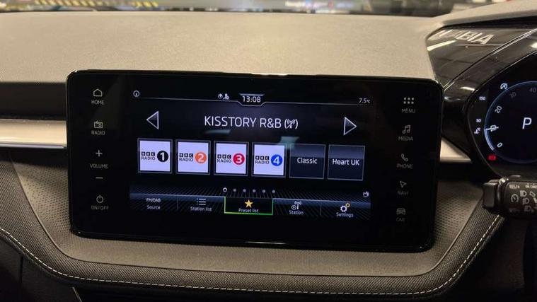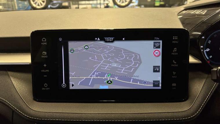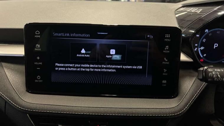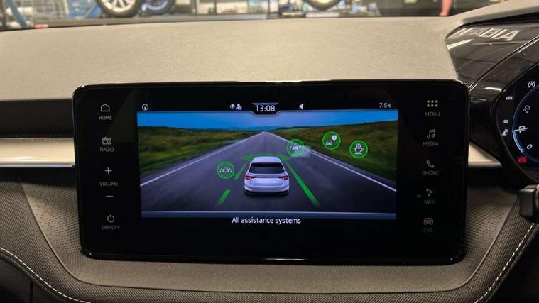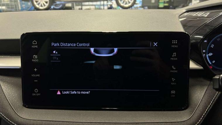 Advanced driver attention and drowsiness monitor, Bluetooth connection, Electromechanical power steering, Exterior temperature gauge, Service interval indicator, Traffic sign recognition, Virtual cockpit with 10.25" colour display, Wireless SmartLink for Apple CarPlay and Android Auto, 6 Speakers (4 in front and 2 in rear), 9.2" colour display skoda navigation system with voice control and web radio, Auxiliary socket for external MP3 player, DAB digital radio reception, Auto dimming rear view mirror, Body colour door mirrors, Body coloured bumpers, Chrome window surround, Door mirror integrated indicators, Front and rear electric windows, Front window wiper intermittent control, Headlight range control - Automatic, Ice scraper in fuel cap, LED daytime running lights with coming and leaving home feature, LED rear lights, Privacy glass, Rear LED fog light, Rear side wing doors, Rear window wiper with washing nozzles, Roof mounted spoiler, SKODA tailgate lettering in chrome, Third brake light, 2 reading lights in front and 2 reading lights in rear, 3 rear headrests, Backrest split and folding, Central console with removable cup holder and storage box, Chrome handbrake release button, Comfort seats, Door sills with fabia badging, Dual zone air conditioning with climatronic electronic control, Fabric upholstery, Front centre armrest, Gearshift knob/handle in leather, Hand brake lever handle in leather, Height adjustable front headrests, Height adjustable front seats, Height adjustable steering wheel, ISOFIX and TopTether anchorage points to the outer rear seats, ISOFIX and TopTether on the front passenger seat, Luggage compartment lighting, Manually adjustable lumbar support in front seats, Metallic grey interior door handles, Pollen filter, Rear seat bench unsplit, Single front passenger seat, Storm grey headlining, Sun visors with mirror and airbag label on passenger side, Textile floor mats, Ticket holder, Umbrella in drivers door, 3-point height adjustable front seats belts with pretensioner and force limiter, Automatic warning lights in case of crash, Driver and passengers airbag with switch off function, e-Call+, ESC including ABS, MSR, ASR, EDS, HBA and XDS, Front and rear seat belt warning, FRONT ASSIST (AEB City and AEB Inter Urban), Front side airbags, Head airbags, Hill hold control, One tone horn, Pedestrian protection, Three rear 3-points safety seat belts with pretensioner and force limiter including stop function for outer rear seat belts, Tyre pressure monitoring system, Anti-theft alarm system including immobiliser, interior monitoring, backup horn, and towing protection, Central locking with radio remote control, interior controls, SAFE function and 2 foldable keys, Chrome edged air vents, Metallic grey central console cover, Metallic grey upper decorative trim, Satin black door and side trim panel in front, Textile microsuede grey lower decorative trim with art grey stitching, Anti-theft wheel bolts protection, Super-low rolling resistance tyres,