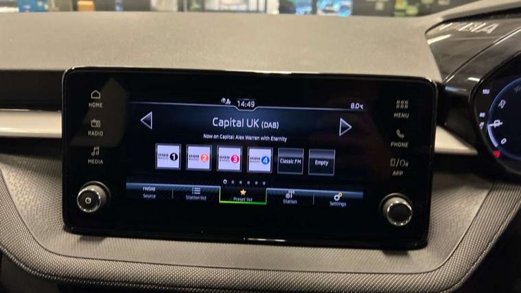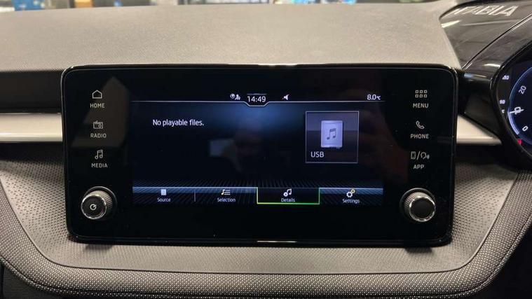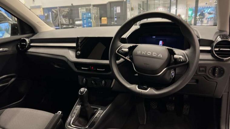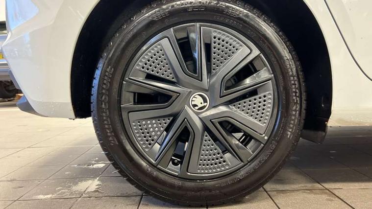 Advanced driver attention and drowsiness monitor, Bluetooth connection, Electromechanical power steering, Exterior temperature gauge, Service interval indicator, Traffic sign recognition, Virtual cockpit with 10.25" colour display, Wireless SmartLink for Apple CarPlay and Android Auto, 6 Speakers (4 in front and 2 in rear), Auxiliary socket for external MP3 player, DAB digital radio reception, Body coloured bumpers, Dimming rear view mirror with black frame, Door mirror integrated indicators, Front and rear electric windows, Front window wiper intermittent control, Headlight range control - Automatic, Ice scraper in fuel cap, LED daytime running lights with coming and leaving home feature, LED rear lights, Privacy glass, Rear LED fog light, Rear side wing doors, Rear window wiper with washing nozzles, Roof mounted spoiler, SKODA tailgate lettering in chrome, Third brake light, 2 reading lights in front and 2 reading lights in rear, 3 rear headrests, Backrest split and folding, Central console with removable cup holder and storage box, Chrome handbrake release button, Fabric upholstery, Front centre armrest, Gearshift knob/handle in leather, Grain satin black interior door handles, Hand brake lever handle in leather, Height adjustable front headrests, Height adjustable front seats, Height adjustable steering wheel, ISOFIX and TopTether anchorage points to the outer rear seats, ISOFIX and TopTether on the front passenger seat, Luggage compartment lighting, Manually adjustable lumbar support in front seats, Pollen filter, Rear seat bench unsplit, Single front passenger seat, Storm grey headlining, Sun visors with mirror and airbag label on passenger side, Textile floor mats, Ticket holder, Umbrella in drivers door, 3-point height adjustable front seats belts with pretensioner and force limiter, Automatic warning lights in case of crash, Driver and passengers airbag with switch off function, e-Call+, ESC including ABS, MSR, ASR, EDS, HBA and XDS, Front and rear seat belt warning, FRONT ASSIST (AEB City and AEB Inter Urban), Front side airbags, Head airbags, One tone horn, Pedestrian protection, Three rear 3-points safety seat belts with pretensioner and force limiter including stop function for outer rear seat belts, Tyre pressure monitoring system, Anti-theft alarm system including immobiliser, interior monitoring, backup horn, and towing protection, Central locking with radio remote control, interior controls, SAFE function and 2 foldable keys, Colour Edition air vents, Grain satin black central console cover, Metallic grey upper decorative trim, Satin black door and side trim panel in front, Textile Kota grey lower decorative inserts, Anti-theft wheel bolts protection, Super-low rolling resistance tyres,
