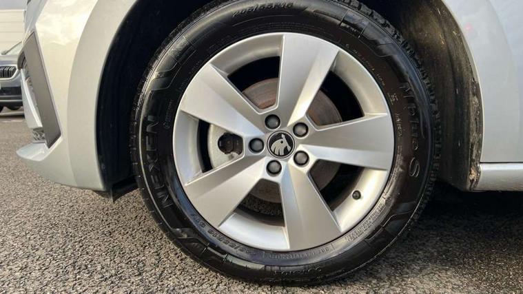 Advanced driver attention and drowsiness monitor, Bluetooth, e-Call (emergency call), Front assist system, PAS, Rear parking sensors, Rear view camera, Speed limiter, Tailgate, Traffic sign recognition, Virtual Cockpit - 10.25" digital display, Voice control system, Wireless smartlink, 4 USB C ports, 8 Speakers, 9.2" Skoda navigation display, DAB radio, Auto dimming rear view mirror, Automatic headlamp activation with Coming home and Leaving home feature, Automatic high/low beam, Body colour bumpers, Body colour door mirrors and handles, Chrome moulding around grille, Front and rear electric windows, Full LED headlights, Heated rear window, LED 3rd brake light, LED brake lights, LED daytime running lights, LED front turning lights, LED high beam, LED low beam, LED taillights, Rear LED fog light, Rear side wing doors, Rear wiper, Tinted windows, Unique dark chrome design logo on alloy wheels, 12V socket in luggage compartment, 3 seat bench in 2nd row, Black / Grey armrest stitching, Black hotstamping, Cargo elements, Chrome inner door handles, Door inserts in satin black, Driver and passenger sun visors with vanity mirror, Dual zone climate control, Front and rear roof lights, Front centre armrest, Front head restraints, Glasses storage in roof liner, Height adjustable driver seat, Height adjustable passenger seat, Ice scraper, Illuminated glove compartment, Inner circulation control with pollen filter, ISOFIX for front passenger seat, Isofix preparation for back seats, Leather gearknob and handbrake lever, Loft cloth upholstery, Luggage net under rear parcel shelf, Manual lumbar support for front seats, Net package and top tether hooks in boot space, Pearl grey ceiling, Pocket on the back of both front seats, incl. mobile phone pockets, Single front passenger seat, Skoda lettering on steering wheel, Textile floor mats, Third rear headrest, Ticket holder, Top tether for front passenger seat, Umbrella in driver's door, 3x3 point rear seatbelts, ABS, Child locks, Curtain airbags and front side airbags, Disc brakes, Driver and front passenger airbags, ESP, Hill hold control, Manual leather parking brake, One tone horn, Passenger airbag switch off function, Seatbelt reminder for driver and front passenger, Tyre pressure monitoring system, Anti theft alarm system with interior monitoring, backup horn and towing protection, Anti-theft wheel bolts, Remote central locking with 2 remote folding keys, SAFE function for remote central locking, Decord pad, door inserts Kota uni,