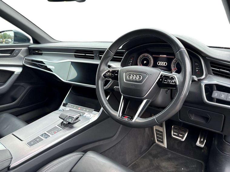 Audi drive select, Audi smartphone interface, Automatic start/stop system, Bluetooth interface, Colour driver's information system display, Electric boot release, Lane departure warning system, MMI navigation with MMI touch, Progressive power assisted steering, Service interval indicator, Twin touch screen, Voice control system, Diesel particulate filter, Audi music interface, Auxiliary input socket, DAB Digital radio, MMI Radio plus with CD player and bluetooth interface, SD card slot, USB connection, Acoustic windscreen, Auto dimming rear view mirror, Body coloured door mirrors, Electric front/rear windows, Headlight washers, Heat insulating glass, Matt black side air intake grille, Radiator grille in titanium black matt, single frame in chrome and horizontal struts in matt aluminium silver, Rain and light sensors, S line air inlet design with inlay in matt aluminium, S Line badge on front fender, S Line front and rear bumpers, S line rear diffuser and grille in matt black with matt aluminium tailpipes, S Line side skirts, Signature rear LED light design, Towbar preparation, 4 way electric lumbar support for driver and front passenger, 40/20/40 split folding rear seats with rear centre armrest, Black cloth headlining, Electrically adjustable front seats - driver seat with memory, Front centre armrest, Front head restraints, Illuminated door sill trims with S logo, ISOFIX child seat mounting and Top Tether with front passenger airbag deactivation, Jack and tool kit, Leather gear knob, Leatherette upper dashboard and door shoulders, Luggage compartment, Perforated leather steering wheel with contrast stitching, Rear headrests, S line front and rear floor mats with contrast stitching, Stainless steel pedals and foot rest, Sunvisors with illuminated vanity mirrors, LED ambient lighting pack - A6, Non smoking pack - A6, 3 point seatbelts on all seats, ABS/EBD, ASR traction control, Driver and passenger airbags, Driver/front passenger side airbags, EDL, Electromechanical parking brake, Electronic stability control, Extended pedestrian protection measures, Head airbags, Pre sense front, Seatbelt warning, Tyre pressure warning, Warning triangle and first aid kit, Anti theft alarm, Anti-theft wheel bolts, Immobiliser, Keyless Start, Remote central locking, Tow away protection,