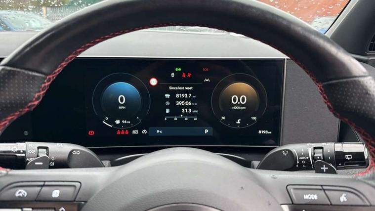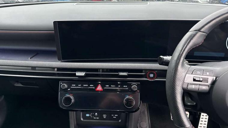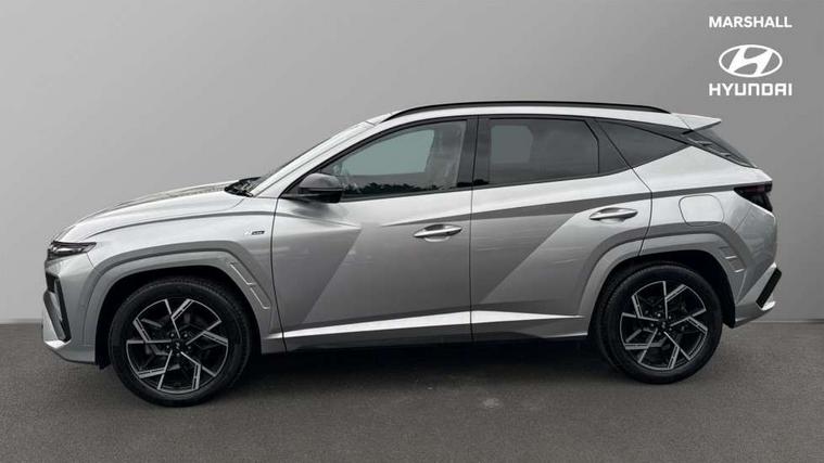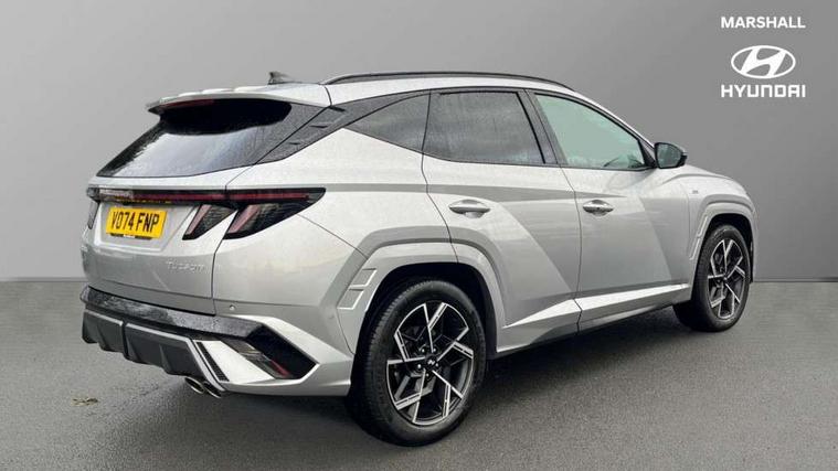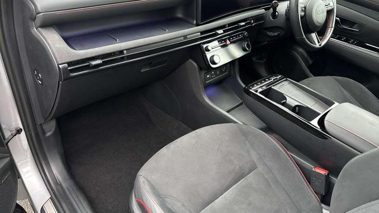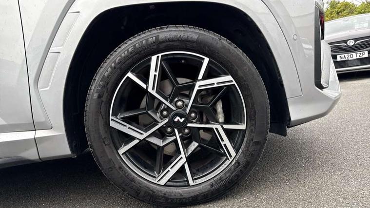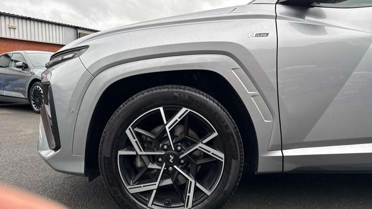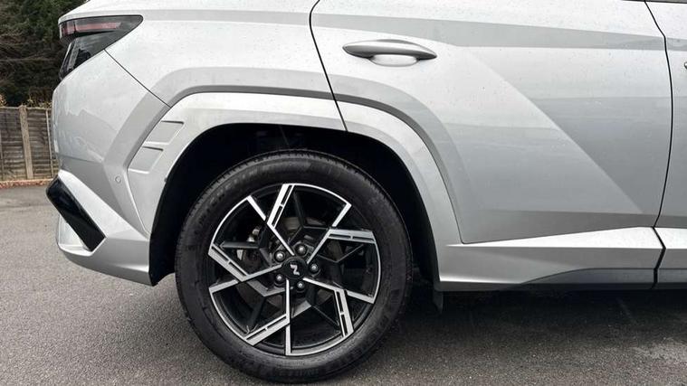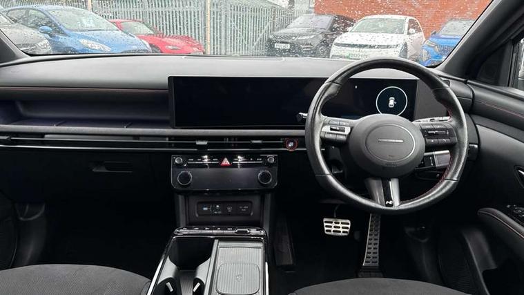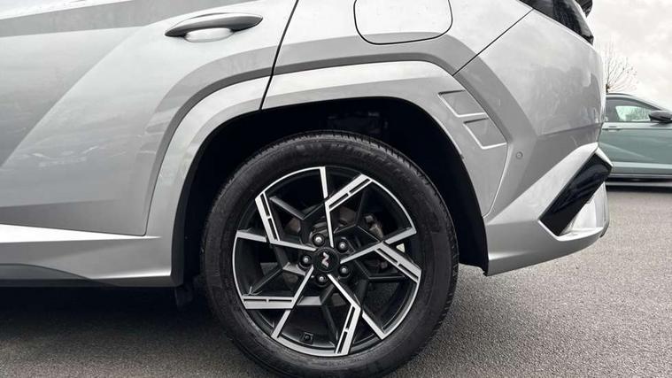 12.3" LCD display with driver's supervision instrument cluster, 12.3" widescreen navigation with bluelink and mapcare, Blind spot view monitor, Bluetooth system, Cruise control - smart adaptive speed control with stop and go function, Digital clock, Drive mode selector, Driver attention warning, E-call, Emergency stop signalling system, Forward Collision Avoidance Assist (FCA) - Car, Pedestrian and Cycle, Forward Collision Avoidance Assist Junction Turning (FCAJX), Front and rear parking sensors, Front, rear and side parking distance warning, Head up Display, Highway Driving Assist (HDA), Hyundai road side assistance, Intelligent speed limit assist, Lane follow assist, Lane keep assist, Over the air updates(OTA), Parking collision avoidance assist (PCA), PAS, Rear camera and guidance parking system, Rev counter, Smart power tailgate, Surround view monitor, Tailgate open warning light, Trip computer, Trip odometer, Voice recognition, Water temperature gauge, Windscreen washer fluid sensor and warning indicator, Wireless Apple CarPlay/Android Auto, Wireless phone charging pad, Shift by Wire Gear Selector (SBW), 2 front and 2 rear USB-C ports, DAB Digital radio, Krell premium audio system with 8 speakers and subwoofer, Steering wheel mounted audio/phone controls, Adjustable intermittent front windscreen wipers with aero wiper blade, Auto dimming rear view mirror, Automatic defog system, Automatic headlights with dusk sensor, Automatic windscreen wipers with rain sensor, Body colour bumpers, Body colour door mirrors with integrated indicators, Body colour exterior door handles, Body coloured wheel arches, Electric tilt/slide panoramic sunroof, Electrically adjustable, heated and power folding door mirrors, Follow me home headlights, Front and rear electric windows with anti-trap mechanism and one touch control, Front fog lights, Glossy black bumper mouldings, LED 3rd brake light, LED daytime running lights, LED rear lights, Matrix LED headlights, Positioning Lights - LED, Privacy glass - Rear windows and tailgate, Rear side wing doors, Rear wash/wipe with intermittent wipe setting, Roof rails, Soft touch rear door paneling, Tinted glass with windscreen shade band, Trailer stability assist, 12V power outlets in front console and luggage compartment, 3 seat bench in 2nd row, 40/20/40 split folding rear seat, 64 colours interior ambient lighting, Adjustable head restraints (Up and down), Cupholders in rear armrest, Door courtesy lights, Driver and passenger sunvisors with illuminated LED vanity mirrors, Driver's seat electric adjustments, Front and rear door pockets, Front armrest with storage box, Front centre console and door bottle holders, Front passenger's seat electric adjustments, Heated front seats, Heated rear seats, Heated steering wheel, Height/reach adjustable steering column, Illuminated/air conditioned glove compartment, ISOFIX child seat anchorage points attached on outer rear seats, Leather wrapped steering wheel and gear knob, Leather/faux textile suede upholstery, LED interior lighting, Luggage compartment lighting, Luggage cover, Luggage hooks, Luggage net, Map and reading lights, Metal pedals, Rear seat remote folding function, Rear side window sunblind, Reclining rear seats, Retractable load cover, Single front passenger seat, Sunglasses holder, Three zone climate control, Touch sensitive climate controls with temperature dials, TUCSON branded metal door scuff plate, Underfloor boot compartment, Ventilated front seats, Wireless charging with armrest, N Line design package - Tucson, N Line interior design package - Tucson, Trailer wiring package - Tucson, 3x3 point rear seatbelts, Active bonnet, Airbag - Front, front side, curtain and centre front airbags, Anti-lock brake system (ABS), Brake assist function, Childproof rear door locks, Curtain airbag roll over sensor, Downhill brake control, Electric parking brake, Electronic stability control, Front and rear seatbelt reminder, Front passenger airbag deactivation switch, Front seatbelt pretensioners, Hill start assist control (HAC), Multi-Collision braking, Outer rear seatbelt height adjustment, Seatbelt height adjustment for front seats, Traction control, Tyre pressure monitoring system with individual tyre pressure display - TPMS, Vehicle stability management, Deadlocks, Immobiliser, Locking wheel nuts, Remote control central locking, Smart key with keyless entry and engine start/stop button, Speed sensitive auto door locking, Thatcham category 1 alarm, 19" Alloy wheels, Tyre repair kit,