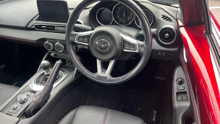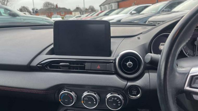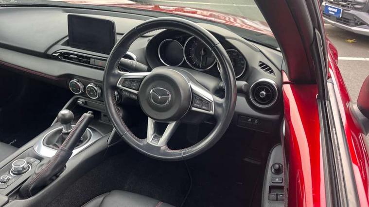 7" touchscreen with multimedia commander, Aha and stitcher app, Analogue speedometer, Cruise control + speed limiter, Driver alert system, Electronic odometer, Engine start/stop button, Hands free phone preparation, Lane departure warning system, PAS, Rear parking sensor, Remote boot release, Satellite navigation system, Tachometer, Traffic sign recognition, Trip computer, Water temperature gauge, 2 USB/aux input socket, Premium Bose sound system with 9 speakers with 2 in each front headrest, AM/FM/DAB radio and single CD/MP3, Steering wheel audio and Bluetooth controls, Adaptive front lighting system, Auto dimming rear view mirror, Automatic headlamp levelling, Body colour bumpers, Body coloured electric/heated door mirrors, Coming/leaving home lighting function, Dual exhaust pipes, Dusk sensitive headlamps, Electric front windows/one touch facility, Electrically operated body colour retractable hard top with heated rear glass window, High mounted rear brake light with Black coloured cover, LED daytime running lights, LED Headlights, Piano Black fashion bars, Rain sensing front wipers, 12V socket, Body coloured inner door trims, Centre console storage box, Chrome Air conditioning dials, Climate control air conditioning, Coin Box, Cupholders, Driver/ passenger seat manual slide, recline and tilt adjustment, Driver/passenger sunvisors with ticket holders + vanity mirrors, Front centre armrest, Front head restraints, Gear shift indicator, Heated front seats, in 3 heat levels, ISOFIX front passenger seat child seat compliance, Leather gear knob, Leather handbrake lever, Leather steering wheel, Lockable rear storage box, Sports seats, Tilt/telescopic steering column, Windblocker, 3 point ELR front seatbelts with pretensioners, ABS+Electronic Brake force Distribution, Deployable Hood System (DHS), DSTC-Dynamic Stability and Traction Control, Dual front airbags, Fasten seatbelt reminder, Hill hold assist, Manual passenger airbag deactivation function, Passenger airbag deactivate switch, Rear smart city brake support, Side airbags, Smart City Brake Support - SCBS, Tyre pressure monitor, Deadlock, Remote central door locking, Smart keyless entry, Thatcham category 1 alarm + immobiliser, Black vinyl leather dashboard panel, Chrome air vent surrounds, Chrome meter rings, 16" Bright finish alloy wheels, Tyre puncture repair kit,