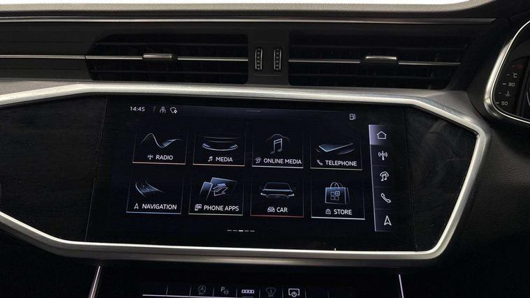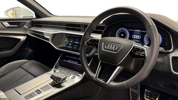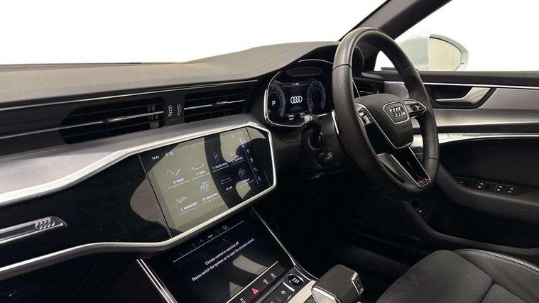 Audi connect safety and service (e-call), Audi connect with Amazon Alexa Integration, Audi drive select, Audi parking system plus - acoustic and visual park assist system for front and rear, Audi virtual cockpit, Automatic start/stop system with coasting functionality, Bluetooth interface, Camera based traffic sign recognition, Lane departure warning system, MMI navigation plus with 10.1" and 8.6" touch screens, Power operated tailgate, Progressive steering, Rear view camera, Service interval indicator, Smartphone interface includes wireless Apple carplay/Android Auto, Voice control system, Sports suspension, Audi front music interface, Audi sound system, Auxiliary input socket, DAB Digital radio, USB connection, Aluminium roof rails, Body colour rear roof spoiler, Body coloured door mirrors, Electric front/rear windows, Electrically adjustable heated and folding + automatically dimming exterior mirrors with memory function, Frameless auto dimming interior rear view mirror, Front intermittent wipers, Heat insulating darkened glass in side and rear windows, Heat insulating glass in windshield, LED rear lights with dynamic indicators, LED signature front daytime running light, LED third brake light, Matrix LED headlights, Matt black rear diffuser with diffuser strip and tailpipes in chrome, Matt black side air intake grille with inlay in matt aluminium, Privacy glass, Radiator grille in anthracite black matt, single frame in chrome and horizontal struts in matt aluminium silver, Rain and light sensors, Rear side wing doors, Rear wiper, 2 zone deluxe electronic climate control, 3 spoke high multi-function perforated leather steering wheel with contrast stitching and shift paddles, 40/20/40 split folding 3 rear seat bench in 3 parts with rear centre armrest, Audi phone box light, Black cloth headlining, Electrically adjustable front seats including seat height, fore/aft position, backrest angle and 4-way lumbar with memory for driver's seat, Front and rear floor mats, Front centre armrest, Front head restraints, Heated front seats, Height/reach adjust steering wheel, Illuminated door sill trims with S logo, Illuminated sun visors with vanity mirrors, Leather gear knob, Luggage compartment system, Rear headrests, Single front passenger seat, Stainless steel pedals and foot rest, Tool kit and car jack, LED Interior Ambient Lighting Pack - A6, Non smoking pack - A6, S line exterior style pack - A6, 3 point seatbelts on all seats, Airbags - Front side, front and rear including head, Audi pre-sense front, EBD - Electronic brakeforce distribution, Electromechanical parking brake, Electronic Stability Control (ESC) including ABS, ASR and EDL, Extended pedestrian protection measures, ISOFIX child seat mounting for front passenger seat and ISOFIX child seat mounting with Top Tether for outer rear seats, Manual child proof rear door locks, Seatbelt monitoring, Tyre pressure warning light, Warning triangle and first aid kit, Anti theft alarm with tow away protection, Anti-theft wheel bolts and wheel loosening detection, Immobiliser, Keyless Go, Remote central locking, Matt brushed aluminium inlays,