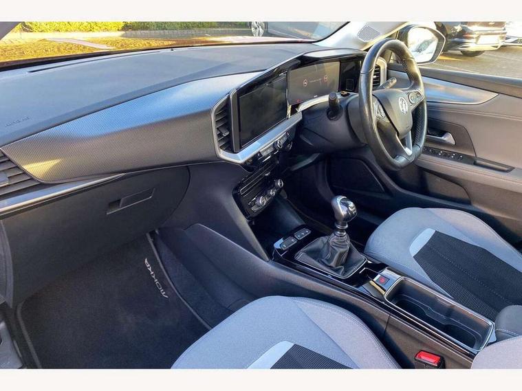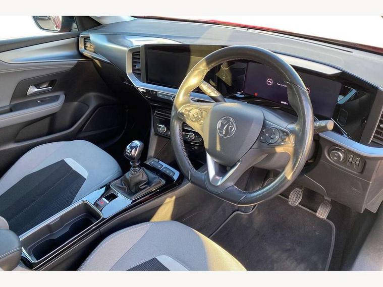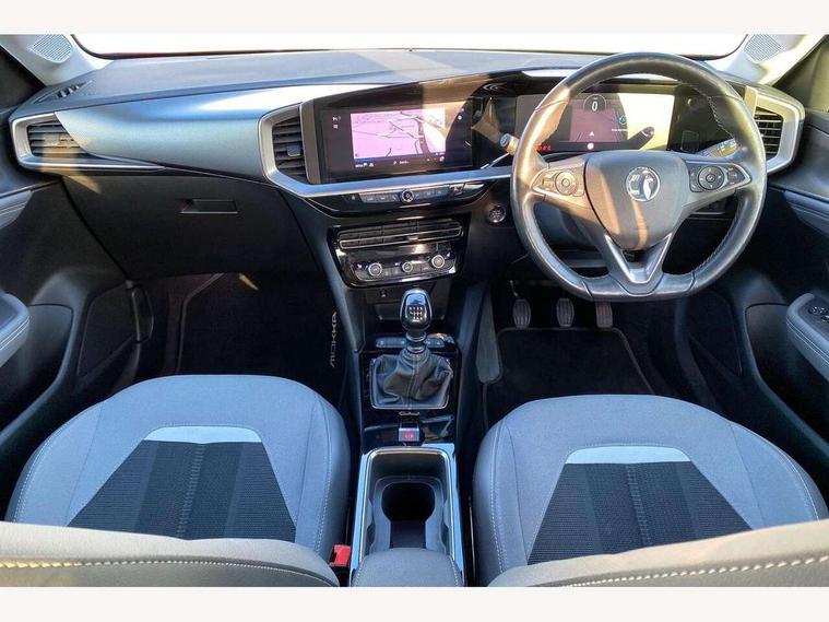 Automatic adaptive cruise control, Engine start/stop button, Front and rear parking distance sensors, Front camera system, Lane keep assist system (LAS) with Lane departure warning system (LDWS), Lights on audible warning, Multi function trip computer, Panoramic rear view camera, Power assisted speed sensitive steering, Side blind spot alert and flank guard, Smartphone integration compatible with Apple CarPlay and Android Auto, Speed sign recognition, Start/stop system, Vauxhall connect, 6 speed manual transmission, Chassis drive line front wheel drive, Electronic fuel system, Front chassis equipment, Rear chassis equipment, Standard chassis suspension system ride handling, Bluetooth A2DP audio streaming, Flexible Roof Mounted Radio Aerial, Front USB connection, Mobile phone portal - bluetooth connect, vehicle microphone, handsfree calls, SMS read out and reply, phone book access, Multimedia Navi pro infotainment with satellite nav, 10" colour touchscreen, 6 speakers, DAB radio, 12" instrument panel, Apple carplay/Android auto, Steering wheel mounted controls, Two rear USB sockets, Adaptive brake lights, Automatic lighting control with tunnel detection, Automatically dimming anti dazzle rear view mirror, Black door mirror housings, Black rear spoiler, Body colour door handles, Body colour front and rear bumpers, Chrome effect skid plates, Chrome effect upper window moulding, Electrically adjustable, heated and folding door mirrors, Electrically operated front and rear windows with safety auto reverse and one touch up/down facility, Hazard warning lights, Heated rear window+rear wash/wipe, High beam assist, LED daytime running lights, LED front fog lamps, LED side repeat indicators, LED tail lights, Manual headlamp level control, Rear foglight, Rear wiper, Reversing light, Solar heat absorbing windscreen and windows, Two speed rain-sensitive windscreen wipers with variable intermittent wipe, Windscreen and side window demist vents, 12V Accessory socket, 3 spoke flat bottomed leather steering wheel with satin chrome bezel, 4 speed fan with illuminated controls, 6 way manual adjustable driver fore/aft, up/down with reclining seatback, 6 way manual adjustable front passenger fore/aft, up/down with reclining seatback, Air recirculation system, Cabin particulate filter - removes dust, airborne particles and pollen, Centre console with two cup holders at front and one in rear, Chrome effect interior door handles, Door pockets with two litre capacity, Driver and passenger seat pocket, Driver and passenger sun visors with vanity mirror, Electronic climate control (ECC), Fabric/leather upholstery with jet black fabric side bolsters, Four adjustable facia vents, Four load restraint lashing eyes, Front centre armrest with storage, Front map reading lights, Front seat back storage pockets, Fully carpeted load area, Heated front seats, Heated steering wheel, Height adjustable front/rear head restraints, Illuminated load area, Interior courtesy light, Interior tailgate handle, Luggage compartment cover, Luggage compartment lighting, Reach + rake adjustable steering column, Twin gas assisted tailgate struts, 2x Isofix child seat fitting on outer rear seats, 3x3 point rear seat belts, Anti-lock braking system (ABS), Automatic emergency city braking, Child proof locks on rear doors, Cornering brake control, Deactivation switch for front passenger front and side impact airbags, Drag torque control, Driver and front passenger airbags, front seat side impact airbags, full size curtain airbags, Driver drowsiness alert system, Electronic brake force distribution, Electronic Stability Programme (ESP), Emergency brake assist, Forward collision alert at all speed, Hill start assist, Inertia reel lap and diagonal seatbelts for all seats, Seatbelt unfastened audible warning and warning light, Straight line stability control, Traction control, Tyre pressure monitoring system, Electronically protected audio equipment, Freewheeling door locks, Immobiliser, Key left in ignition audible warning, Keyless entry and start, Locking wheel nuts, Remote control ultrasonic security alarm system, Visible vehicle identification number, Atlantis black trim inserts of front doors, Black facia with silver trim insert, Instrument panel bar in Light Gravel, 17" bi colour alloy wheels,