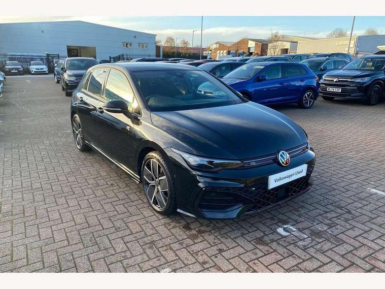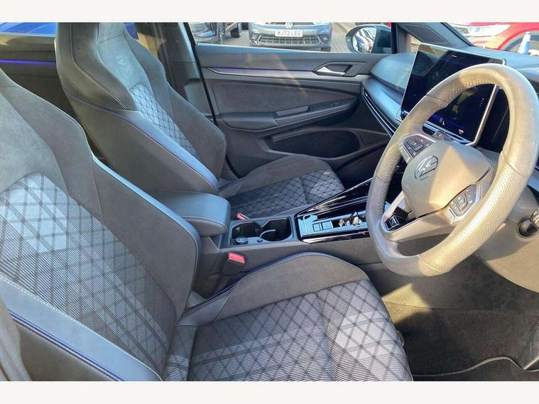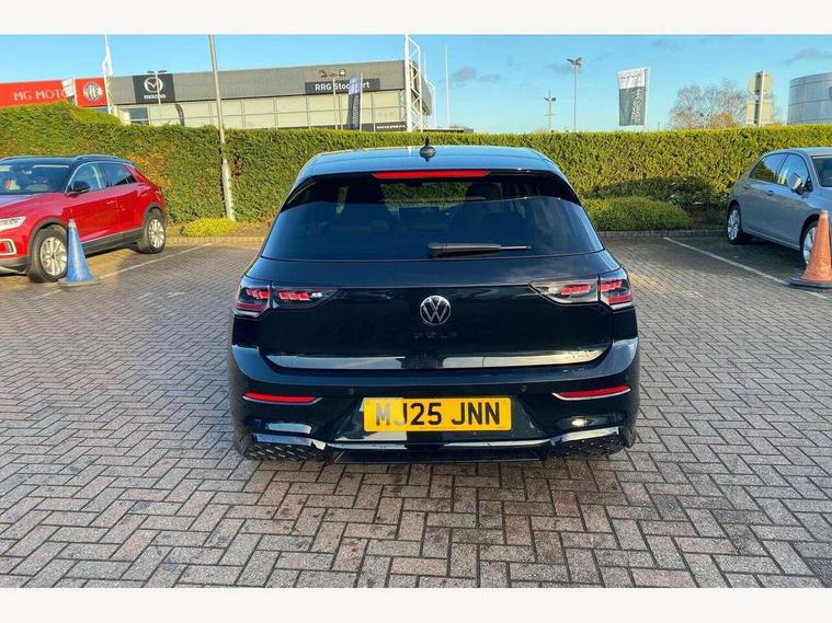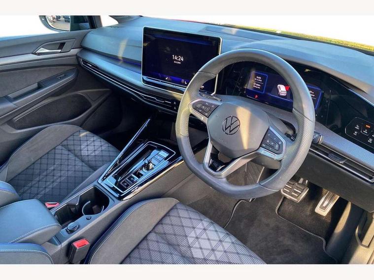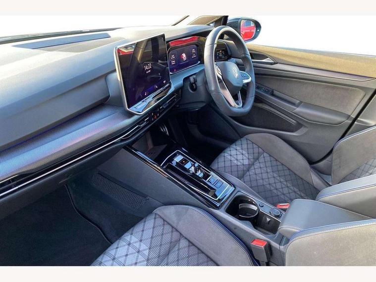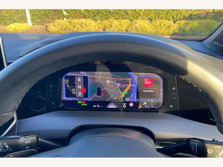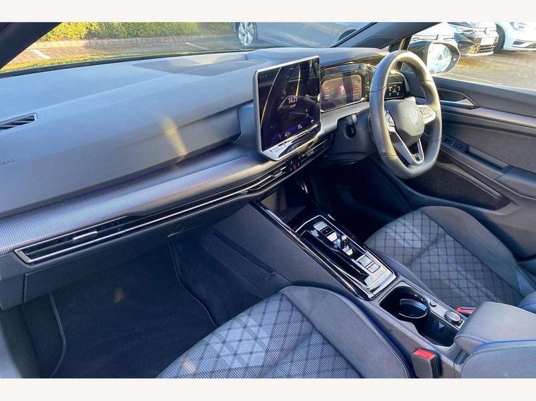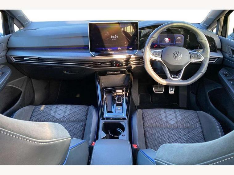 Activated carbon canister, Adaptive cruise control (ACC), Advanced driver attention and drowsiness monitor, Dynamic road sign display, Dynamic steering, E-Sim card for online connectivity, eCall emergency call system, Emergency assist, Lane keeping system Lane Assist, Multi-color Digital cockpit pro, selection of different info profile possible, Multifunction front facing camera for distance control, Navigation system, Oncoming vehicle braking when turning including swerve support, Preparation for light assist system, Speed limiter, Speedo, rev counter, electronic odometer, trip, service interval display, exterior temperature and fuel gauge, Traffic jam assist, Voice enhancer and voice control, Warning signal and warning light for front and rear seatbelts not fastened, We connect plus preparation, We connect preparation, Wireless app connect, Hybrid propulsion system, Petrol Particulate Filter, Start-stop system with battery regeneration (recuperation - energy recovery during braking), XDS electronic differential lock for improved traction and handling, 2 USB C ports in front, 2 USB charging sockets on the centre console in the rear charging capacity upto 45W, Comfort telephony + wireless charging, without wireless aerial connection, Digital radio reception (DAB), Diversity antenna for FM reception, Gaming platform via car app, Infotainment system with 12.9" display, Mobile phone interface with inductive charging feature, 3rd brake light, Auto dimming rear view mirror, Auto headlights, Automatic headlamp activation with Coming home and Leaving home feature, Body colored bumpers in R-Line style, Body colour door handles, Exterior mirrors convex on the left and aspherical on the right, Front and rear electric windows, Heat insulating windshield made of laminated glass, LED daytime running lights, Rain sensor, Rear exhaust tailpipe, Rear fog light on one side and reversing lights on both sides, Rear side wing doors, Rear windscreen washer and wiper with interval delay, Remote electrically foldable door mirrors, puddle lights and reverse activated passenger's door mirror, Volkswagen logo in front, illuminated lighting animation with wake up/goodbye scenario and illuminated door handles, Welcome light with surround lighting, 12V socket in front centre console, 12V socket in luggage compartment, 3 rear head restraints, 3 seat bench in 2nd row, Ambient lighting with 30 colour incl. LED light unit in front footwell with selectable light colour, Brushed stainless steel pedals, Carpet mats, front and rear, Chrome plated radiator grille inserts, air vent surrounds and light switch surrounds, Front centre armrest, Front seat lumbar support adjuster, Heated front seats, Integrated front head restraints, ISOFIX anchors for child seats on outer rear bench seats and on front passanger seat compatible for i-Size, Luggage compartment lighting, Manual height adjustable front seats, Plastic gear knob, Premium sports seats in front, Rear cupholder and loadthough, Sardegna cloth upholstery with front and outer rear seats Art Velour inner sides of bolsters, Single front passenger seat, Soul black instrument panel, Split folding backrest with centre armrest and unsplit rear seat bench, Storm grey roof lining, Sun visors with illuminated vanity mirrors, Black exterior Styling package with Matrix LED headlights - Golf, Winter package - Golf DSG Estate/Hatchback, 3 point height adj front seatbelts + pretensioners, 3 rear three point seatbelts, ABS, Autonomous emergency braking front assist with pedestrian and cyclist monitoring, Child locks on rear doors, Driver and front passenger airbag with front passenger airbag deactivation, Electronic parking brake with auto hold, ESC (Electronic Stability Control), Extended pedestrian protection measures, Hill start assist, Rear disc brakes, Two tone horn, Tyre pressure loss indicator, Volkswagen roadside assistance, Anti theft wheel bolts, Preparation for alcohol interlock, Decorative inserts carbon grey for dashboard and front door trim panels, 18" Leeds alloy wheels,