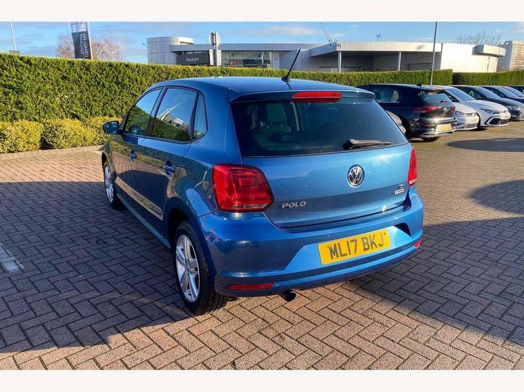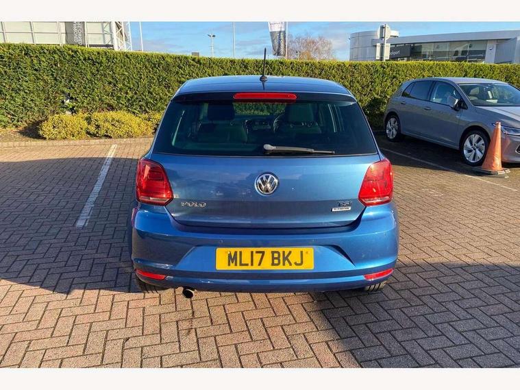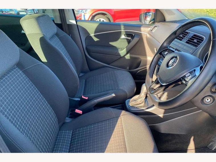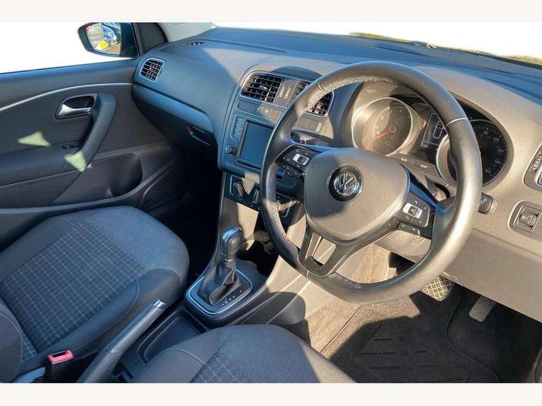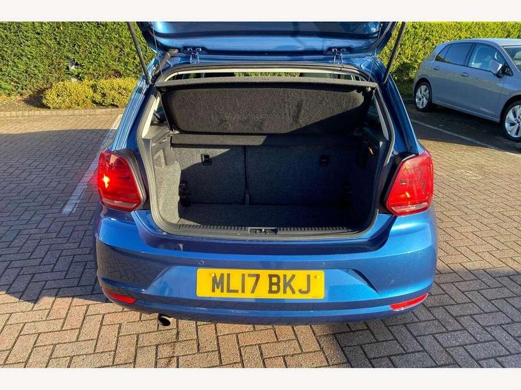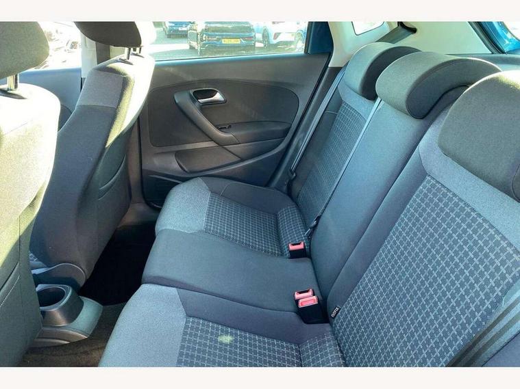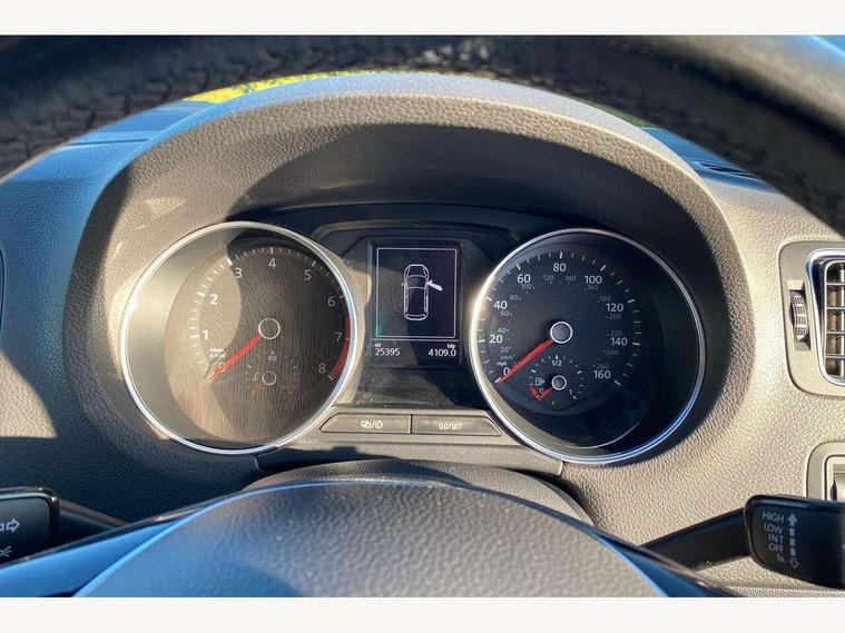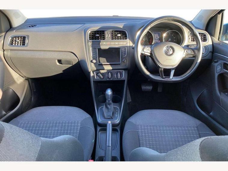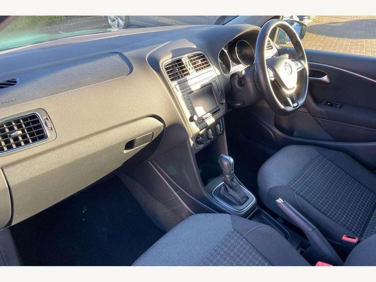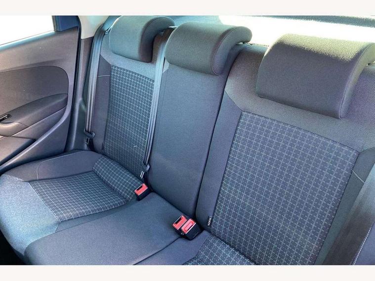 App-Connect, Bluetooth Telephone preparation, Driver alert system, Multi function display, Multifunction computer, PAS - speed related, Service interval indicator, Ultrasonic front and rear optical and audible parking sensors, Warning buzzer and light for front seatbelts unfastened, 6 speakers, Composition media system with radio, glovebox mounted CD, colour touch screen, SD card, aux-in, USB, multimedia interface, DAB Digital radio, Black grille with chrome surround, Body colour bumpers, Body colour door handles, Body colour door mirrors, Body coloured side sills, Chrome trimmed front air intake surrounds, Electric folding door mirrors, Electric front windows, Electric operated/heated door mirrors, Front fog lights with static cornering function, Front wash/wipe with interval delay, Heat insulated tinted glass 65% light absorbing from B pillar back, Heated rear window with auto timer, Rear electric windows, Rear windscreen washer and wiper with interval delay, 12V power socket in centre console, 2 bag hooks in luggage compartment, 2 cupholders, 3 rear head restraints, 3 spoke steering wheel, 4 grab handles, 60/40 split folding rear seat, Centre console storage, Chrome interior door handles, Driver and passenger sunvisors, Driver seat height adjust, Dust/pollen filter, Front door pockets, Front passenger seat height adjust, Front seat backrest storage nets, Front/rear reading lights, Glovebox, Height/reach adjustable steering column, Illuminated vanity mirror, Interior light with delay, Isofix Preparation 2 Rear child seats, Luggage compartment cover, removable, Luggage compartment lighting, Matt chrome gear lever gaiter surround, Multifunction leather steering wheel with leather gear knob/handbrake grip, Storage compartment in front doors, Storage compartment in rear doors, Sunglasses holder, Variable boot floor, Light and sight pack - Polo, 3 point height adj front seatbelts + pretensioners, 3x3 point rear seatbelts, ABS, Automatic post collision braking, Driver/front passenger airbag, Driver/Passenger whiplash optimised head restraints, ESC - Electronic Stability Control + traction control, ESP with EDL + ASR, Hill hold control, Hydraulic Brake Assist (HBA), Tyre pressure monitoring system, Alarm with remote central locking and interior protection, Electronic engine immobiliser, Air vents in Matt chrome, Matt chrome interior trim, 15" steel spare wheel,