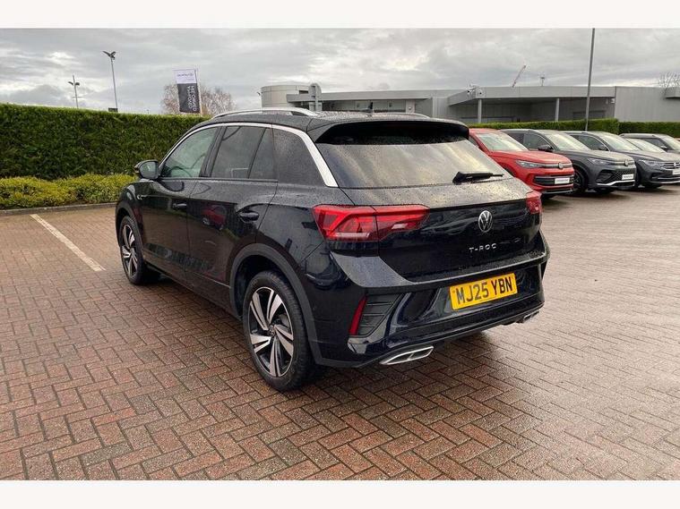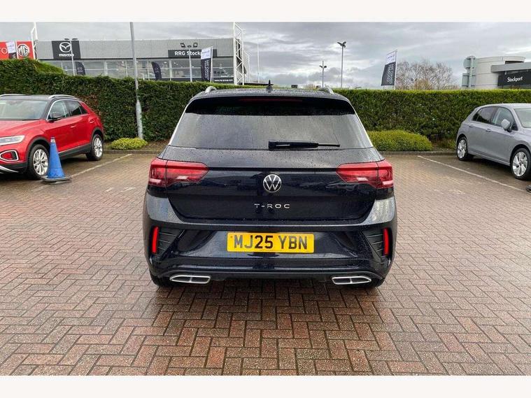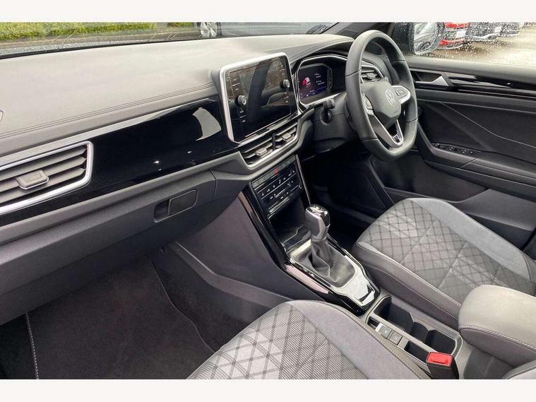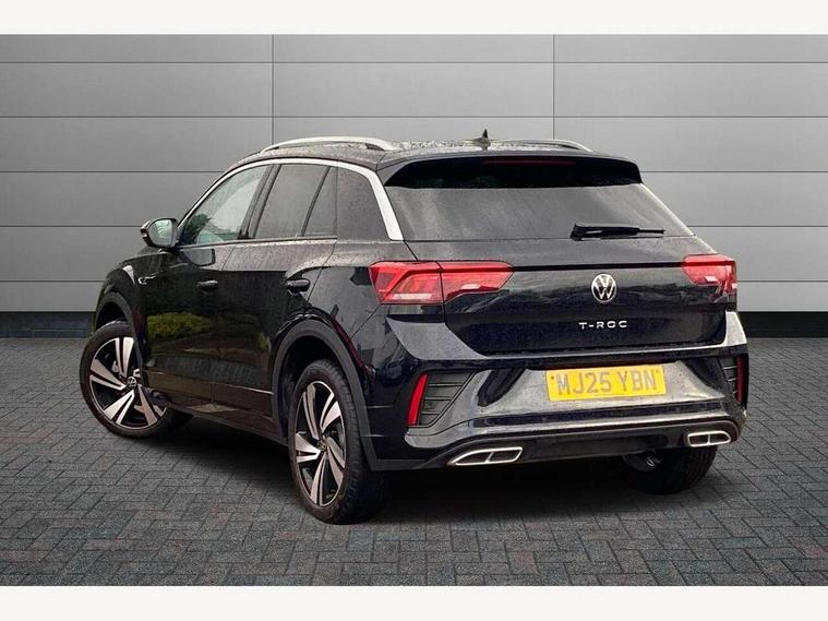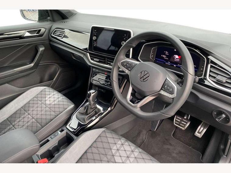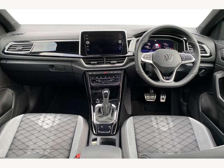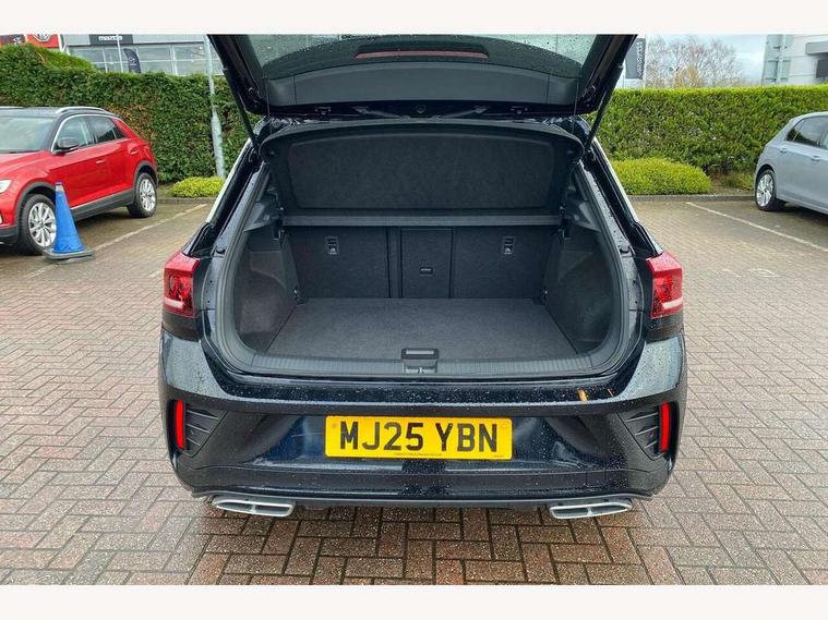 10.25" Digital cockpit pro, Advanced driver attention and drowsiness monitor, Emergency call service, Lane keeping system Lane Assist, Mobile phone interface, Modified key software - reduce switch off time for key status change to Long no motion, Online services, Park assist including front and rear parking sensors, Service interval indicator, Tailgate/trunk lid release from outside, Think blue trainer driver tips and journey analysis, Warning sound and light for front seatbelts unfastened, Wireless app connect, Battery regeneration during braking, Start/stop function with battery regeneration, DAB Digital radio, Diversity antenna for FM reception, Front and rear 6 speakers, Music playback - MP3, WMA and AAC files, Premium USB cable in choice of either Apple or Android smartphone compatibility, SD card slot, Simultaneous pairing of 2 compatible mobile devices, Title and cover art display, We Connect and We Connect Plus functionality, Auto dimming interior rear view mirror, Automatic hazard lights activation under emergency braking, Automatic headlight control with LED separate daytime running lights with coming/leaving home function, Body coloured exterior mirror housings and door handles, Electrically adjustable and heated door mirrors, Extended roof spoiler, Exterior mirrors aspherical on driver side, convex on front passenger side, External USB type C socket and charging sockets, Front windscreen wiper with intermittent wipe and 4 position delay, Heated rear window, LED 3rd brake light, LED rear combination lamps, LED rear number plate lights, Power windows with comfort operation and circuit breaker, Privacy glass for rear side windows and rear window, R-Line design body coloured bumpers, Rain sensor, Rear exhaust tailpipe, Rear fog light on one side and reversing lights on both sides, Rear side wing doors, Rear wash/wipe with intermittent wipe setting, Remote electrically foldable door mirrors, puddle lights and reverse activated passenger's door mirror, 12V power socket in centre console, 3 rear head restraints, 3 seat bench in 2nd row, 4 load lashing points in luggage compartment, Air care climatronic air conditoning system with active combination filter and 2-zone temperature control, Black roof lining, Chrome plated decorative trims, Chrome plated radiator grille inserts, air vent surrounds and light switch surrounds, Door and side trim panel with leatherette insert, Front + rear carpet mats, Front centre armrest, Front cupholders x 2, Front footwell illumination, Front reading light, Front scuff plates with R Line logo, Front seat back storage pockets, Glove compartment door with light, Instrument lighting, white adjustable panel illumination, Interior ambient lighting and surround lighting, Interior light delay, Isofix child seat preparation, Leather gearshift handle, Load-through provision with cup holder when folded down ('Unsplit rear seat bench, split folding backrest, with centre armrest), Luggage compartment lighting, Single front passenger seat, Stainless steel pedals, Storage compartment in left and right luggage area, Storage compartment in rear doors, Storage compartments in driver and front passenger doors, Sunvisors with illuminated vanity mirrors, Variable boot floor, height adjustable and removable, Driver assistance pack without proactive passenger protection - T-Roc, 3 point height adj front seatbelts + pretensioners, 3 point seatbelts in outer rear with ECE label, ABS, Child locks on rear doors, City emergency braking and pedestrian monitoring, Driver and front passenger airbag with front passenger airbag deactivation, Driver and front passenger safety-optimised head restraints, Drivers seatbelt reminder, Electronic parking brake, Electronic Stability Control (ESC) inc EDL (Electronic Differential Lock) and ASR (Traction Control), Front and rear passengers curtain airbag system including front side airbags, Hill start assist, Predictive pedestrian protection, Rear disc brakes, Two tone horn, Tyre pressure loss indicator, Volkswagen roadside assistance, Piano black decorative inserts in dashboard and front door trim panels, Trims for alloy wheels,