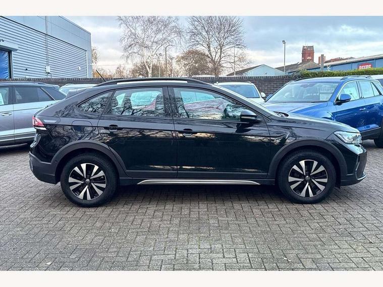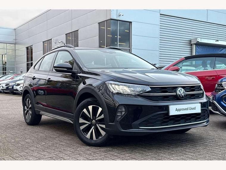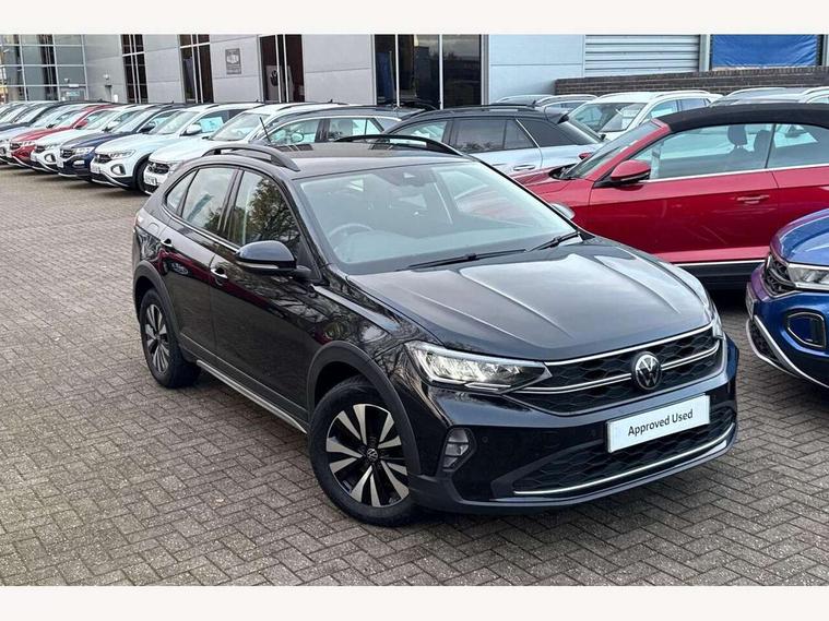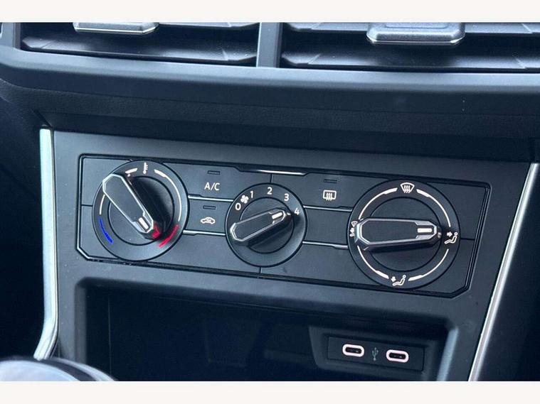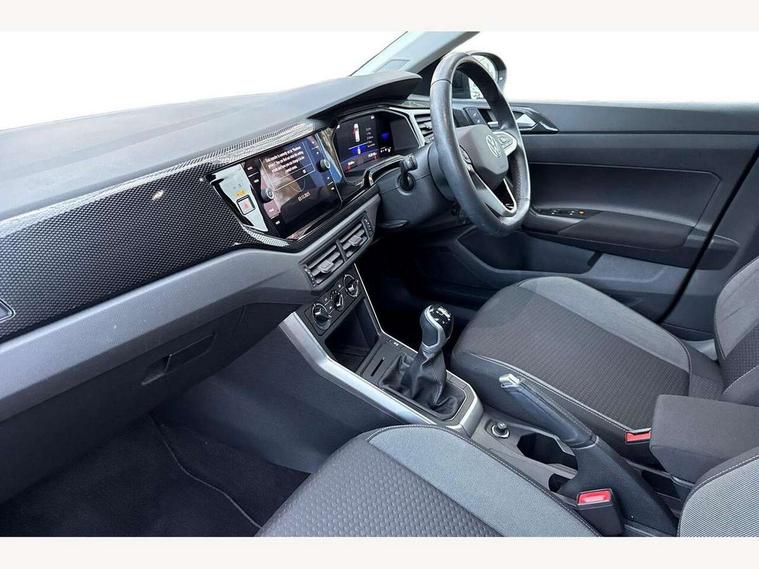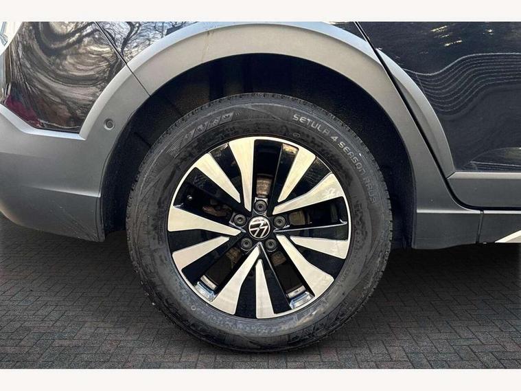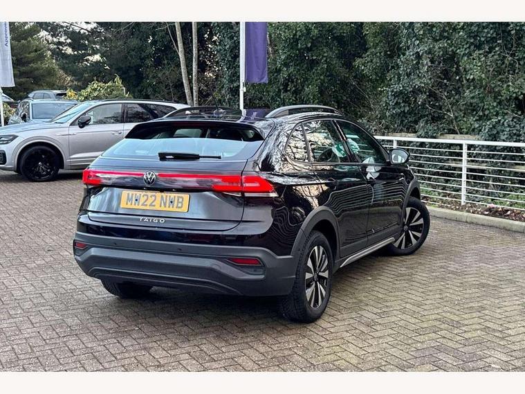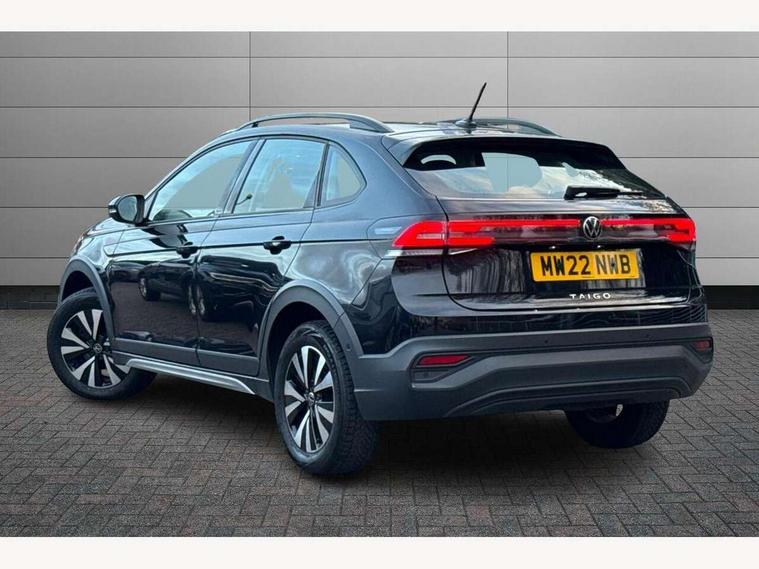App-Connect including App-Connect Wireless, Driver alert system, e-Call (emergency call), Power Steering, Travel assist including emergency assist, Washer fluid level indicator, Wireless Charging including Bluetooth, Start-stop system with battery regeneration (recuperation - energy recovery during braking), Digital radio reception (DAB+), Diversity antenna for FM reception, WeConnect plus, Ambient lighting with logo projection, Aspherical driver's exterior mirror, Auto headlights, Body coloured bumpers, Body coloured exterior mirror housings and door handles, Electric windows, External USB type C socket and charging sockets, Front fog lamps with cornering function, Headlight range control, Heat insulating glass windscreen, LED headlamps, LED rear combination lamp, LED third brake light, Left convex exterior mirror, Power folding adjustable/heated exterior mirrors and front passenger exterior mirror lowering function, Rear fog light on one side, reversing light on both sides, Rear side wing doors, Rear wash/wipe with intermittent wipe setting, 'Slash/ Austin' Cloth upholstery, 12V socket in centre console, 2 front reading lights, 3 rear head restraints, 3 seat bench in 2nd row, Black carpets, Child seat anchor for child seat system i-Size, 2x top tether and child seat anchor in front on front passenger side, Door and side trim panels in titan black, Driver and front passenger seat height adjustment, Front centre armrest, Handbrake lever handle in leather, Height and reach adjustable steering wheel, Leather trimmed gear knob, Leather wrapped multifunction steering wheel, Luggage compartment floor, Luggage compartment light, Lumbar support for driver's and front passengers seat, Seat covers in titanium black, Single front passenger seat, Split folding backrest with centre armrest and unsplit rear seat bench, Storage compartment under front seats, Sun visors with illuminated vanity mirrors, Chrome Package - Taigo, Drivers assistance pack - Taigo, Light and Sight pack including High beam assist - Taigo, 2 x 3-point seatbelts/outer rear seats with ECE label, 3-point seat belts in front with pretensioner and height adjustment, 3-point seatbelt for centre rear seat, Driver and front passenger airbags with front passenger airbag de-activation, front side and curtain airbags, Driver and front passenger safety-optimised head restraints, Electronic stability control, Extended and predictive pedestrian/ cyclist protection, Front and rear disc brakes, Front curtain and side airbags with center airbag, Hill start assist, Manual rear child locks, Single tone horn, Tyre pressure loss indicator, Anti-theft alarm system with interior monitoring, backup horn, and towing protection, Anti-theft wheel bolts, Lava stone black gloss/matt decorative inserts in dash and front door panels, Low rolling resistance tyres,