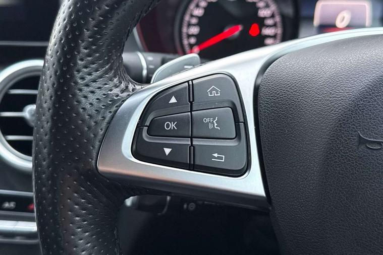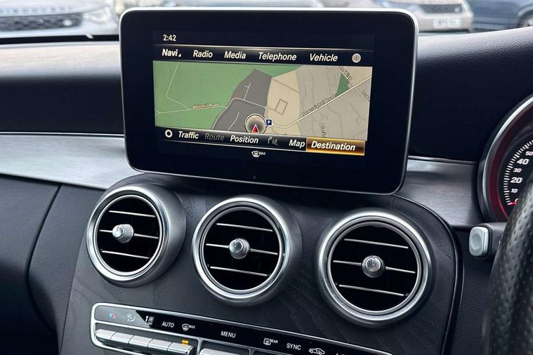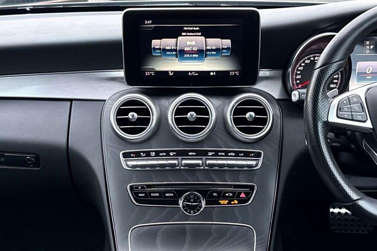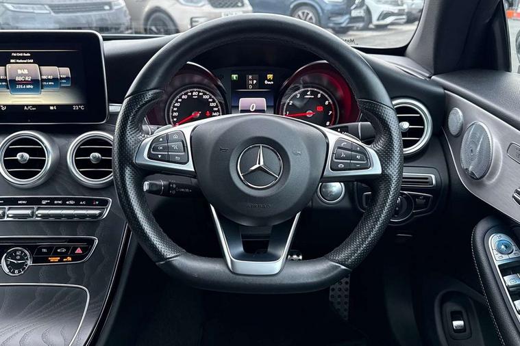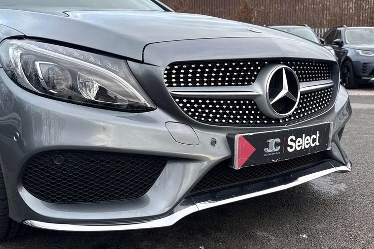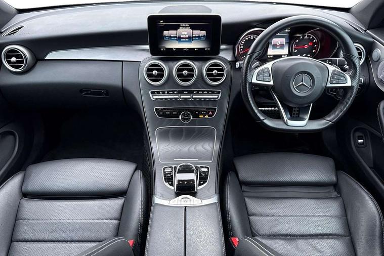 Active park assist with parktronic system, Attention assist, Bluetooth interface for hands free telephone, Collision prevention assist plus, COMAND online nav with colour display, radio/CD/DVD/MP3, SD card, 10GB music, Emergency Call system, speed limit assist, linguatronic voice control, DYNAMIC SELECT with a choice of driving modes (ECO, Comfort, Sport, Sport+ and Individual), Instrument cluster with 5.5-inch TFT multi-function display, Multi function trip computer, Outside temperature gauge, Remote boot release, Service indicator (ASSYST), Speed sensitive steering, Sport exhaust system, 2 USB ports, Burmester surround sound system, DAB digital radio module, Frontbass loudspeakers, Media interface, Steering column mounted multifunction controls, Adaptive brake lights, AMG front, rear apron and side skirts, Auto dimming driver's door mirror, Auto dimming rear view mirror, Body coloured bumpers, Chrome grille surround, Door sill plates with "Mercedes-Benz" lettering, Electric adjustable/heated/folding door mirrors, Electric windows one touch open/close, Green tinted glass, Heated windscreen washers, LED daytime running lights, LED tail lights, Radiator grille with integral star, Rain sensor windscreen wipers, Side windows surround in polished aluminium, Twin chrome exhaust tailpipes, Wind deflector, 2 cupholders in front centre console, 2 rear head restraints, 3 spoke flat bottom multi-function leather AMG steering wheel, 40:20:40 split folding rear seats, Advanced multicolour ambient light and LED interior light, Airscarf - neck level heating, AMG floormats, Auto dual-zone climate control system, Auto Mercedes-Benz child seat recognition sensor, Door courtesy lamps, Electric front seats, Electric height adjustable front seats, Electric height/reach adjustable steering column, Front centre armrest with storage compartment, Front footwell illumination, Heated front seats, Illuminated front/rear door handle recesses, Illuminated glovebox, Isofix rear child seat fastenings, LED reading lights, Sports pedals with stainless steel surfaces and rubber studs, Sports seats with integrated headrests, Steering wheel gearshift paddles, Sunvisors with illuminated vanity mirrors, Memory pack - C Class, Stowage space pack - C Class, 2 rear seatbelts, ABS + BAS, Active bonnet, Adaptive brake system, Brake calipers with Mercedes-Benz lettering + perforated brake discs, Drivers knee airbag, Drivers pelvis airbag, Dual stage driver/passenger airbags, Electronic parking brake, ESP with ASR, Front side airbags, Hill hold control, Hill start assist, Tyre pressure monitoring system, Warning triangle and first aid kit, Window airbags, Alarm system/interior protection/immobiliser, Chrome surround in electric key, Keyless entry and keyless start, Remote central locking, Tyre inflation kit,