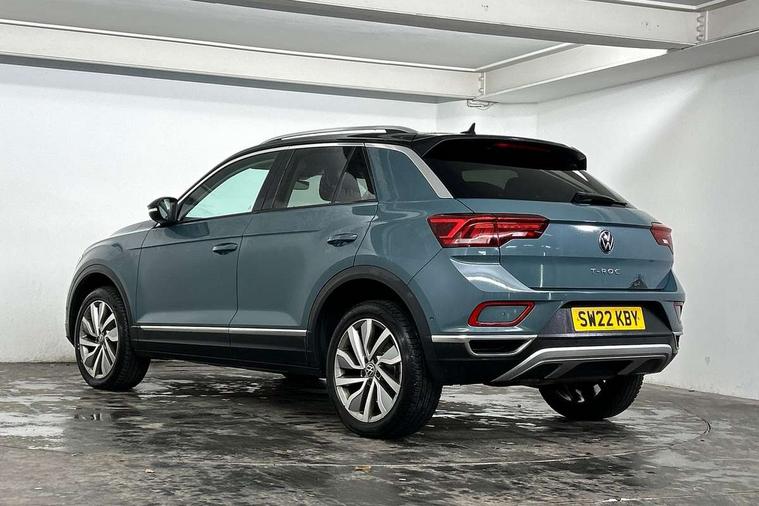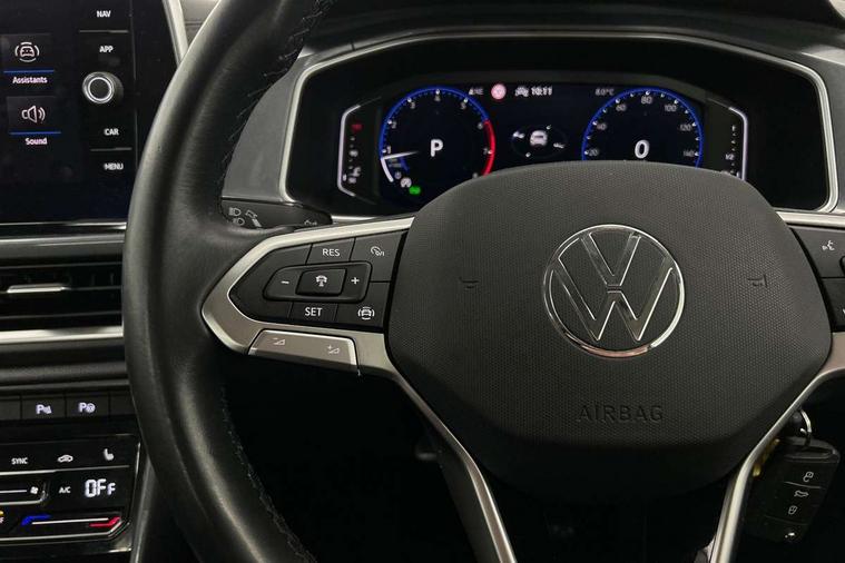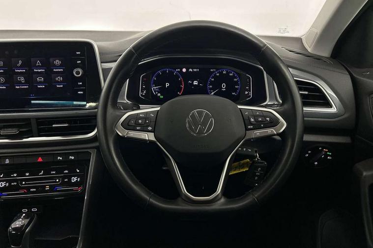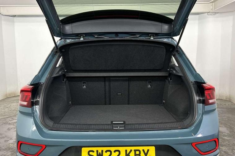 10.25" Digital cockpit pro, Bluetooth mobile phone interface, Driver alert system with fatigue detection, Driver tips and journey analysis, Emergency call service, Lane keeping system Lane Assist, Modified key software - reduce switch off time for key status change to Long no motion, Online services, Park assist including front and rear parking sensors, Service interval indicator, Tailgate/trunk lid release from outside, Think blue trainer driver tips and journey analysis, Warning sound and light for front seatbelts unfastened, Wireless app connect, Battery regeneration during braking, Start/stop function with battery regeneration, Diversity antenna for FM reception, Front and rear 6 speakers, Music playback - MP3, WMA and AAC files, Premium USB cable in choice of either Apple or Android smartphone compatibility, SD card slot, Simultaneous pairing of 2 compatible mobile devices, Title and cover art display, We Connect and We Connect Plus functionality, 3rd brake light, Auto dimming interior rear view mirror, Automatic hazard lights activation under emergency braking, Automatic headlight control with LED separate daytime running lights with coming/leaving home function, Body colour sports bumpers with silver metallic underbody fascia, Dynamic headlight range control with self adjusting whilst driving, Extended roof spoiler, Exterior mirrors aspherical on driver side, convex on front passenger side, External USB type C socket and charging sockets, Front windscreen wiper with intermittent wipe and 4 position delay, Heated rear window, LED Plus headlamps, LED rear combination lamps, LED rear number plate lights, LED tail lamp rear comination lamps, Light mode for poor weather, rain, fog or snow, Power windows with comfort operation and circuit breaker, Rain sensor, Rear exhaust tailpipe, Rear fog light on one side and reversing lights on both sides, Rear side wing doors, Rear wash/wipe with intermittent wipe setting, Remote electrically foldable door mirrors, puddle lights and reverse activated passenger's door mirror, 12V power socket in centre console, 3 rear head restraints, 3 seat bench in 2nd row, 4 load lashing points in luggage compartment, Air care climatronic air conditoning system with active combination filter and 2-zone temperature control, Chrome plated radiator grille inserts, air vent surrounds and light switch surrounds, Door and side trim panel with leatherette insert, Drawer under drivers seat, Front + rear carpet mats, Front centre armrest, Front comfort sports seats, Front cupholders x 2, Front footwell illumination, Instrument lighting, white adjustable panel illumination, Interior ambient lighting and surround lighting, Interior light delay, Isofix child seat preparation, Leather gearshift handle, LED interior light with switch off delay/dimmer and 2 front/rear LED reading lights, Load-through provision with cup holder when folded down ('Unsplit rear seat bench, split folding backrest, with centre armrest), Luggage compartment lighting, Non-folding front passenger seat backrest, Single front passenger seat, Storage compartment in left and right luggage area, Storage compartment in rear doors, Storage compartments in driver and front passenger doors, Sunvisors with illuminated vanity mirrors, Variable boot floor, height adjustable and removable, Driver assistance pack without proactive passenger protection - T-Roc, 3 point height adj front seatbelts + pretensioners, 3 point seatbelts in outer rear with ECE label, ABS, Child locks on rear doors, Driver and front passenger airbag with front passenger airbag deactivation, Driver and front passenger safety-optimised head restraints, Drivers seatbelt reminder, Electronic parking brake, Electronic Stability Control (ESC) inc EDL (Electronic Differential Lock) and ASR (Traction Control), Front and rear passengers curtain airbag system including front side airbags, Front assist with city emergency braking and pedestrian monitoring, Front seat side impact airbags, Predictive pedestrian protection, Rear disc brakes, Single tone horn, Tyre pressure loss indicator, Volkswagen roadside assistance, Alarm with interior protection, Anti-theft alarm system with interior monitoring, backup horn, and towing protection, Remote central locking with SAFELOCK, radio remote control with 2 remote control folding keys, Trims for alloy wheels,