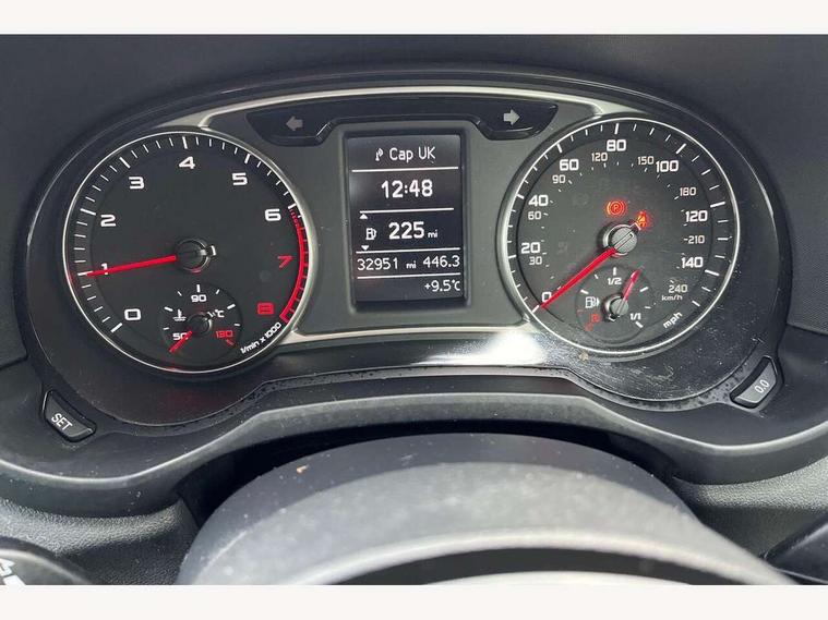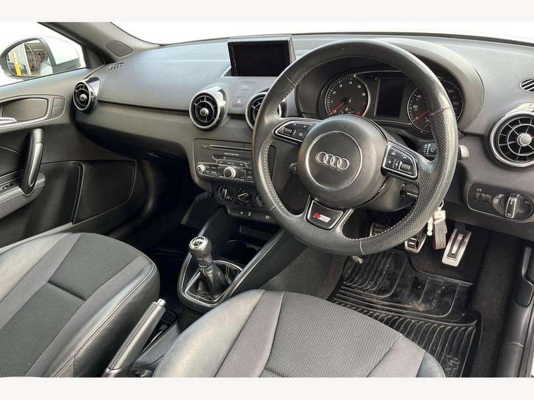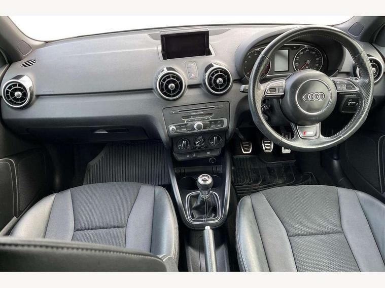Audi drive select, Cruise control, Driver's information system, Electro-mechanical PAS, Low washer fluid indicator, Service interval indicator, Voice control system, Additional SD card reader, Audi music interface, Bluetooth audio streaming, DAB Digital radio, Adaptive brake lights, Body coloured bumpers, Body coloured door mirrors, Electric adjustable door mirrors, Electric front windows, Front fog lights, Heat insulating glass, Heated door mirrors, Heated rear windscreen, Rear diffuser, Rear wiper, Roof spoiler, S Line body styling, Xenon plus headlights including automatic headlights, LED daytime running lights, LED rear lights, dynamic range control and headlight washers, 12V Accessory socket in centre console, Adjustable rear head restraints, Black cloth headlining, Cupholders in centre console, Door sills trims with aluminium inlays, Front floor mats, Front head restraints, Front seats - 'Easy Entry', Height adjustable front seats, Illuminated glovebox, Isofix attachments on outer rear seats, Jack and tool kit, Leather handbrake, Lumbar adjustment for front seats, Rake/reach adjustable steering wheel, Split folding rear seats, Non smoking pack - A1, ABS/EBD, Brake assist function, Driver and passenger side airbags, Driver/Front Passenger airbags, EDL, ESP with ASR, First aid kit, Front and rear seatbelt reminder, Front passenger airbag deactivation, Head airbags, Height adjustable front seatbelts, Rear three point seatbelts x 2, Tyre pressure monitor, Warning triangle, Locking wheel bolts, Remote control central locking, Thatcham category 1 alarm + immobiliser, Tyre repair kit,