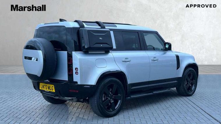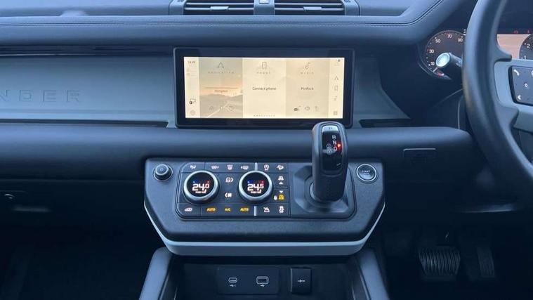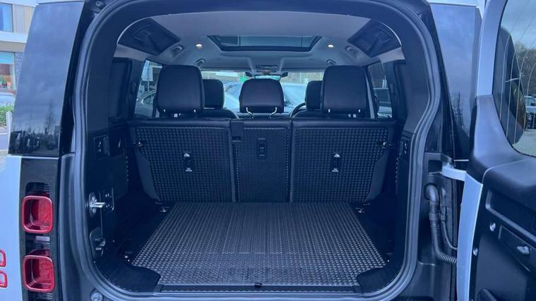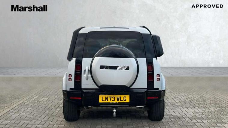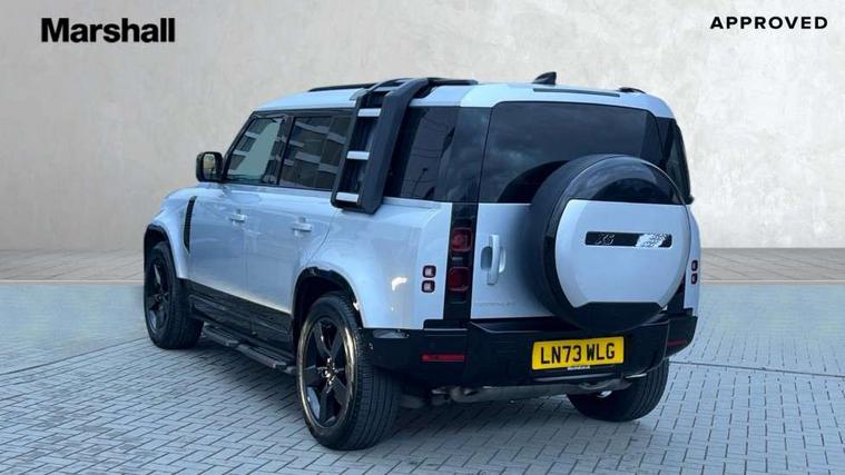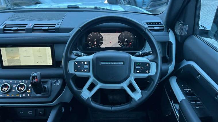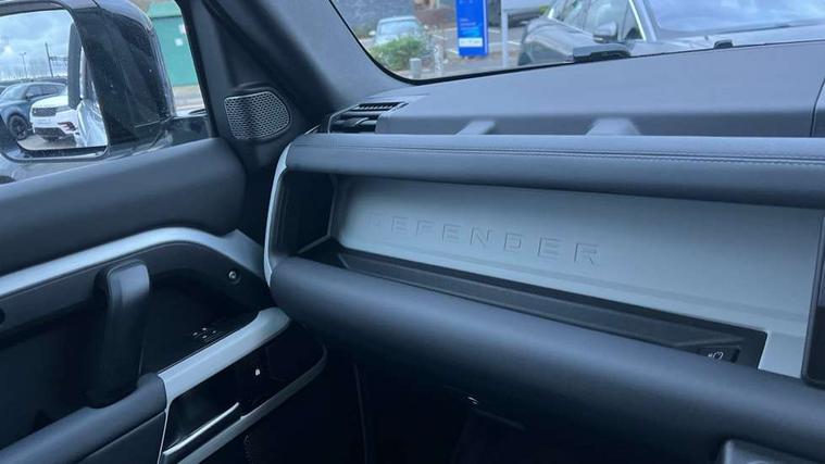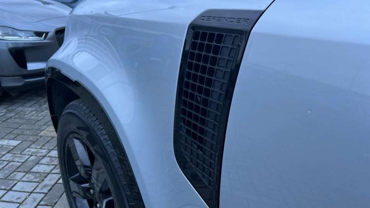 360 degree parking aid, 3D Surround Camera with 360 View, 180 Rear View, Front Traffic Detection, Forward Vehicle Guidance, Tow Hitch Assist and clear sight Ground View, Android Auto, Apple CarPlay, Assisted tailgate with soft close, Blind spot assist, Bluetooth system, Brake pad wear indicator, Clear exit monitor, Connected navigation pro, Cruise control + speed limiter, Driver condition monitor, Electric power assisted steering (EPAS), Interactive driver display, Lane keep assist, Push button start, Rear traffic monitor, Traffic sign recognition with adaptive speed limiter, Trip computer, Wade Sensing, 8 speed automatic transmission, Adaptive dynamics, All wheel drive system, Electronic air suspension, Twin speed transfer box, DAB Radio (Digital Audio Broadcasting), Pivi pro connected, Automatic headlight levelling, Automatic headlights, Body coloured roof, Centre high mounted stop light, ClearSight interior rear view mirror, Electric heated/power fold door mirrors with approach lights and auto dimming driver side, Electric windows with one touch open/close and anti-trap, Follow me home lighting, Front fog lights, Heated rear window with timer, Heated windscreen, Illuminated metal treadplates with brand name script, LED tail lights, Matrix LED headlights with signature DRL, Privacy glass, Puddle lights, Rain sensing windscreen wipers, Rear fog lights, Rear side wing doors, Rear wiper, Side hinged tailgate, Signature graphic (with interior storage), Sliding panoramic roof, Trailer stability assist, 12 way heated and cooled electric memory front seats with 2 way manual headrests, 12V power socket in loadspace, 3 seat bench in 2nd row, 40:20:40 folding rear seats with centre armrest, Alpine lights, Configurable cabin lighting, Durable rubber cabin flooring, Durable rubber loadspace flooring, Electric cabin pre conditioning, Electric reach + rake adjustable steering column, Footwell lights, Front centre console refrigerator compartment, Front passenger isofix child seat attachment, Grained Leather upholstery, Heated steering wheel, Leather gearshift, Light oyster morzine headlining, Loadspace cover, Loadspace Hook, Multifunction steering wheel, Overhead stowage for sunglasses, Premium cabin lighting, Rear headrests, Rear ISOFIX, Rear reading lights, Single front passenger seat, Standard interior, Standard leather steering wheel, Standard seat configuration, Storage glovebox, Sunvisors with illuminated vanity mirrors, Online pack with data plan - Defender, XS Edition exterior pack - Defender, 5 x 3 point seatbelts, ABS, Brake hold function, Cornering brake control (CBC), Cross car beam in light grey powder coat brushed finish, Customer configurable autolock, DSC - Dynamic Stability Control, EBD - Electronic brakeforce distribution, Electric parking brake (EPB), Emergency brake assist, Emergency braking, ESP + traction control, Front airbags with passenger seat occupant detector, HDC - Hill descent control, Hill launch assist, Low traction launch, Power operated child locks, Remote for (e-Call, Optimised assistance call, InControl app, Climate, beep and flash and door), RSC - Roll stability control, Seat belt reminder, TPMS (Tyre pressure monitoring system), Alarm, Immobiliser, Intrusion sensor, Keyless entry, Locking wheel nuts,