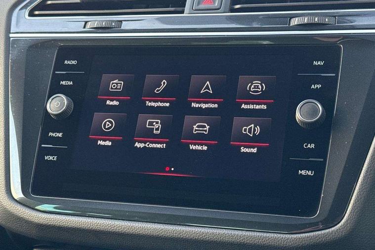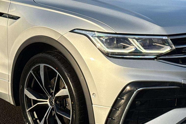 Adaptive cruise control ACC stop and go including speed limiter, App-Connect incl. App-Connect Wireless for Apple CarPlay and Android Auto, Bluetooth phone integration system, Distance control assist, Driver alert system, Driver profile selection, Dynamic road sign display, eCall emergency call system, Electromechanical speed sensitive power steering, Engine start/stop button, Lane keeping system Lane Assist, Lights on warning, Multifunction front facing camera, Outside temperature display, Premium multifunction display with multi colour display, Remote control boot opening, Rev counter, Revision / skills operating concept travel assistant, Service interval indicator, Speed limit display, Start/stop system with regenerative braking, Trip computer, Warning sound and light for doors and tailgate open, All wheel drive - 4Motion, Battery regeneration during braking, Diesel particulate filter, Misfuel prevention device for diesel engine, Selective Catalytic Reduction, XDS electronic differential lock for improved traction and handling, 4 X 20 watt output, 8 Speakers, Diversity antenna for FM reception, Radio, SD card slot, Simultaneous pairing of 2 compatible mobile devices, SMS functionality - read, compose and send SMS messages using touch-screen display, Title and cover art display, USB C ports, Auto dimming interior rear view mirror, Automatic headlight control system, Body colour door handles, Chrome moldings on the side windows, Coming/leaving home lighting function, Dynamic headlight range control, Front and rear electric windows, Heated rear window, High level 3rd brake light, Laminated safety glass windshield, heat and sound insulating, LED headlamps with LED separate daytime running light and dynamic cornering light, LED rear combination lamps, LED rear number plate lights, License plate carrier in front and rear, Poor weather light and cornering light, R Line body kit, R Line side sills, Rain sensor windscreen wipers, Rear exhaust tailpipe, Rear fog lamp, Rear side wing doors, Rear spoiler in R style, Rear windscreen washer and wiper with interval delay, Side and rear windows in heat insulating glass, Trailer Stability Programme, Unique R Line badging, Windscreen wipers/ intermittent wipe + 4 position delay, 12V outlet in center console rear and in luggage compartment, 12V outlet in front and tray, 2 cup holders in front, 2 LED front reading lights, 2 LED rear reading lights, 3 bench rear seats in 2nd row, 3 rear headrests, 4 load lashing points, 40:20:40 split folding rear seats, Air Care Climatronic 3 zone automatic climate control with enhanced air filter and controls in the rear, Backrest release for left front seat, Black headlining, Brushed stainless steel pedals and footrest, Carpet mats in front and rear with decorative stitching in Gray, Climate control unit rear with touch function, Door and side trim panel in foam film, insert in leatherette, Front centre armrest, Front footwell illumination, Front seats head restraints (x-adjustment), Height adjustable front seats, Height/reach adjust steering wheel, Instrument lighting white adjustable panel illumination, Interior light with delay, Isofix Preparation 2 Rear child seats, Leather gear knob, Lockable cooled glovebox, Luggage compartment lighting, Luggage net, Rear bench seat asymetrically split folding, longitudinally movable and folding with load-through hatch and center armrest, Remote unlocking for rear seat backrest, Removable luggage cover, Removable rear headrests, Safety optimised front head restraints, Single front passenger seat, Sliding/reclining rear seats, Standard rear seat release, Storage compartment in driver's door, Storage compartment in passenger's door, Storage compartment in rear doors, Storage compartments in luggage area left and right, Storage tray on dashboard, Sun visors with illuminated vanity mirrors, Top front comfort seats, Variable boot floor, height adjustable and removable, Driver assistance pack plus - Tiguan DSG, 3 point seat belt for centre rear seats, 3 point seat belts with seat belt pretensioners for the outer rear seats, Active bonnet, Curtain airbags for front and rear passengers, Driver/Front Passenger airbags, Drivers knee airbag, Electronic parking brake with auto hold, Electronic Stability Control with driver steering recommendation, ABS, ASR, EDL, EDTC and trailer stabilization, Front assist with autonomous emergency braking (for Adaptive Cruise Control ACC up to 130 mph), Front disc brakes, Front passenger airbag deactivation, Front side airbags, Height adjustable front 3 point seatbelts + pretensioners, Hill hold control, Manual child proof rear door locks, Pedestrian monitoring system, Power assisted brakes, Proactive passenger protection system in combination with front assist, Rear disc brakes, Rigid safety cell with front and rear crumple zones, Two tone horn, Warning sound and light for front seat belts if unfastened, Anti theft alarm system with interior monitoring, backup horn and towing protection, Anti theft wheel bolts, Electronic engine immobiliser, Tool kit,