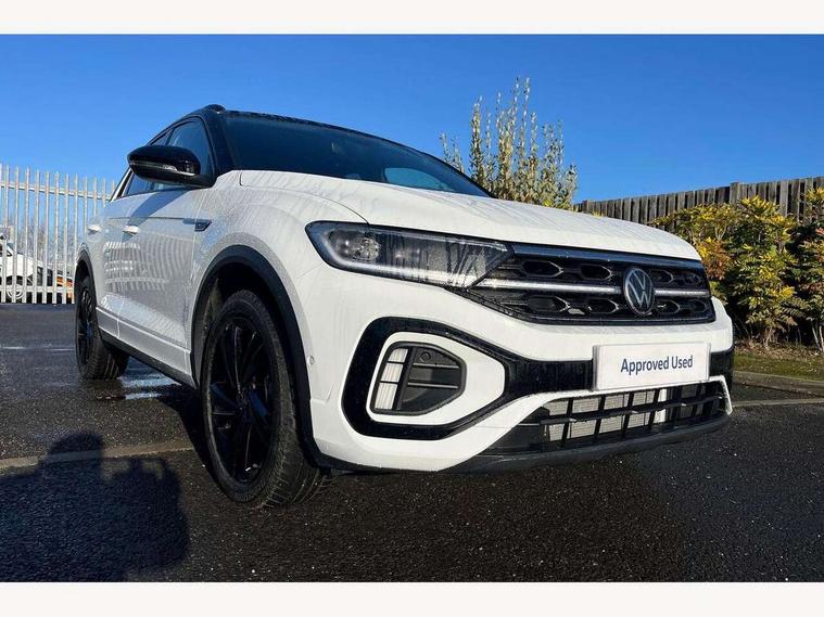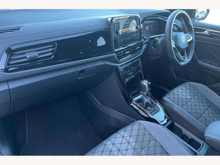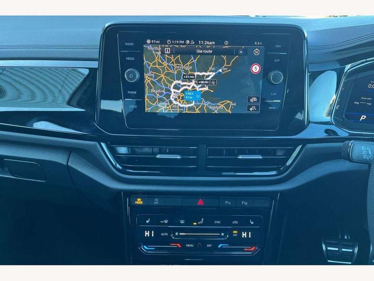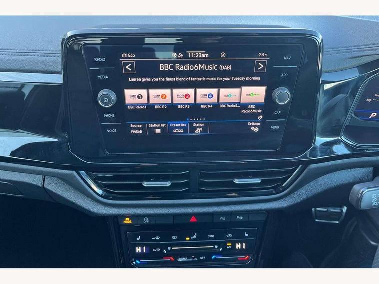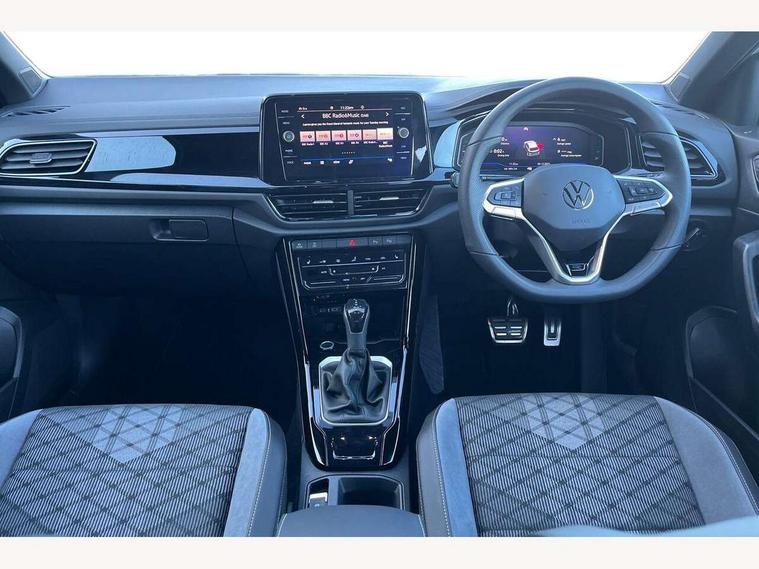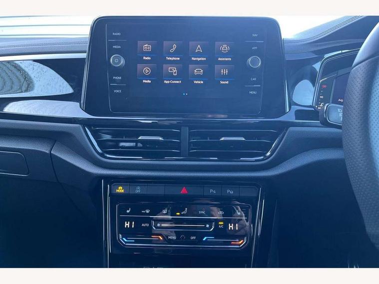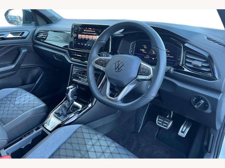 10.25" Digital cockpit pro, Advanced driver attention and drowsiness monitor, Emergency call service, Lane keeping system Lane Assist, Mobile phone interface, Modified key software - reduce switch off time for key status change to Long no motion, Online services, Park assist including front and rear parking sensors, Power assisted speed sensitive steering, Service interval indicator, Tailgate/trunk lid release from outside, Think blue trainer driver tips and journey analysis, Warning sound and light for front seatbelts unfastened, Wireless app connect, Battery regeneration during braking, Rear shock absorption chassis with increased ride height, Start/stop function with battery regeneration, DAB Digital radio, Diversity antenna for FM reception, Front and rear 6 speakers, Music playback - MP3, WMA and AAC files, Premium USB cable in choice of either Apple or Android smartphone compatibility, SD card slot, Simultaneous pairing of 2 compatible mobile devices, Title and cover art display, We Connect and We Connect Plus functionality, Auto dimming interior rear view mirror, Automatic hazard lights activation under emergency braking, Automatic headlight control with LED separate daytime running lights with coming/leaving home function, Dynamic cornering light, Electrically adjustable and heated door mirrors, Extended roof spoiler, Exterior mirrors aspherical on driver side, convex on front passenger side, External USB type C socket and charging sockets, Front windscreen wiper with intermittent wipe and 4 position delay, Heated rear window, Illuminated front grille, IQ LED matrix headlights, LED 3rd brake light, LED rear number plate lights, LED rear tail lights with dynamic turn signal, Light mode for poor weather, rain, fog or snow, Power windows with comfort operation and circuit breaker, R-Line design body coloured bumpers, Rain sensor, Rear exhaust tailpipe, Rear fog light on one side and reversing lights on both sides, Rear side wing doors, Rear wash/wipe with intermittent wipe setting, Remote electrically foldable door mirrors, puddle lights and reverse activated passenger's door mirror, 12V power socket in centre console, 3 rear head restraints, 3 seat bench in 2nd row, 4 load lashing points in luggage compartment, Air care climatronic air conditoning system with active combination filter and 2-zone temperature control, Artvelours cloth upholstery, Black roof lining, Chrome plated radiator grille inserts, air vent surrounds and light switch surrounds, Door and side trim panel with leatherette insert, Drawer under drivers seat, Driver seat height adjust, Driver's seat lumbar support, Front + rear carpet mats, Front centre armrest, Front comfort sports seats, Front cupholders x 2, Front footwell illumination, Front reading light, Front scuff plates with R Line logo, Front seat back storage pockets, Glove compartment door with light, Instrument lighting, white adjustable panel illumination, Interior ambient lighting and surround lighting, Interior light delay, Isofix child seat preparation, Leather gearshift handle, Leather wrapped multifunction steering wheel with paddle shift, Load-through provision with cup holder when folded down ('Unsplit rear seat bench, split folding backrest, with centre armrest), Luggage compartment lighting, Non-folding front passenger seat backrest, Passenger seat height adjuster, Passenger seat lumbar support, Single front passenger seat, Stainless steel pedals, Storage compartment in left and right luggage area, Storage compartment in rear doors, Storage compartments in driver and front passenger doors, Sunvisors with illuminated vanity mirrors, Variable boot floor, height adjustable and removable, Winter pack without heated windscreen washer jets - T-Roc, 3 point height adj front seatbelts + pretensioners, 3 point seatbelts in outer rear with ECE label, ABS, Child locks on rear doors, City emergency braking and pedestrian monitoring, Driver and front passenger airbag with front passenger airbag deactivation, Driver and front passenger safety-optimised head restraints, Drivers seatbelt reminder, Electronic parking brake, Electronic Stability Control (ESC) inc EDL (Electronic Differential Lock) and ASR (Traction Control), Front and rear passengers curtain airbag system including front side airbags, Front disc brakes, Hill start assist, Predictive pedestrian protection, Rear disc brakes, Two tone horn, Tyre pressure loss indicator, Volkswagen roadside assistance, Tool kit, Trims for alloy wheels, Tyre mobility kit including compressor and sealing foam,