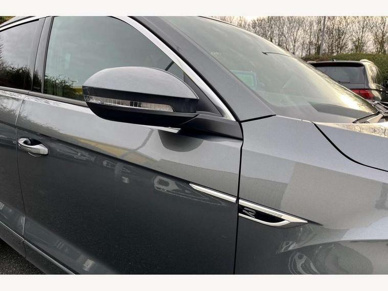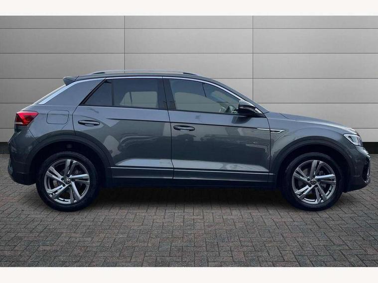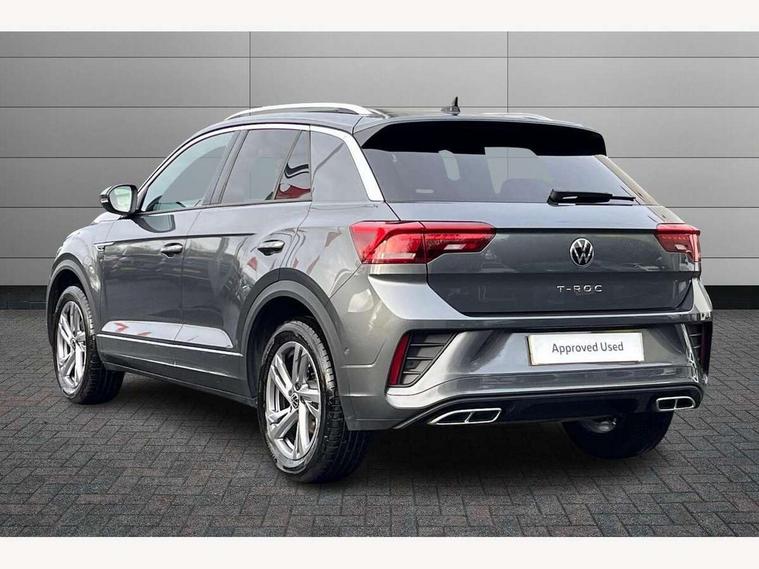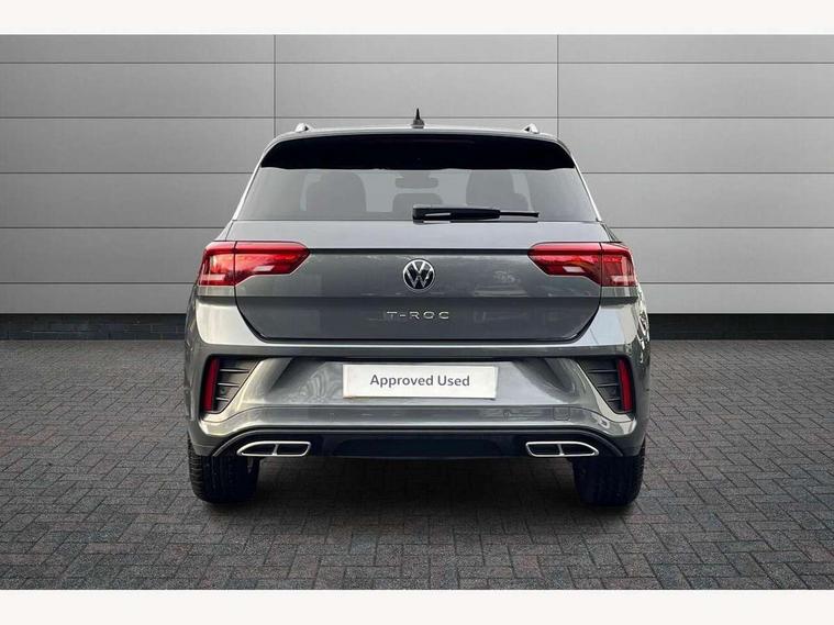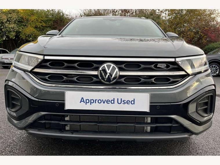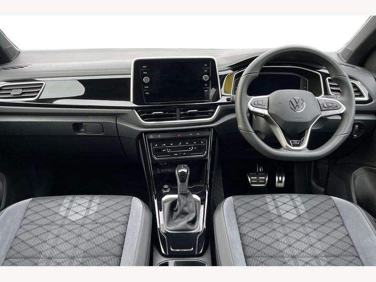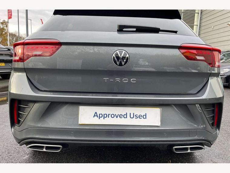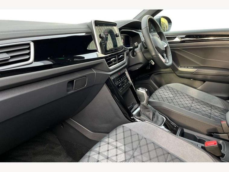 10.25" Digital cockpit pro, Advanced driver attention and drowsiness monitor, Emergency call service, Lane keeping system Lane Assist, Mobile phone interface, Modified key software - reduce switch off time for key status change to Long no motion, Online services, Park assist including front and rear parking sensors, Service interval indicator, Tailgate/trunk lid release from outside, Think blue trainer driver tips and journey analysis, Warning sound and light for front seatbelts unfastened, Wireless app connect, Battery regeneration during braking, Start/stop function with battery regeneration, DAB Digital radio, Diversity antenna for FM reception, Front and rear 6 speakers, Music playback - MP3, WMA and AAC files, Premium USB cable in choice of either Apple or Android smartphone compatibility, SD card slot, Simultaneous pairing of 2 compatible mobile devices, Title and cover art display, We Connect and We Connect Plus functionality, Auto dimming interior rear view mirror, Automatic hazard lights activation under emergency braking, Automatic headlight control with LED separate daytime running lights with coming/leaving home function, Body coloured exterior mirror housings and door handles, Electrically adjustable and heated door mirrors, Extended roof spoiler, Exterior mirrors aspherical on driver side, convex on front passenger side, External USB type C socket and charging sockets, Front windscreen wiper with intermittent wipe and 4 position delay, Heated rear window, LED 3rd brake light, LED rear combination lamps, LED rear number plate lights, Power windows with comfort operation and circuit breaker, Privacy glass for rear side windows and rear window, R-Line design body coloured bumpers, Rain sensor, Rear exhaust tailpipe, Rear fog light on one side and reversing lights on both sides, Rear side wing doors, Rear wash/wipe with intermittent wipe setting, Remote electrically foldable door mirrors, puddle lights and reverse activated passenger's door mirror, 12V power socket in centre console, 3 rear head restraints, 3 seat bench in 2nd row, 4 load lashing points in luggage compartment, Air care climatronic air conditoning system with active combination filter and 2-zone temperature control, Black roof lining, Chrome plated decorative trims, Chrome plated radiator grille inserts, air vent surrounds and light switch surrounds, Door and side trim panel with leatherette insert, Front + rear carpet mats, Front centre armrest, Front cupholders x 2, Front footwell illumination, Front reading light, Front scuff plates with R Line logo, Front seat back storage pockets, Glove compartment door with light, Instrument lighting, white adjustable panel illumination, Interior ambient lighting and surround lighting, Interior light delay, Isofix child seat preparation, Leather gearshift handle, Load-through provision with cup holder when folded down ('Unsplit rear seat bench, split folding backrest, with centre armrest), Luggage compartment lighting, Single front passenger seat, Stainless steel pedals, Storage compartment in left and right luggage area, Storage compartment in rear doors, Storage compartments in driver and front passenger doors, Sunvisors with illuminated vanity mirrors, Variable boot floor, height adjustable and removable, Driver assistance pack without proactive passenger protection - T-Roc, 3 point height adj front seatbelts + pretensioners, 3 point seatbelts in outer rear with ECE label, ABS, Child locks on rear doors, City emergency braking and pedestrian monitoring, Driver and front passenger airbag with front passenger airbag deactivation, Driver and front passenger safety-optimised head restraints, Drivers seatbelt reminder, Electronic parking brake, Electronic Stability Control (ESC) inc EDL (Electronic Differential Lock) and ASR (Traction Control), Front and rear passengers curtain airbag system including front side airbags, Hill start assist, Predictive pedestrian protection, Rear disc brakes, Two tone horn, Tyre pressure loss indicator, Volkswagen roadside assistance, Piano black decorative inserts in dashboard and front door trim panels, Trims for alloy wheels,