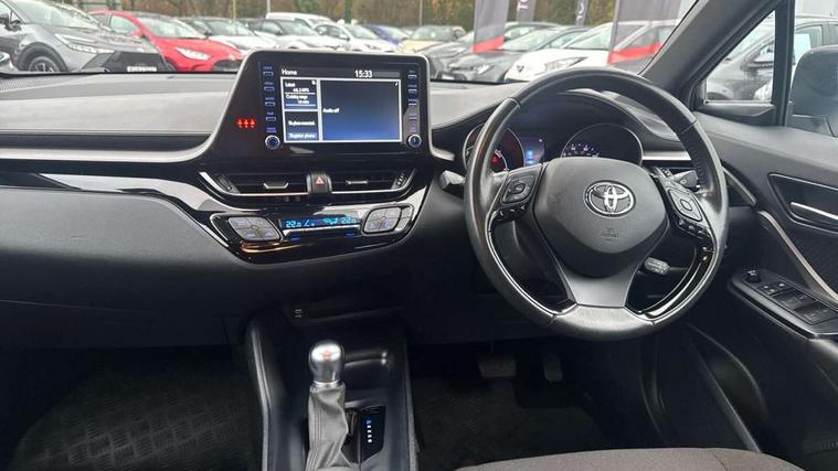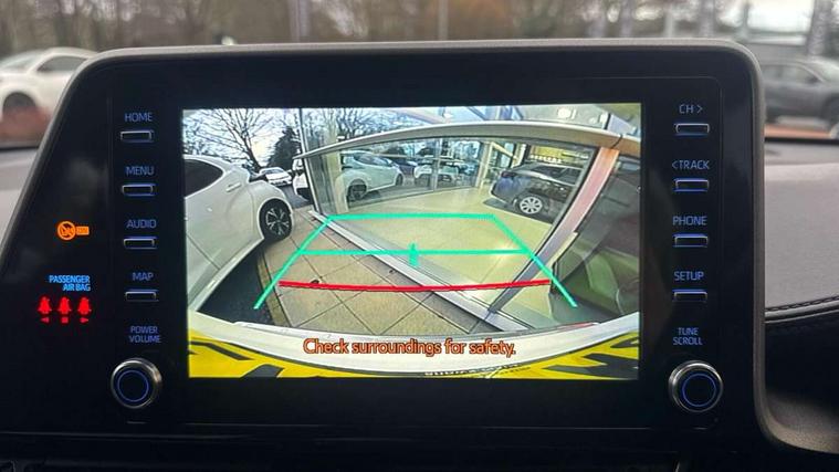 4.2" coloured TFT screen for multi-information display, Adaptive cruise control, Bluetooth connectivity, Electric power steering, Hybrid system indicator, Lane departure alert with steering control, Remote boot door release in cabin, Remote boot door release in key, Reversing camera, Road sign assist - RSA, Trip computer, Voice recognition, Vehicle Stability Control (VSC), 6 speakers, AM/FM radio, DAB Radio (Digital Audio Broadcasting), Toyota touch 2 multimedia system with 8" display, USB connector, Wi-fi connectivity, Anti-jam protection on power windows, Auto high beam, Auto up and down function on all power windows, Automatic headlights, Automatic headlights cut-off, Black and body coloured rear bumper, Black upper front grille, Body colour door handles, Body colour door mirrors, Body colour front spoiler lip, Body coloured front bumper, Boot door release with push button, Electric heated door mirrors, Follow me home headlights, Front and rear power windows, Front fog lights, Honeycomb lower front grille, LED daytime running lights, LED front light guide, LED High mounted stop light, LED rear brake lights, LED rear combination lights, Manual headlight levelling, Manually retractable door mirrors, Noise reduction layer on front windows and windscreen, Power adjustable door mirrors, Rear spoiler, Rear tailgate, Rear window defogger, Rear window wiper, Reflective LED headlights, Shark fin antenna, UV-filter on driver and passenger windows, UV-filter on rear windows, 12v power outlet - front, 3 rear headrests, 3 spoke leather steering wheel, 60/40 split folding rear seat, Adjustable rear headrests, Adjustable speed limiter switch on steering wheel, Assist grips front and centre pillar, Audio and telephone switches on steering wheel, Black front door assist grips, Boot light, Chrome interior door handles, Cloth upholstery, Driver and front passenger personal light, Driver and front passenger Whiplash Injury Lessening seats, Dual zone automatic air conditioning, Floor mats, Front cupholders, Front head restraints, Front sports seats, Glovebox with internal light, Hard tonneau cover, Hooks for luggage holding net, Humidifying Nanoe air purifier, Illuminated entry system, Isofix attachments on rear seats, Leather gearshift, Light on driver sun visor, Light on passenger sun visor, Manual telescopic steering wheel, Manual tilt steering wheel, Manually adjustable lumbar support on driver seat, Manually height adjustable driver seat, Manually height adjustable front passenger seat, Manually reclining driver seat, Manually reclining front passenger seat, Manually sliding driver seat, Manually sliding front passenger seat, Microphone on front personal light, Mirror on driver sun visor, Mirror on passenger sun visor, Multimedia switches on steering wheel, Pollen filter, Shopping bag hooks, Slow opening on lower glovebox, Voice recognition switch on steering wheel, 16 Disk front wheel brake, 3x3 point rear seatbelts, ABS+EBD+Brake assist, Electronic parking brake, Front and rear seatbelt reminder, Front passenger airbag on/off switch, Hill start assist control (HAC), Pre collision system with pedestrian detection, Pre-tensioners and force limiters, Rear door child safety locks, SRS Airbags - Driver + Front passenger, front side, front and rear curtain and driver's knee airbags, Toyota safety sense, Tyre pressure monitoring system, Acoustic vehicle alert system (AVAS), Glass-breaking alarm sensors, Immobiliser, Intrusion alarm, Intrusion sensor, Motion sensor alarm, Power door locks, Power passenger window lock, Remote central locking, Black lower dashboard, Black upper dashboard, Grey deco line on upper dashboard, Matte black centre console, Tyre repair kit,