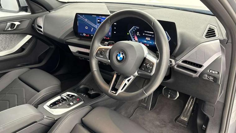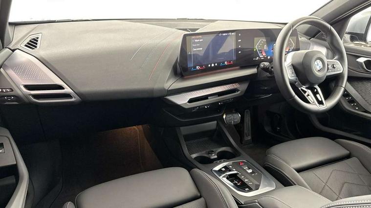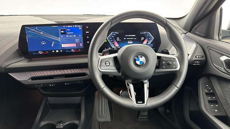 Active guard plus, Attentiveness assist, Bluetooth / WiFi interface for wireless connection of mobile terminal devices and audio streaming, BMW ConnectedDrive online services, BMW Live cockpit plus, BMW Teleservices, Check Control warning system for monitoring of lights and door/luggage compartment open warning, Eco pro mode, Electric power steering with Servotronic steering optimised at all speed ranges, Evasion assistant, Flat airvents in instrument panel with adjustable slats, Front and rear parking sensors, Front axle single joint with specific axle kinematics to minimise drive influences on steering + provide increased rigidity agile driving behaviour, Gearshift time display in manual mode, Integrated owners handbook, Left turn warning with brake function, My modes (Personal / Efficient / Sport), Oil sensor for level and grade, On board computer, Optimum shift indicator, Park assist including reversing assistant, lateral parking aid and reversing assist camera, Personal e-SIM, Personal Profile, Pull away assistant, Rigidly mounted rear subframe - Multi link construction with separate spring / damper configuration and excellent driving characteristics, Speed limit Info including no-overtaking indicator, Speed limiter, 49 litre fuel tank, Aluminium lightweight construction, Anti roll bar front and rear, Balancer shaft, Double VANOS twin scroll turbocharging system, Drive Performance Control, Electronic differential lock, Electronic selector lever, High precision injection, M Adaptive suspension, Petrol Particulate Filter, Steptronic transmission with double clutch, Twin tube gas filled shock absorbers with degressive characteristic curve, VALVETRONIC engine management, DAB Digital radio, Auto dimming rear view mirror, Automatic windscreen wipers and automatic headlight, Body colour door handles, Body colour mirror caps, Body colour roof trims, Chrome 'M' logo side designation, Chrome exhaust twin tailpipes round 90mm in left, Chrome kidney grille frame with Satin Aluminium struts, Direction indicator side lights in exterior mirrors, Electrically adjustable exterior mirror with mirror adjustment switch on drivers armrest and aspheric on driver side, convex on passenger side, Exterior M sport design elements, Fading support, Folding side mirrors with auto dimming/folding wing mirrors with auto dimming, Follow me home headlights, Front and rear bumper system with replaceable deformation elements, Front and rear electric windows with open and close fingertip control, anti trap facility and comfort closing, Front bumper panel with M specific design in vehicle colour with inserts in black high gloss, Front door sill finishers in black plastic with M designation in metallic look, Green tinted heat protection glazing, Heated rear window, High gloss black exterior mirrors, High gloss shadowline window frame, Recess cover mirror frames and B/C pillar embelisher trim, High level third brake light, Integrated front windscreen with washer jets, LED daytime running lights, LED eyebrow turn indicators, LED front fog lights, LED Headlights, Lightweight engineering, M identification on the sides, Matt black air guide grilles, Matt black wheel arch trim, Model badge on tailgate right, Nearside reverse light in rear light cluster, Preparation for high beam assistant, Rain sensor, Rear bumper panel with M-specific design in vehicle colour with inserts in black high gloss, Rear fog lights, Rear side wing doors, Rear window wiper, Shark fin antenna, Side sill covers with M specific design in body colour, Trailer stabilisation logic, Visible VIN plate, Welcome lighting, 12V power socket in front centre console with blanking plug, 3 rear seat head restraints, 3 seat bench in 2nd row, 3 spoke sports leather steering wheel with black leather and stitching, pearl chrome decorative finish, specific M Badge, Anthracite front and rear floor mats, Anthracite headlining, Black boot net with lashing eyes, Cargo function on 2nd seat row, Child seat ISOFIX attachment for two outer rear seats and front passenger seat with anchorage points, Conditioned based service, Driver and front passenger backrest net on rear, Driver and front passenger seat heating, Driver side folding compartment in instrument panel, Folding rear clothes hook, Footrest and pedals in black plastic, Four grab handles integrated in roof lining, Front and rear door pockets with bottle holders, Front and rear side armrest integrated into door trim, Front armrest with storage compartment, Gearshift paddles on steering wheel, Glove compartment, Height adjustable front head restraints, Luggage compartment for bag hooks on left and right, foldable luggage compartment liner and four lashing eyelets, Manual adjust steering wheel, Multi-function controls for steering wheel, Rear seat backrest with manual 60:40 split folding with 3 top tether clips integrated on rear of seat panels, Single front passenger seat, Storage compartment in centre console, Storage compartment in luggage compartment, Stowage of the parcel shelf in luggage compartment trim, Sun visors with vanity mirrors and insert tab, Two front centre console cupholders, Type C two USB ports in rear centre console, Upper retaining strap integrated into backrest rear panels, Connected pack professional - 1 Series, Interior lights pack - 1 Series, M Sport exterior styling aerodynamics pack - 1 Series, 2 tone horn, 3 point seatbelts on all seats, front pyrotechnic belt tensioners, stopper and belt force limiters, rear coded belt buckles, Airbags - Front driver/passenger, front and rear curtain head protection, front side, manual deactivation of front passenger airbag, Anti lock braking system (ABS) with brake assist, BMW emergency call, Brake drying, Braking readiness, Child proof locking system in rear door, Comfort modes, Cornering brake control, Crash sensor activating of airbags, Unlocking doors, hazard warning lights, interior light, safety battery terminal, Driver and front passenger seat belt sec