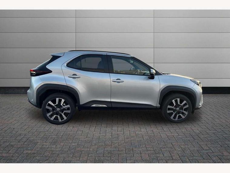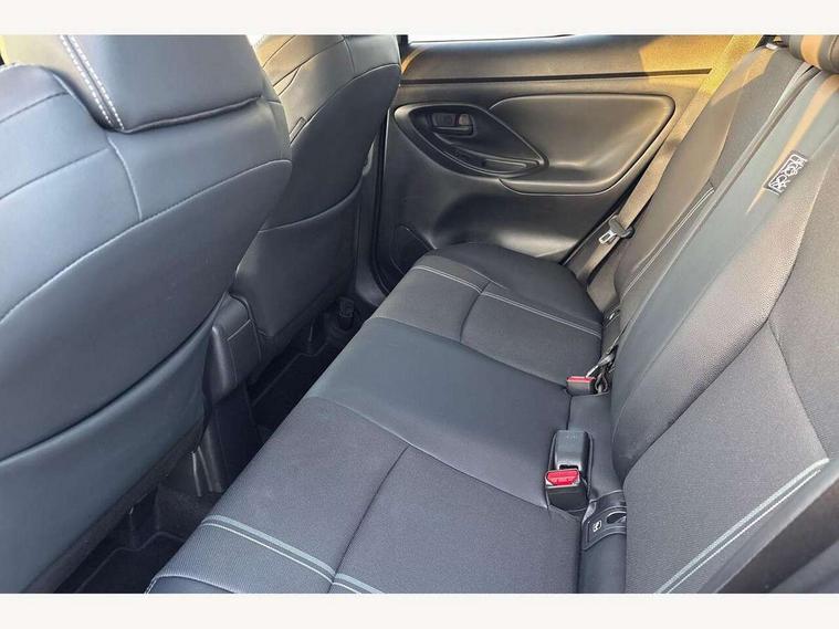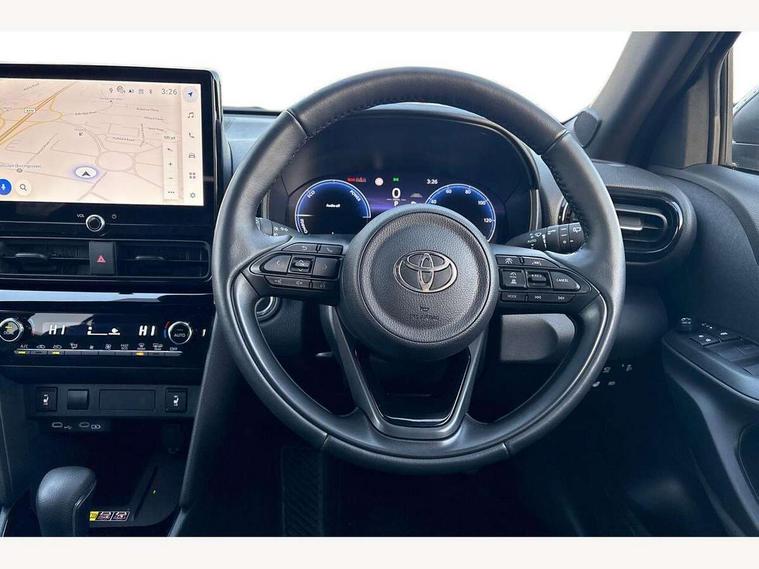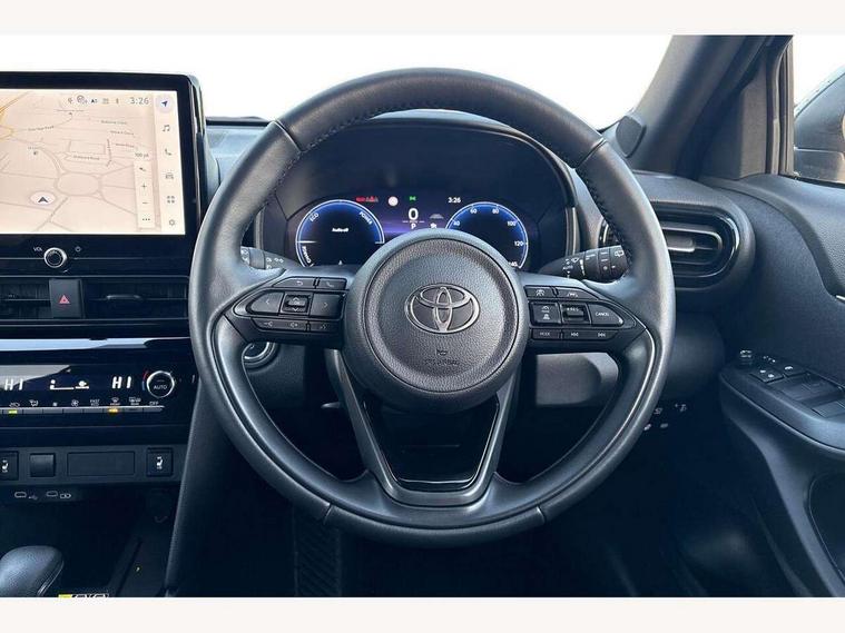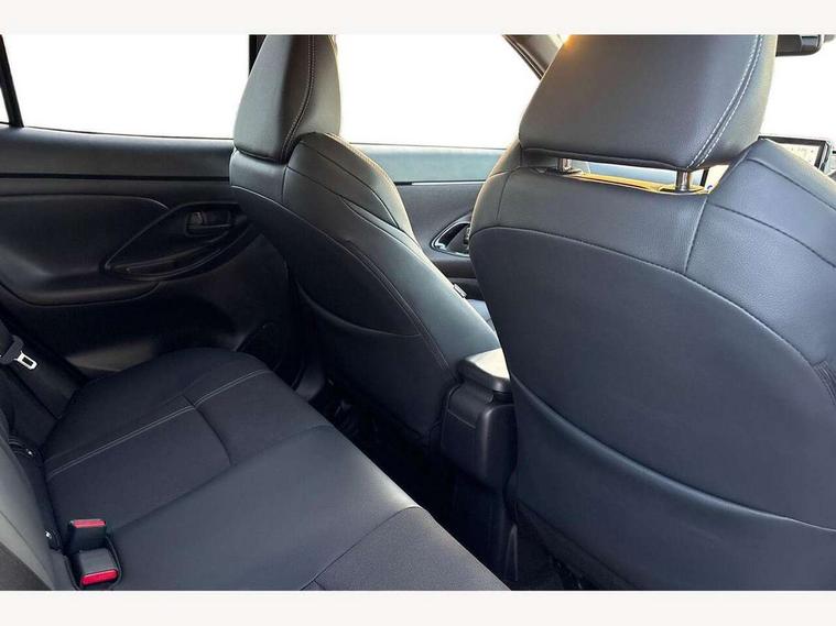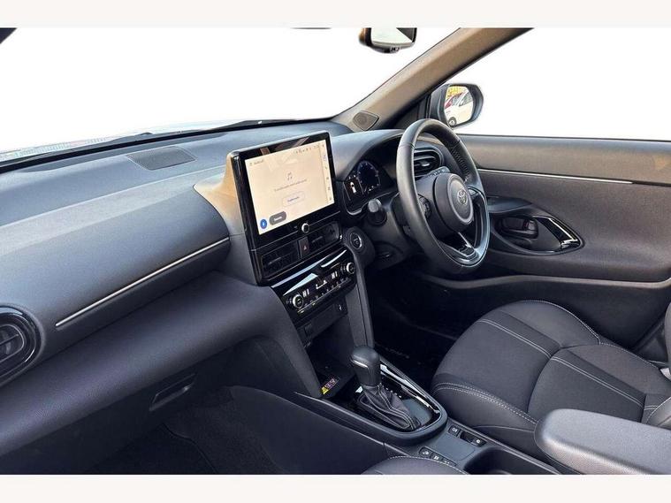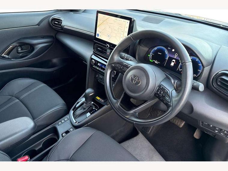 10.5" Multimedia display screen, 10.5" Toyota smart connect+ with navi multimedia system with wireless Smartphone integration incl Apple CarPlay, 360 degree panoramic view monitor, 7" Multi information display screen, Adaptive cruise control, multi info switches on steering wheel, Adjustable speed limiter, Advanced parking assist, Blind spot monitoring, Bluetooth connectivity, Color multi-information display, Digital speedometer, Digital tachometer, Drive mode selector, Driver attention alert system, Dynamic guide lines on reversing camera, eCall emergency system, Electric power steering, Emergency driving stop system, Full range intelligent adaptive cruise control, Hybrid system indicator, Intelligent front and rear parking sensors with clearance sonar and automatic braking, Intersection turn assist, Key reminder warning, Lane change assist, Lane trace assist, My T Connected services, Power tailgate, Pre-collision system enhanced with emergency steering assist, Rear cross traffic alert, Remote boot door release in cabin, Road sign assist - RSA, Safe exit assist, Tailgate, Telephone switch on steering wheel, Wireless Mobile Phone Charger, Steering assisted vehicle stability control, 6 speakers, DAB Digital radio, Front USB Type-C connector, Front USB-C device charger, Acoustic windscreen glass, Anti-jam protection on power windows, Auto dimming rear view mirror, Auto high beam [AHB] with on/off switch, Auto intermittent windscreen wipers, Automatic headlights, Automatic headlights cut-off, Automatically retractable door mirrors, Black door moulding, Black lower front grille, Black protection moulding on side doors, Black roof rails, Black wheel arch mouldings, Body colour door handles, Body colour front bumper, Body colour rear bumper, Electric adjustable heated door mirrors, Follow me home headlights, Front and rear electric windows with auto up/down function, Gloss black upper front grille, Headlight cut off reminder, Indicators integrated on door mirrors, Intermittent rear wiper, Kick activated power back door, LED 3rd brake light, LED daytime running lights guide, LED front fog lights, LED front light guide, LED Indicators, LED projector headlights, LED rear lights with sequential indicators, Manual headlight levelling, Meshed upper front grille, Noise reduction layer on windscreen, Pre wiring for towing hook, Privacy glass, Rain sensor, Rear roof spoiler, Rear side wing doors, Rear window defogger, Shark fin antenna, 12v power outlet - front, 12V power point in boot, 2x Rear coat hooks, 3 seat bench in 2nd row, 3 spoke leather steering wheel, 40/60 split deckboard, 40:20:40 split folding rear bench seat, Adjustable rear headrests, Adjustable speed limiter switch on steering wheel, Boot light, Central armrest, Driver and front passenger personal lights, Driver and front passenger Whiplash injury Lesseing seats, Driver and passenger seatback pockets, Dual zone automatic air conditioning, Fabric door trim, Front console box, Front cup holders, Front door pockets, Front head restraints, Front sport seats, Front/rear assist grips, Gear shift indicator, Grey roof lining, Heated driver and passenger seats, Heated steering wheel, Height adjustable driver's seat, Height adjustable front passenger seat, Hooks for luggage holding belts, ISOFIX child restraint system, Lane departure alert switch on steering control, Leather gearshift, LED centre room light, Light on driver and passenger sun visor, Manual telescopic and tilting steering wheel, Mirror on driver and passenger sun visor, Nanoe-X air purifier, Partial synthetic leather upholstery, Pollen air filter, Power adjustable lumbar support on driver seat, Rear cup holders, Rear door pockets, Rear head restraints, Remote air-conditioning system, Single compartment glovebox, Single front passenger seat, Soft tonneau cover, Storage box under boot floor, Voice recognition switch on steering wheel, White ambient lighting in centre console, White ambient lighting in footwell, White ambient lighting on front doors, Yaris cross floor mats, Tech pack - Yaris Cross, 3x3 point rear seat belts, ABS+EBD+Brake assist, Downhill Assist Control (DAC), Driver and passenger central airbags, Driver and passenger front airbags, Driver and passenger side airbags, Electronic parking brake, Emergency brake light system (EBS), Front seat belt reminder, Hill start assist control (HAC), Passenger airbag on/off switch, Pre-collision system with pedestrian and cyclist detection, Rear door child safety locks, Rear passenger side airbags, Rear seat belt reminder, Traction control, Tyre pressure warning system, Immobiliser, Intrusion alarm, Keyless smart entry with push button start, Power door locks, Power passenger window lock, Remote door lock, Gloss black side air vent surrounds, Tyre repair kit,