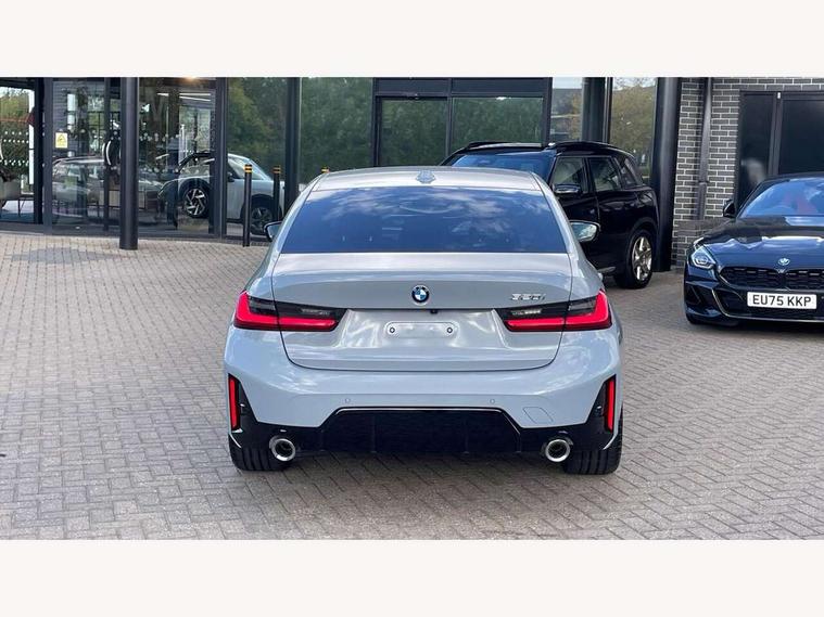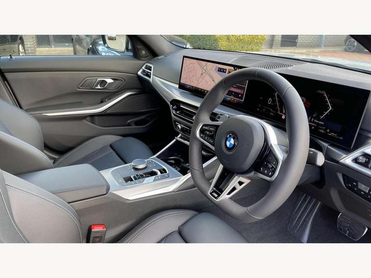 Active guard plus, Attentiveness assist, Automatic Start/stop button, Bluetooth Wi-Fi interface, BMW iDrive, BMW Teleservices, ConnectedDrive Services - last state call, Intelligent voice assist, 2 USB, 4G LTE connect, Live cockpit plus with Navigation + 12.3" instrument display + 14.9" display, Intelligent voice assist, 2 USB, 4G LTE connect, Oil sensor for level and grade, Personal e-SIM, Shifting point display, Variable sport steering, Double joint spring strut front axle, Fuel tank breather system, Steptronic Sport automatic transmission with steering wheel mounted gearshift paddles launch control and xtreme drive lever control, DAB tuner, 3rd brake light, Auto dimming rear view mirror, Automatic headlight beam throw control with load dependent regulating reaction, dynamic compensation of braking dive and acceleration squat, Bi-LED Low and high beam headlights, BMW emblem, engine compartment lid and tailgate, Body colour roof fin, Door sill strips, Electric windows - front and rear, with open/close fingertip control, anti-trap facility and comfort closing, Fading support, Follow me home headlight function, Front and rear bumper system with replaceable deformation elements, Front apron plastic in body colour, Fuel filler flap - right rear in body colour, Heat protection glazing on front windows and windscreen, High gloss chrome kidney frame with high gloss black kidney struts, LED daytime running lights, LED rear lights, LED turn indicator, Licence plate panel integrated into front bumper and tailgate, M high gloss shadow line exterior trim, Matt black B-pillar finsher, Matt black window recess cover, One piece front bumper cover including towing eye cover in body colour, Rain sensor with automatic headlight activation, Rear boot, Rear side wing doors, Reversing lights, Side frame decorative moulding black matt, Trailer stabilisation logic, Visible exhaust tailpipe finisher, Welcome lights in interior and door handle area, Windscreen washer jets, 12V power socket in front storage compartment, 2 front cupholder in centre console with clamping elements and matt black inlay, 3 seat bench in 2nd row, 3 spoke M Sport multifunction flat bottom leather steering wheel, 3 zone automatic air conditioning, 40:20:40 split folding rear seat with loading system, Anthracite headlining, Armrest integrated in front and rear door trim + front centre console armrest, BMW ID, Cruise control operation in steering wheel, Driving experience mode switch, Folding rear centre armrest with 2 cupholders, Front and rear headrests, Front and rear velour floor mats, Front reading light, Heated front seats, Height adjustable mechanically and infinitely variable steering column, Illuminated armrest storage compartment, Illuminated glove compartment, Illuminated luggage compartment, Lashing eyelets in luggage compartment, Single front passenger seat, Sunvisors with illuminated vanity mirrors and ticket pocket, Through load system, Toolkit located in luggage compartment, Connected pack professional - 3 Series Saloon/Touring, Interior and exterior mirror pack - 3 Series Touring/Saloon, M sport exterior styling pack - 3 Series Saloon/Touring, Parking assistant pack - 3 Series, 3x3 point rear seatbelts, ABS, Automatic Stability Control (ASC), BMW emergency call, Child locks on rear doors, Cornering brake control, Crash sensor activating of airbags, Unlocking doors, hazard warning lights, interior light, safety battery terminal, Drive-off assistant, Driver and front passenger with seat occupancy detection for driver's and passenger side, Driver and passenger side airbags, body protection at side and airbags deploy from seat backrests, Dry braking, DSC - Dynamic Stability Control, Dynamic brake control, Dynamic Traction Control - DTC, Electric parking brake including automatic hold function and automatic release of the parking brake when driving off, Electronic differential lock control (EDLC), Front airbag deactivation, Front airbags for driver and front passenger, Head airbags in 1st and 2nd row, head protection at side, curtain airbags open from headliner above 1st and 2nd row, Plastic fuel tank, Side impact protection, Tyre pressure sensors, Ventilated front and rear disc brakes, Warning triangle and first aid kit, Alarm system, Centre lock switch, Closing system with central locking, Electronic vehicle immobiliser, Locking wheel bolts, Tyre repair kit,