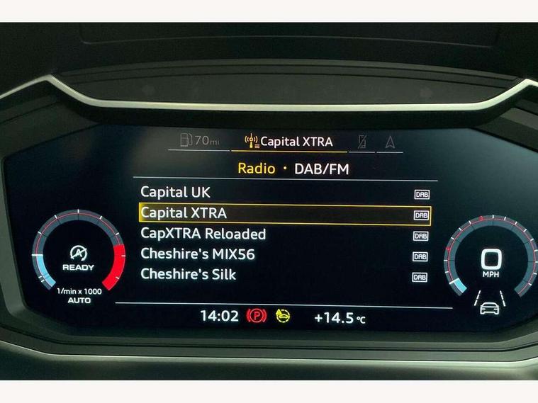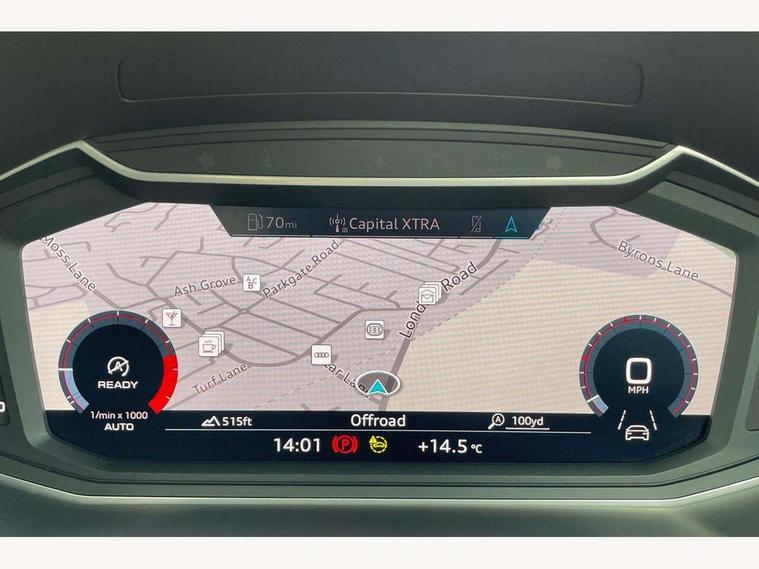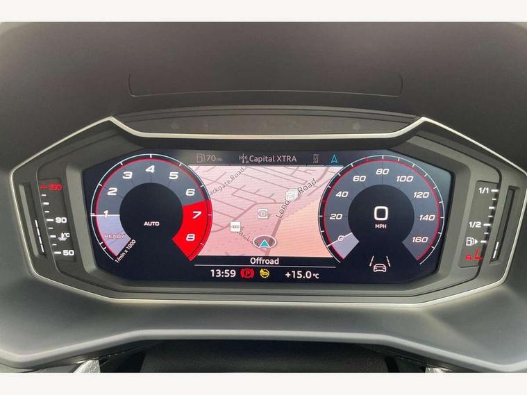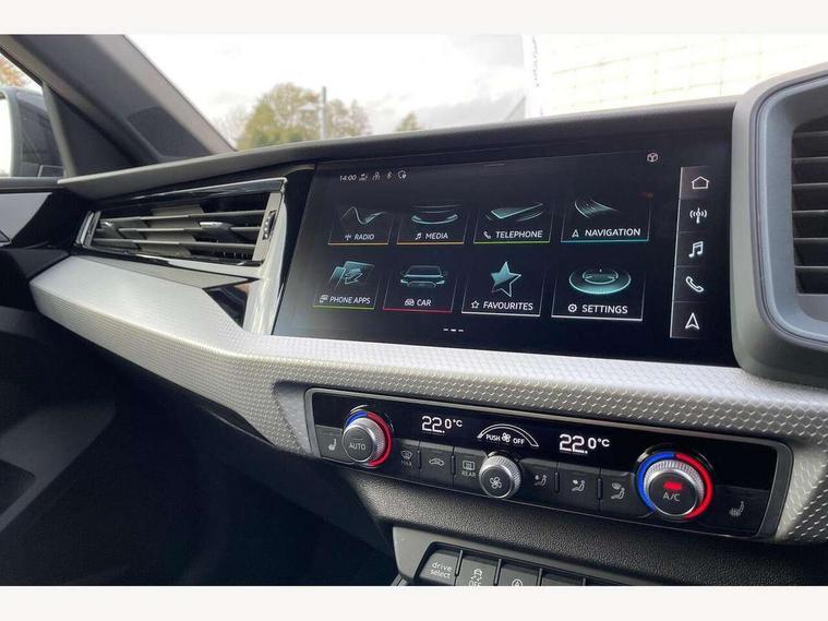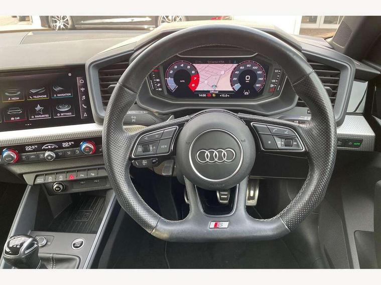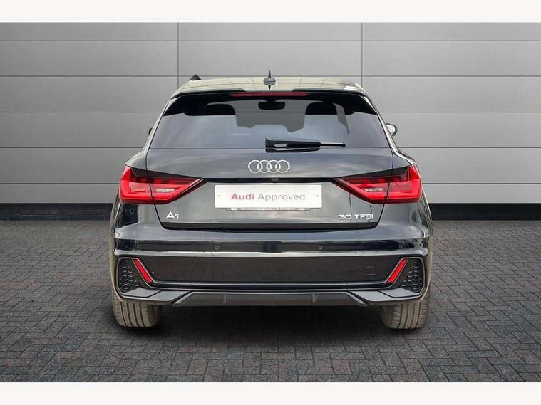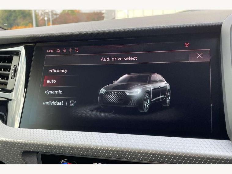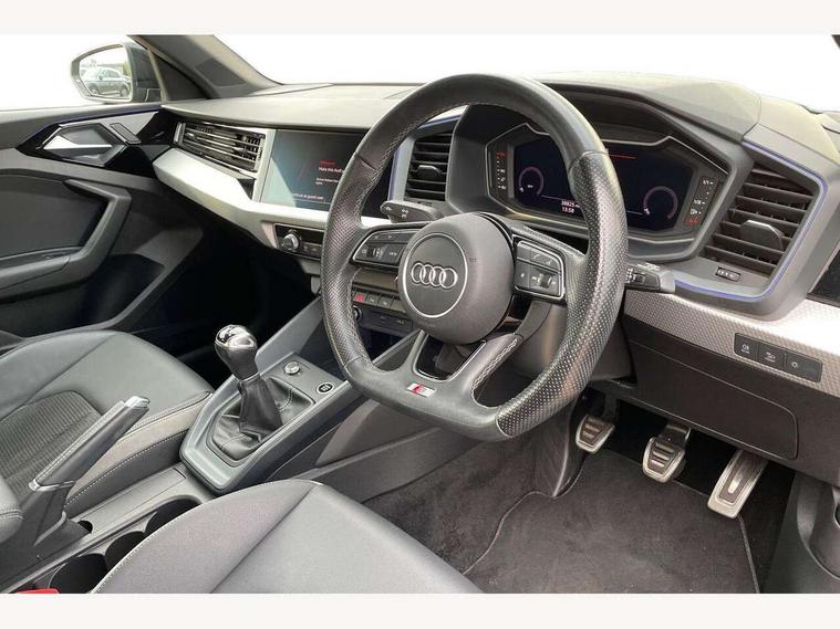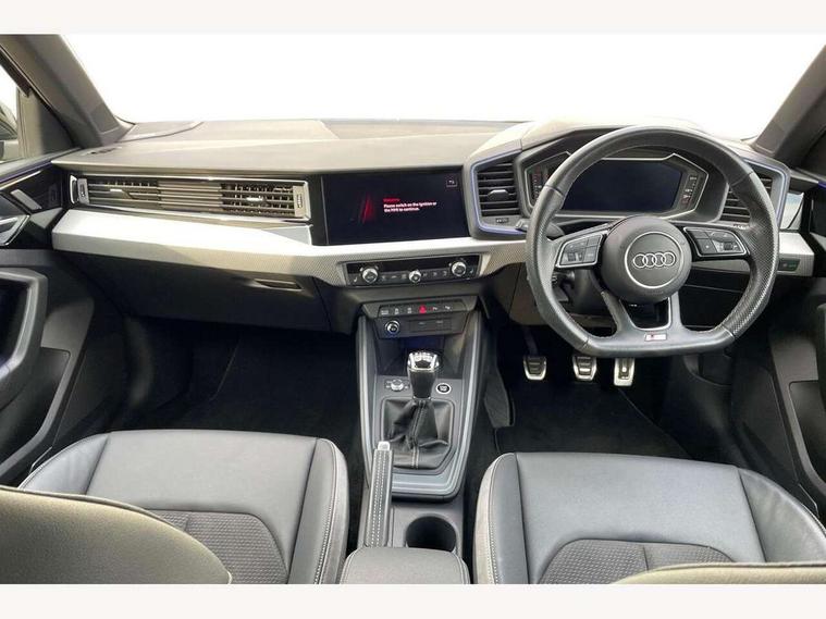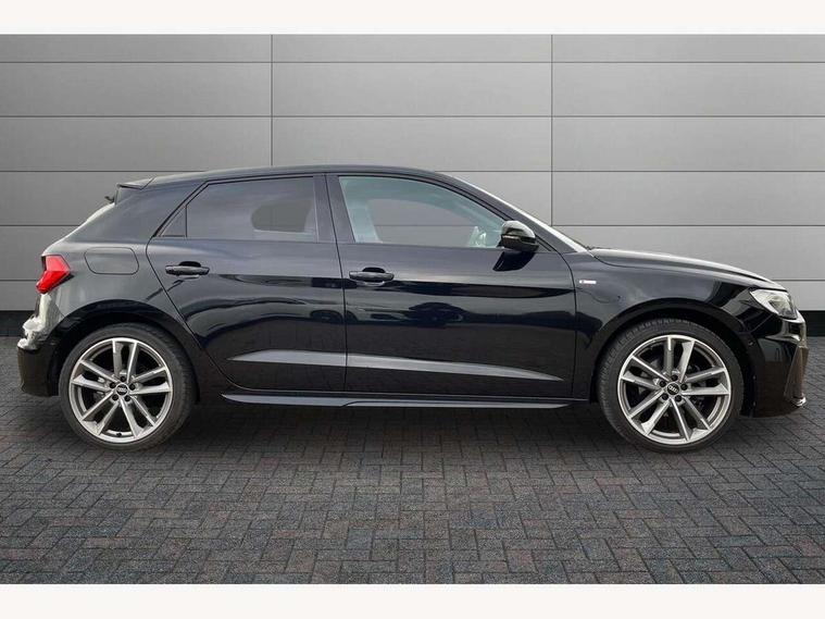 Adaptive speed assist, Audi connect safety emergency and service including E-call, Audi drive select - power steering assistance + engine, Audi phone box with wireless charging, Automatic start/stop system, Bluetooth interface, Cruise control, Driver's information system, Electromechanical power steering, Lane departure warning system, Service interval indicator, Speed limiter, Washer fluid level indicator, Sports suspension, 1 x SDXC card reader, 2 x USB type C connection points, DAB Digital radio, Auto dimming rear view mirror, Body coloured door mirrors, Door sills with aluminium inlays and S Line logo, Electric front and rear windows, Electrically adjustable, heated, folding door mirrors with integrated LED side indicator, Front side air inlets in grained matt black and C frame in titanium black, Heat insulating glass windscreen and side windows, Heated rear windscreen, LED headlights with LED rear lights + dynamic rear indicators + headlight adjustment and high beam, turning light + LED daytime running lights, Radiator grille and rear diffuser in matt titanium black, Radiator protective grille frame in matt aluminium silver, Rain and light sensors, Rear fog lights, Rear wiper, S line badges on front wings, Side front spoiler lips in grained matt black, 12V socket in centre console with two cup holders, 3 rear seats with headrests, 3 spoke flat bottomed multi-function plus leather steering wheel with S badging, grips in preforated leather and contrast stitching, 40:60 Split folding rear seat or folded fully, Black cloth headlining, Driver and passenger seat with manual height adjust with forward and backwards adjustment, Frequency alcantara/leatherette upholstery with contrast stitching in fine silver and S embossed logo + front sports seats, Front and rear black floor mats with contrast stitching in fine silver, Front head restraints, Height and reach adjustable steering wheel, ISOFIX child seat mounting for front passenger and outer rear seats including top tether attachment point of outer rear seats, Leather gear knob with aluminium trim, Luggage compartment light with front and rear reading lights, Manually adjustable lumbar support in front seats, Stainless steel pedals, Black exterior styling pack - A1 Sportback Vorsprung, Comfort and sound pack - A1 Sportback, Luggage compartment pack - A1, Multicoloured LED Ambient lighting pack - A1 Sportback, Plus pack - A1 Sportback, Technology pack - A1 Sportback, 3x3 point rear seatbelts, Audi pre-sense front with pedestrain and cyclist recognition, Brake assist function, Driver and front passenger airbag with front side and head airbags, Electronic Stability Control including ABS, EBD, ASR and EDL, Front and rear seatbelt reminder, Front passenger airbag deactivation switch, Hill hold assist, Seatbelt height adjustment for front seats, Seatbelt monitoring, Tyre pressure warning light, Warning triangle and first aid kit, Advanced key, Anti theft alarm, Anti theft wheel bolts and loose wheel warning, Immobiliser, Remote central locking with 2 foldaway keys, Aluminium trim for control switches, air vents and digital instrument cluster, Silver grey inlays polygon structure in diamond paint finish, Structured grey accent areas including air vents, door handle recesses and centre console in quartz paint finish, 18" 5 double arm design alloy wheels in matt titanium look with diamond cut finish,