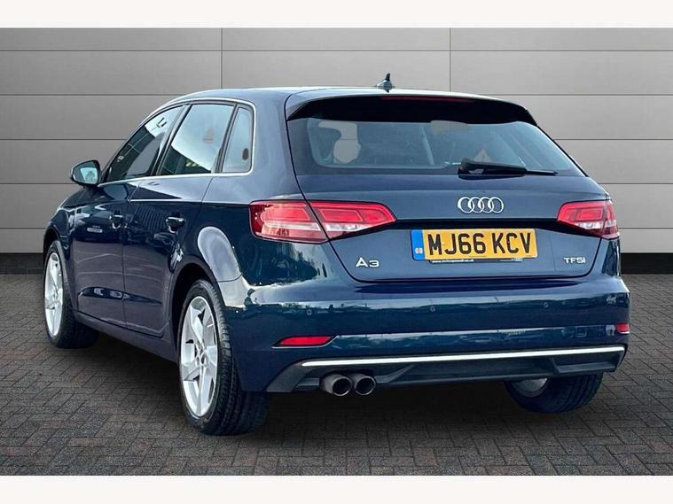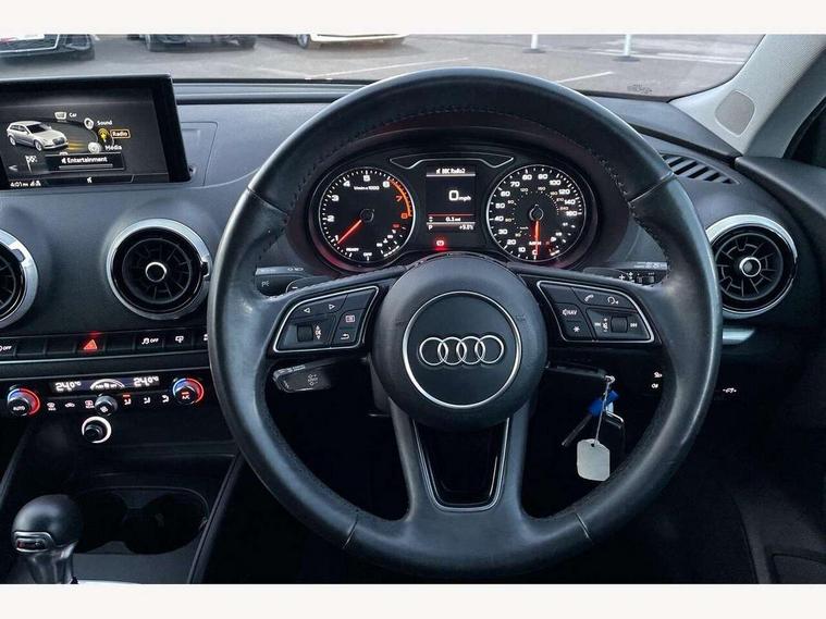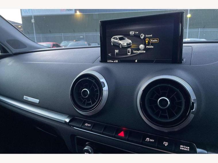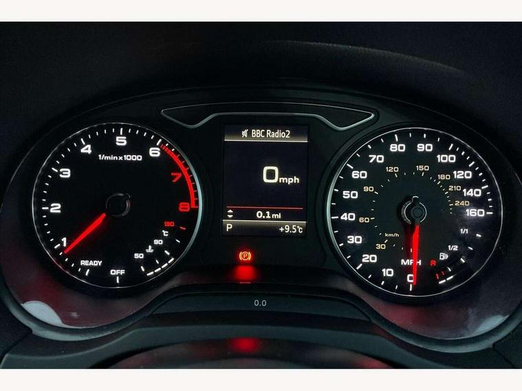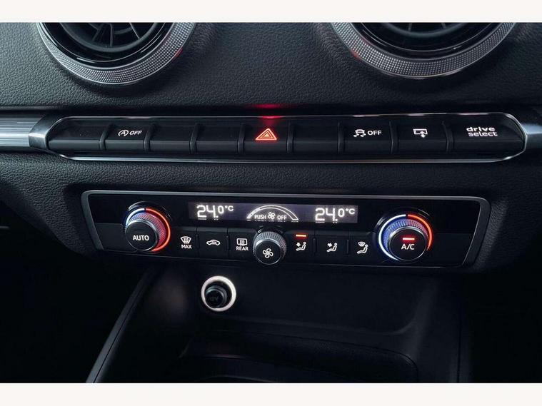 Audi connect, Audi drive select, Audi smartphone interface, Colour driver's information system display, Electro-mechanical PAS, Mobile telephone preparation - bluetooth interface, Service interval indicator, Speed limit display, Voice control system, 2 USB ports, Audi music interface, Auxiliary input socket, DAB Digital radio, Aluminium window trim, Body colour bumpers, Body colour door mirrors with integral indicators, Body colour roof spoiler, Chrome exhaust tailpipes, Electric front windows, Electric operated/heated door mirrors, Electric rear windows, Heated windscreen washer jets, Matt black radiator grille, Rear wiper, Single exhaust tailpipe, Sport specific side air inlet grille and diffuser insert, 3 adjustable rear headrests, 4 lashing points to secure luggage, Adjustable front armrest, Aluminium door sill trims, Dual zone electronic climate control, Front and rear interior lights with delay, Front passenger seat isofix location point, Front sports seats, Front/rear floor mats, Height/depth adjustable steering column, Illuminated glovebox, Illuminated luggage compartment, ISOFIX child seat preparation+airbag deactivation, Jack and tool kit, Steering wheel gearshift paddles, Storage compartment in centre console, Storage compartment under front seats, Storage compartments in doors, Light and rain sensor pack - A3 Hatchback/Sportback, 3 point seatbelts on all seats, ABS/EBD, Active bonnet, Active front headrests, ASR, Curtain airbags, Driver and passenger side airbags, Driver/Front Passenger airbags, Drivers knee airbag, EDL, Electromechanical parking brake, ESC - Electronic Stability Control + traction control, Front passenger airbag deactivation, Manual rear child locks, Multi-Collision braking, Seatbelt warning, Tyre pressure monitor, Warning triangle and first aid kit, Anti-theft wheel bolts, Remote control central locking, Thatcham category 1 alarm + immobiliser, Aluminium air vent surrounds, Aluminium trim elements, Space saver spare wheel,