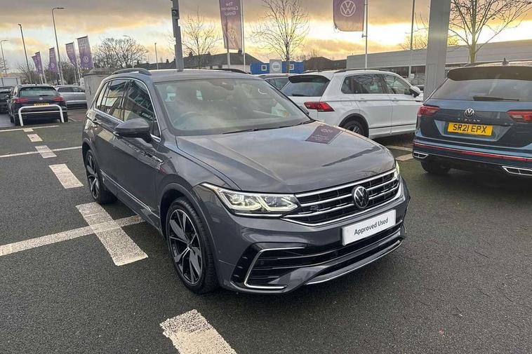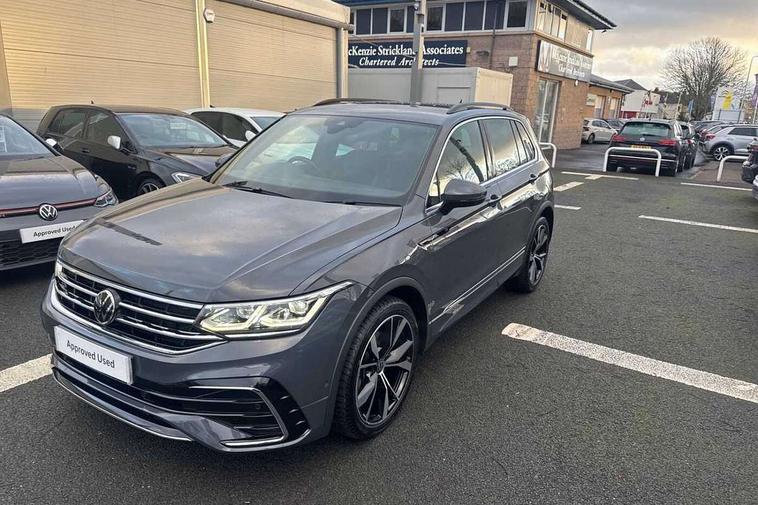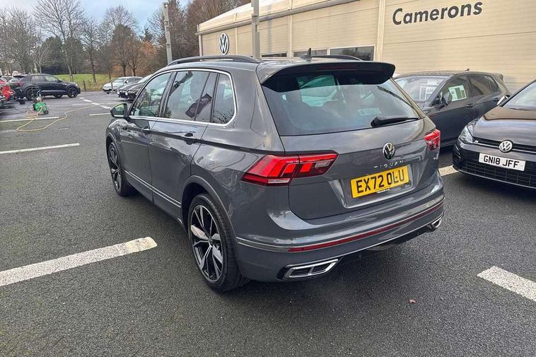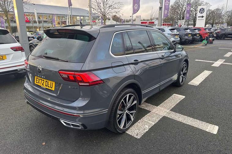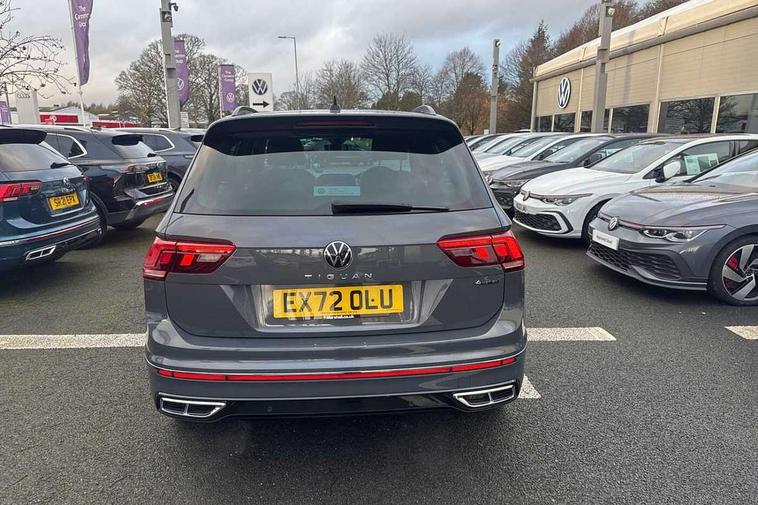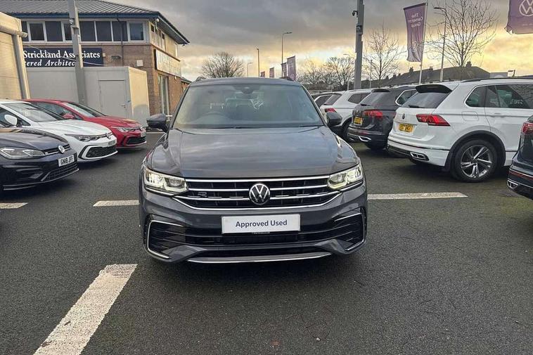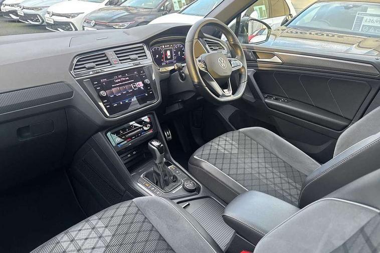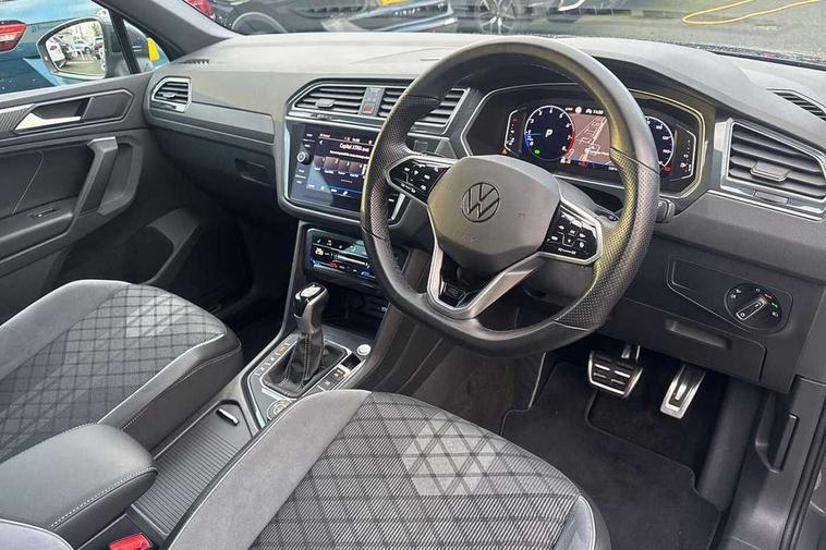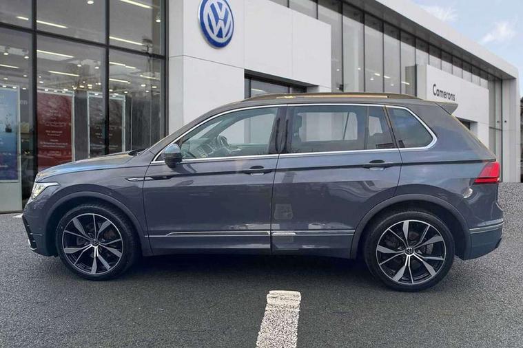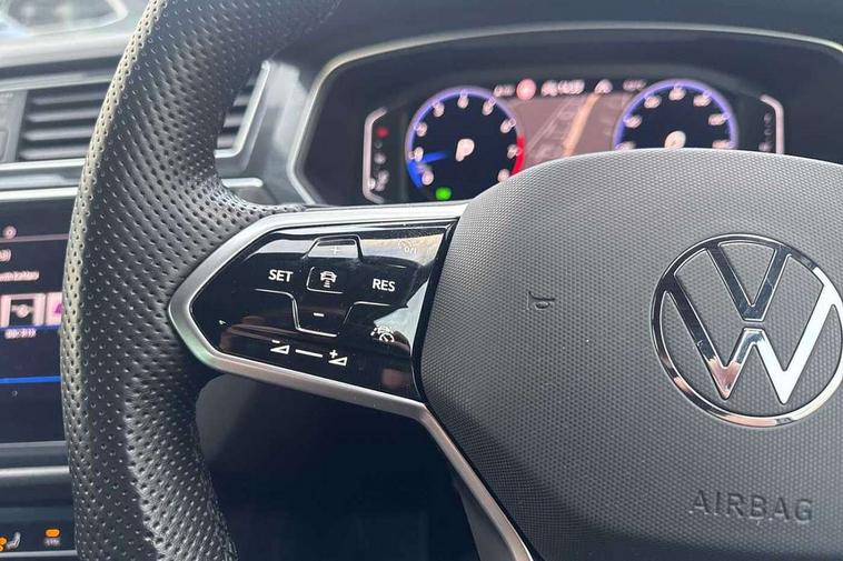 Adaptive cruise control ACC stop and go including speed limiter, App-Connect incl. App-Connect Wireless for Apple CarPlay and Android Auto, Bluetooth phone integration system, Distance control assist, Driver alert system, Driver profile selection, Dynamic road sign display, eCall emergency call system, Electromechanical speed sensitive power steering, Engine start/stop button, Lane keeping system Lane Assist, Lights on warning, Multifunction front facing camera, Outside temperature display, Premium multifunction display with multi colour display, Remote control boot opening, Rev counter, Revision / skills operating concept travel assistant, Service interval indicator, Speed limit display, Start/stop system with regenerative braking, Trip computer, Warning sound and light for doors and tailgate open, All wheel drive - 4Motion, Battery regeneration during braking, XDS electronic differential lock for improved traction and handling, 4 X 20 watt output, 8 Speakers, Diversity antenna for FM reception, Radio, SD card slot, Simultaneous pairing of 2 compatible mobile devices, SMS functionality - read, compose and send SMS messages using touch-screen display, Title and cover art display, USB C ports, Auto dimming interior rear view mirror, Automatic headlight control system, Body colour door handles, Chrome moldings on the side windows, Coming/leaving home lighting function, Dynamic headlight range control, Front and rear electric windows, Heated rear window, High level 3rd brake light, Laminated safety glass windshield, heat and sound insulating, LED headlamps with LED separate daytime running light and dynamic cornering light, LED rear combination lamps, LED rear number plate lights, License plate carrier in front and rear, Poor weather light and cornering light, R Line body kit, R Line side sills, Rain sensor windscreen wipers, Rear exhaust tailpipe, Rear fog lamp, Rear side wing doors, Rear spoiler in R style, Rear windscreen washer and wiper with interval delay, Side and rear windows in heat insulating glass, Trailer Stability Programme, Unique R Line badging, Windscreen wipers/ intermittent wipe + 4 position delay, 12V outlet in center console rear and in luggage compartment, 12V outlet in front and tray, 2 cup holders in front, 2 LED front reading lights, 2 LED rear reading lights, 3 bench rear seats in 2nd row, 3 rear headrests, 4 load lashing points, 40:20:40 split folding rear seats, Air Care Climatronic 3 zone automatic climate control with enhanced air filter and controls in the rear, Backrest release for left front seat, Black headlining, Brushed stainless steel pedals and footrest, Carpet mats in front and rear with decorative stitching in Gray, Climate control unit rear with touch function, Door and side trim panel in foam film, insert in leatherette, Front centre armrest, Front footwell illumination, Front seats head restraints (x-adjustment), Height adjustable front seats, Height/reach adjust steering wheel, Instrument lighting white adjustable panel illumination, Interior light with delay, Isofix Preparation 2 Rear child seats, Leather gear knob, Lockable cooled glovebox, Luggage compartment lighting, Luggage net, Rear bench seat asymetrically split folding, longitudinally movable and folding with load-through hatch and center armrest, Remote unlocking for rear seat backrest, Removable luggage cover, Removable rear headrests, Safety optimised front head restraints, Single front passenger seat, Sliding/reclining rear seats, Standard rear seat release, Storage compartment in driver's door, Storage compartment in passenger's door, Storage compartment in rear doors, Storage compartments in luggage area left and right, Storage tray on dashboard, Sun visors with illuminated vanity mirrors, Top front comfort seats, Variable boot floor, height adjustable and removable, Driver assistance pack plus - Tiguan DSG, 3 point seat belt for centre rear seats, 3 point seat belts with seat belt pretensioners for the outer rear seats, Active bonnet, Curtain airbags for front and rear passengers, Driver/Front Passenger airbags, Drivers knee airbag, Electronic parking brake with auto hold, Electronic Stability Control with driver steering recommendation, ABS, ASR, EDL, EDTC and trailer stabilization, Front assist with autonomous emergency braking (for Adaptive Cruise Control ACC up to 130 mph), Front disc brakes, Front passenger airbag deactivation, Front side airbags, Height adjustable front 3 point seatbelts + pretensioners, Hill hold control, Manual child proof rear door locks, Pedestrian monitoring system, Power assisted brakes, Proactive passenger protection system in combination with front assist, Rear disc brakes, Rigid safety cell with front and rear crumple zones, Two tone horn, Warning sound and light for front seat belts if unfastened, Anti theft alarm system with interior monitoring, backup horn and towing protection, Anti theft wheel bolts, Electronic engine immobiliser, Tool kit,