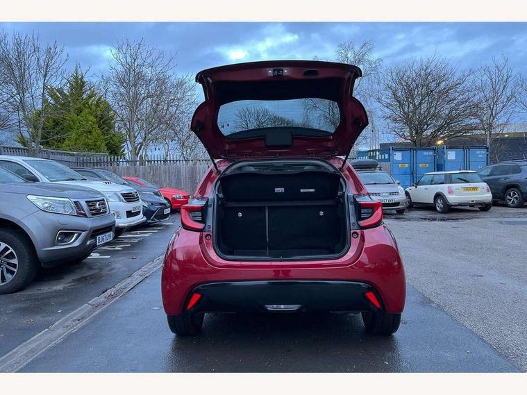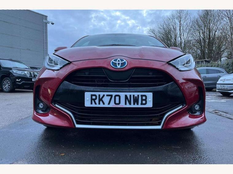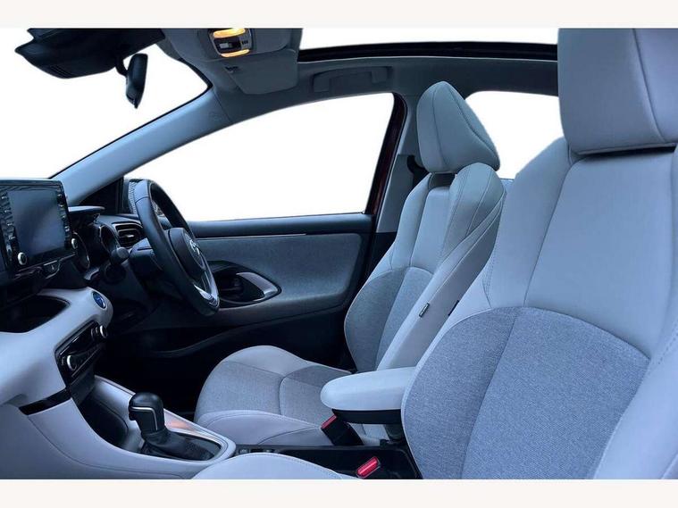 Adaptive cruise control, Adjustable speed limit with speed warning, Blind spot monitoring, Bluetooth connectivity, Colour binocular inspired displays with digital speedometer, E-call, Electric power steering, Front and rear parking sensors and intelligent clearance sonar with automatic braking, Hybrid energy display, Multi information display switches on steering wheel, Reversing camera, Smartphone integration with Apple CarPlay and Android auto, Vehicle Stability Control (VSC), 6 speakers, 8" Multimedia display touch screen, Toyota Touch 2 with DAB, USB connection, Acoustic windscreen glass, Auto windscreen wipers, Automatic headlights, Automatically retractable door mirrors, Body coloured door mirrors, Electric adjustable heated door mirrors, Follow me home headlights, Front auto power windows with anti jam protection, Full LED rear lights, LED daytime running lights, LED front fog lights, LED Headlights, LED High mounted stop lamp, Painted front grille, Rear auto power windows with anti jam protection, Rear privacy glass, Rear spoiler, Satin lower front grille, Shark fin antenna, Turning signal integrated indicators in door mirrors, 3 adjustable rear headrests, 3 spoke leather steering wheel, 60/40 split folding rear seat, Adjustbale boot height, Coat hooks in rear grab handles, Cup holders (2 front & door), Data Communication Module (DCM) connected services, Dual zone automatic air conditioning, Fabric seat with partial synthetic leather upholstery, Front armrest, Front sport seats, Glovebox, Height adjustable driver's seat, Height adjustable passenger seat, Isofix seat fixing, Leather gearshift, Map pockets on the backs of the front seats, Pollen filter, Shopping bag hooks, Tilt/telescopic steering column, 3 point seatbelts on all rear seats, ABS+EBD+Brake assist, Active headrests, Electronic parking brake, Emergency brake light system (EBS), Front passenger airbag on/off switch, Front seatbelt reminder, Hill start assist control (HAC), Rear child proof door locks, Rear seat belt reminder, Supplemental Restraint System (SRS) 8 airbags: Driver & passenger's airbags, dual side curtain airbags, side impact airbags, front centre airbag, Toyota Safety Sense 2, Precollison + Night time Pedestrian & Cyclist Detection, Lane Trace Assist, Auto High Beam, Intelligent ACC & Road Sign Assist, Tyre pressure warning system, Alarm/immobiliser, Keyless smart entry with push button start, Remote powered central double locking doors, Satin chrome interior styling, Soft touch instrument panel, Space saver spare wheel,