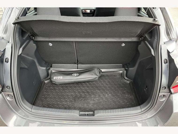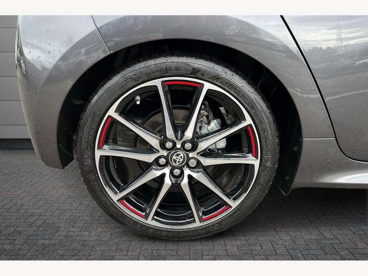 Adaptive cruise control, Adjustable speed limit with speed warning, Bluetooth connectivity, Colour binocular inspired displays with digital speedometer, E-call, Electric power steering, Hybrid energy display, Multi information display switches on steering wheel, Reversing camera, Smartphone integration with Apple CarPlay and Android auto, Tailgate, Voice recognition, Vehicle Stability Control (VSC), 6 speakers, 8" Multimedia display touch screen, Toyota Touch 2 with DAB, USB connection, Acoustic windscreen glass, Auto windscreen wipers, Automatic headlights, Body coloured door mirrors, Dark chrome lower front grille, Electric adjustable heated door mirrors, Follow me home headlights, Front auto power windows with anti jam protection, Full LED rear lights, LED daytime running lights, LED front fog lights, LED front light guide, LED Headlights, LED High mounted stop lamp, LED Indicators, LED rear light guide, Manual headlight levelling, Painted chequered front grille with hot stamp in mesh design, Rain sensor, Rear auto power windows with anti jam protection, Rear privacy glass, Rear side wing doors, Rear spoiler, Rear wiper, Shark fin antenna, Turning signal integrated indicators in door mirrors, Variable front intermittent wipers, 3 adjustable rear headrests, 3 seat bench in 2nd row, 3 spoke leather steering wheel, 60/40 split folding rear seat, Active headrests, Adjustable boot height, Black roof lining, Coat hooks in rear grab handles, Cup holders (2 front & door), Data Communication Module (DCM) connected services, Dual zone automatic air conditioning, Fabric upholstery with red stitching, Front armrest, Front sport seats, Glovebox, Height adjustable driver's seat, Height adjustable passenger seat, Isofix seat fixing, Leather gearshift, Map pockets on the backs of the front seats, Pollen filter, Shopping bag hooks, Single front passenger seat, Tilt/telescopic steering column, 3 point seatbelts on all rear seats, ABS+EBD+Brake assist, Electronic parking brake, Emergency brake light system (EBS), Front passenger airbag on/off switch, Front seatbelt reminder, Hill start assist control (HAC), Rear child proof door locks, Rear seat belt reminder, Supplemental Restraint System (SRS) 8 airbags: Driver & passenger's airbags, dual side curtain airbags, side impact airbags, front centre airbag, Toyota Safety Sense 2, Precollison + Night time Pedestrian & Cyclist Detection, Lane Trace Assist, Auto High Beam, Intelligent ACC & Road Sign Assist, Tyre pressure warning system, 2x Master key, Alarm/immobiliser, Keyless smart entry with push button start, Remote AC via MyT, Remote locking via MyT, Remote powered central double locking doors, GR Sport interior styling with accents and exterior styling, Piano black interior trim, Soft touch instrument panel, 18" machined face alloy wheels with GR Sport red deco lines, Space saver spare wheel,