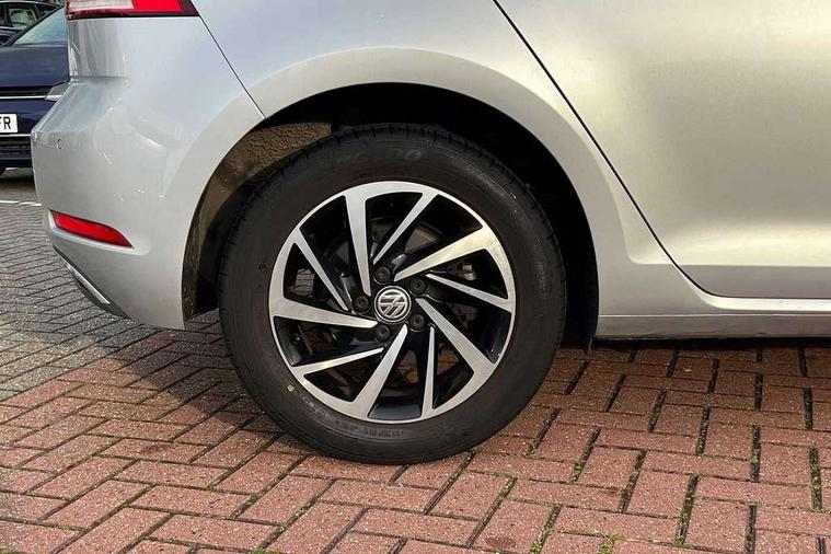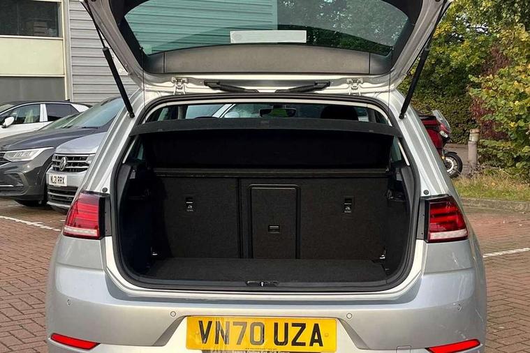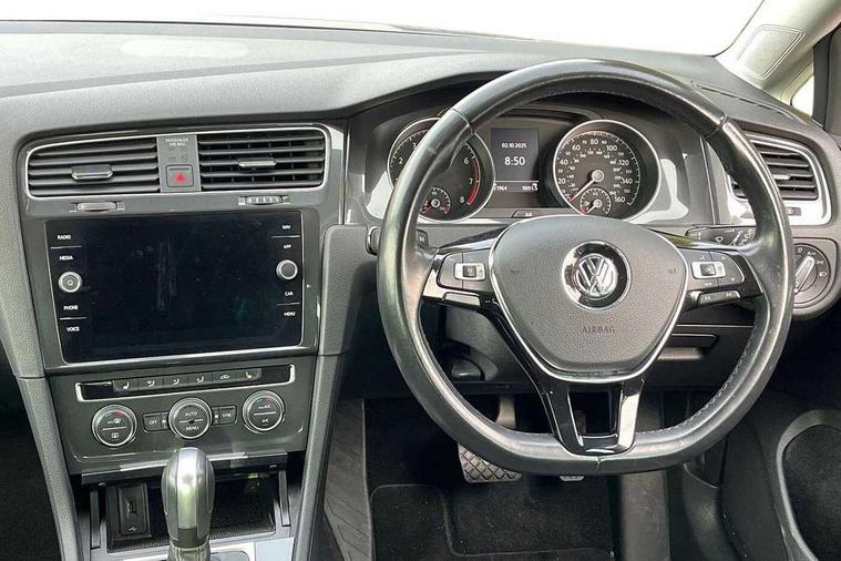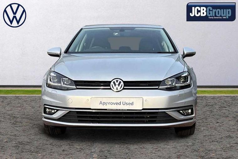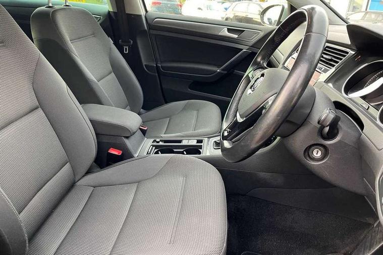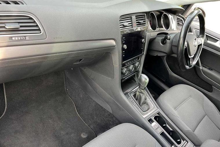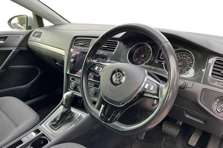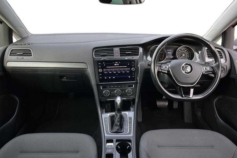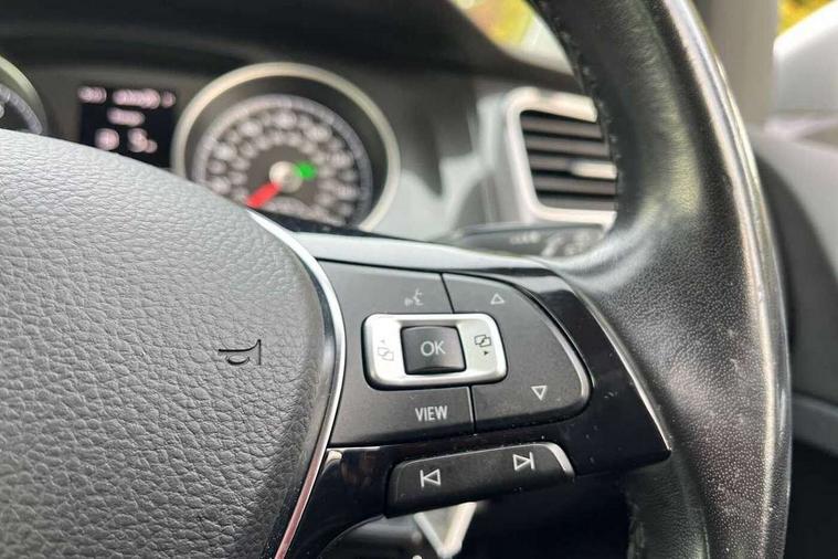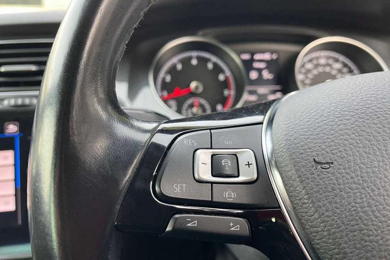 'Lights On' Reminder warning buzzer, ACC - Adaptive cruise control with front assist, forward collision warning, distance monitoring, city emergency brake and speed limiter, Bluetooth telephone and audio connection for compatible devices, Brake pad wear indicator warning light, Driver alert system, Driving Mode Selection with four preset modes - Eco, normal, sport or individual modes, Multifunction computer with visual gear change recommendation for fuel consumption, Power assisted speed sensitive electro-mechanical steering, Push tank flap, Speed limit display, Speedo, rev counter, electronic odometer, trip, service interval display, exterior temperature and fuel gauge, Stop/start system, Think blue trainer driver tips and journey analysis, Warning buzzer and light for front seatbelts unfastened, Battery regeneration during braking, XDS electronic differential lock, Composition media system, DAB Digital radio receiver, Driver Personalisation profile selection, MP3/WMA compatability, Multi device interface (MDI) via USB connection, Premium USB cable in choice of either Apple or Android smartphone compatibility, SMS Functionality, Title and cover art display, USB and SD card connectivity, Volkswagen media control, Black front air intake and radiator grille with chrome insert, Black rear diffuser, Body colour bumpers, Body colour door handles, Body colour door mirrors with integrated indicators, Dusk sensor + automatic driving lights, Electric front windows, Electric rear windows, Electrically adjustable and heated door mirrors, Fully galvanised body, Heated rear windscreen, High level 3rd brake light incorporating LED Technology, LED front fog lights with static cornering light function, Range adjustable headlights via infotainment system with LED daytime running lights, Rear fog lamp, Rear number plate lights incorporating LED technology, Rear tinted glass 65% light absorbing from B pillar backwards, Rear window aerial, Rear window wash/wipe with intermittent wipe, Reflectors in all doors, Tailgate with integrated rear roof spoiler, Windscreen wipers/ intermittent wipe + 4 position delay, 12V socket in luggage compartment, 3 rear headrests, 4 load lashing points in luggage compartment, 60/40 split folding rear seat backrest, Bag hook in luggage compartment x 2, Climate control - 2 zone electronic air conditioning with automatic air recirculation and allergy filter, Cooled glovebox, Cover for storage compartment in centre, Dust/pollen filter, Front and rear reading lights X 2, Front centre armrest with storage compartment and two rear air vents, Front seat back storage pockets, Grab handles front x 2, rear x 2 with integrated coat hooks, Height and reach adjustable steering wheel, Illuminated vanity mirrors, Instrument lighting white adjustable panel illumination, Interior light delay, Isofix preparation for 2 rear child seats, Load through provision with rear centre armrest and cupholders x2, Luggage compartment lighting, Overhead storage box, Pearl grey headlining, Storage box in luggage compartment, Storage compartment in roof console with cover, Storage compartments in centre console, Storage compartments in front doors, Storage compartments in rear doors, Stowable luggage compartment cover, Sun visors, Variable boot floor, height adjustable and removable, Convenience Pack - Golf, Mirror pack - Golf, Winter pack - Golf, 3 rear three point seatbelts, Airbags - Driver's and front passenger's, curtain airbag, Driver's knee, front side impact and passenger's airbag deactivation switch, Anti-lock Braking System (ABS) with Hydraulic Brake Assist (HBA), Automatic post collision braking system, Child locks on rear doors, Driver/Passenger optimised head restraints, Electronic parking brake with auto hold, Electronic stability control (ESC) including Electronic differential lock (EDL) and ASR (Traction control) with deactivation via infotainment system, Front ventilated disc brakes and rear disc brakes, Pre crash preventive occupant protection, Three point height adjustable front seatbelts with tensioners, Tyre pressure loss indicator, Alarm with interior protection and deactivation via infotainment system, Electronic engine immobiliser, Brushed dark silver decorative inserts in dash and door panels, Chrome plated air vent surround, Chrome-plated light switch surround, Polar night black decorative inserts in centre console, Steel space saver spare wheel,