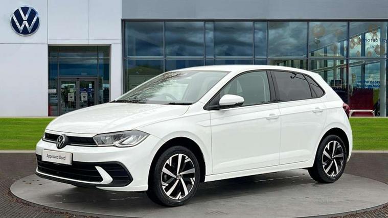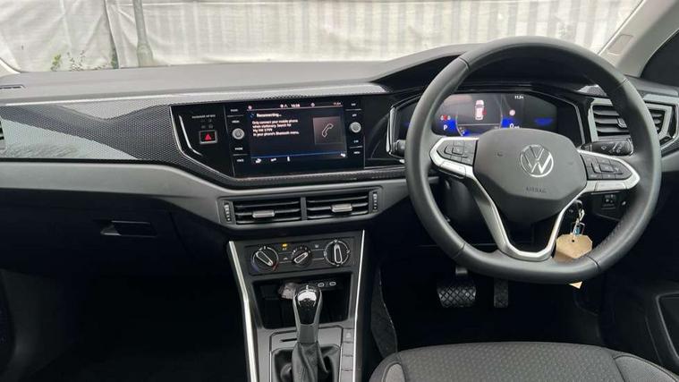 Advanced driver attention and drowsiness monitor, Bluetooth mobile phone interface, Dynamic road sign display, Emergency call service, Multifunction front facing camera for distance control, Park distance control, Power assisted speed sensitive steering, Predictive adaptive cruise control without follow-to-stop and speed limiter, Preparation for navigation system with media and internet package, Preparation for We connect and We connect plus, Rear view camera, Speedo and rev counter, electronic odometer, trip, service interval display and exterior temperature gauge, Standard rear axle, Travel Assist - Lane keeping system and traffic jam assist, Travel assist including emergency assist, Trip computer, Warning signal and warning light for front and rear seatbelts not fastened, Washer fluid level indicator, Wireless app connect, Front wheel drive, Rear shock absorpion, Start-stop system with battery regeneration (recuperation - energy recovery during braking), DAB Digital radio, Diversity antenna for FM reception, Front and rear 6 speakers, Automatic dimming interior rear view mirror, Automatic headlight control with LED separate daytime running lights with coming/leaving home function, Body colour bumpers with chrome inserts, Body colour door handles, Body colour door mirrors, Electric front windows, Engine badge deletion, Headlight range adjustment, Heat insulating and laminated safety glass windshield, LED Headlights, LED rear combination lamps, Power folding adjustable/heated exterior mirrors and front passenger exterior mirror lowering function, Rain sensor, Rear electric windows, Rear fog light, Rear side wing doors, Rear tinted glass from B-pillar backwards approx 65% tinted, Rear windscreen washer and wiper with interval delay, Third brake light, 12V power socket in centre console, 2 front and 2 rear reading lights with switch off delay and dimmer, 2 USB-C ports in the front, 2 USB-C charging sockets on the center console in the rear, 3 rear head restraints, 60/40 split folding rear seat and rear seat bench not split, Ceramique roof lining, Chrome plated radiator grille inserts, air vent surrounds and light switch surrounds, Door and side trim panel, Driver and front passenger seat height adjustment, Driver/passenger sunvisors with illuminated vanity mirrors, Front centre armrest, Front seat backrest storage pockets, Front standard seats, Handbrake lever handle in leather, Hartley/Thomas cloth upholstery, Headliner in recycled material, Isofix child seat preparation easy-fit (for two outer rear seats, and front passenger seat) compatible with I-size, Leather trimmed gear knob, Luggage compartment cover, Luggage compartment lighting, Removable luggage compartment floor, Single front passenger seat, Standard climatic zones, Standard pedal cluster, Three spoke leather wrapped multifunction steering wheel with shifting paddles, Light and vision pack - Polo, 3 point height adj front seatbelts + pretensioners, 3 point seat belt for centre rear seat, 3 point seatbelts, outer rear with ECE lable, ABS, Driver and front passenger airbag with front passenger airbag deactivation, Drivers and front passengers safety optimised head restraints, ESC (Electronic stability control) + EDL (Electronic Differntial lock) and ASR (Traction control), Extended and predictive pedestrian/ cyclist protection, Front assist with autonomous emergency braking (for Adaptive Cruise Control ACC up to 130 mph), Front curtain and side airbags with center airbag, Front disc brakes, Hill hold control, Manual child lock in rear doors, Rear drum brakes, Single tone horn, Tyre pressure loss indicator, Alarm with interior protection, Anti-theft alarm system with interior monitoring, backup horn, and towing protection, Anti-theft wheel bolts, Electronic engine immobiliser, Lava stone black gloss/matt decorative inserts in dash and front door panels, 16" Torsby alloy wheels, Low rolling resistance tyres,