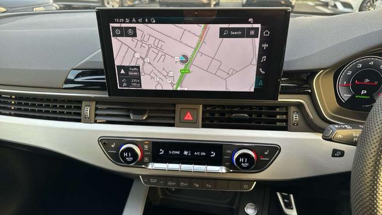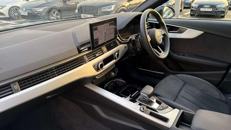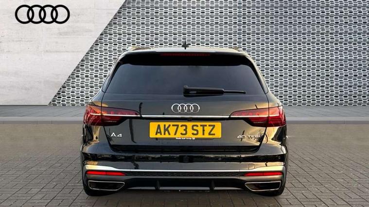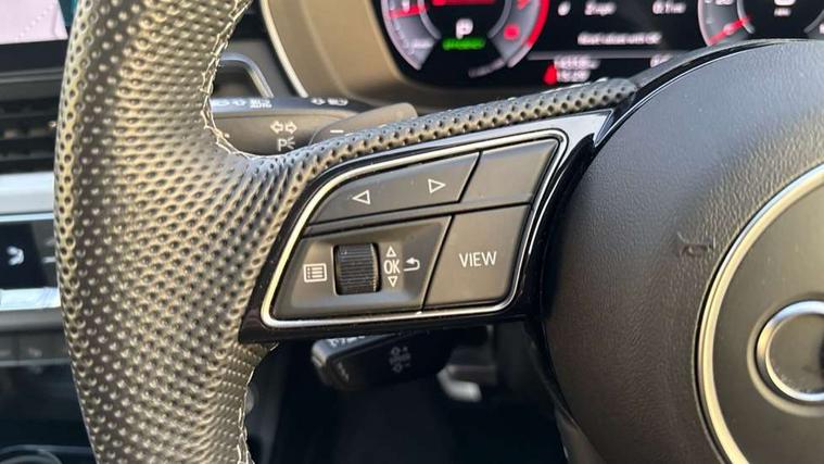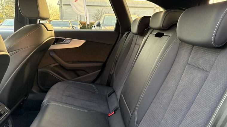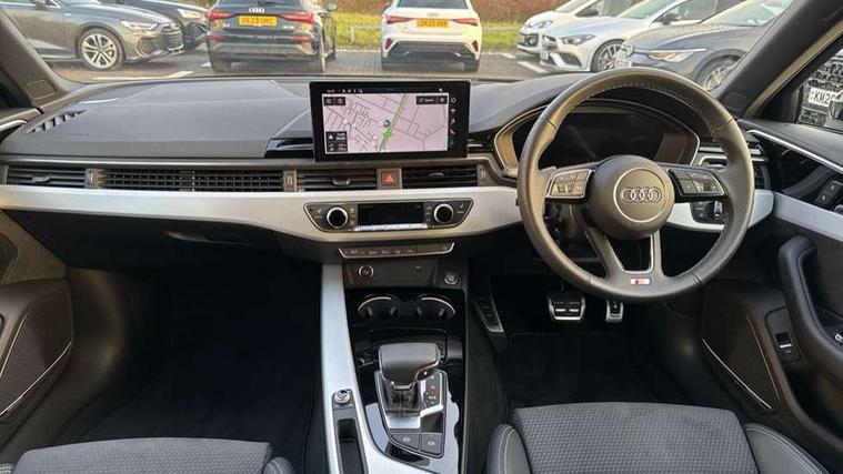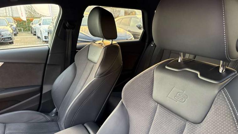 Audi connect safety and service (e-call), Audi drive select, Audi smartphone interface, Audi virtual cockpit, Automatic start-stop system with coasting functionality and efficiency programme, Bluetooth interface, Camera based traffic sign recognition, Electromechanical power steering, Email, calendar and text messages displayed via MMI, Front and rear parking sensors, Lane departure warning, MMI Navigation plus with MMI touch includes 10.1" high resolution colour MMI display, 3D map, Power operated tailgate, Rear view camera, Voice control system, 54 litre fuel tank, Sports suspension lowered by 23mm, 2 USB charging ports, 8 passive loudspeakers, DAB digital radio reception, Aluminium roof rails, Auto dimming rear view mirror, Body colour door handles, Body colour front spoiler lip, Body colour side sill trim, Body coloured door mirrors, Electric adjustable/heated/folding door mirrors with auto dimming, Grained matt black side air inlets with matt aluminium silver inlay, High beam assistant, Honeycomb structure radiator grille in grained matt black, LED headlights with LED rear lights + dynamic rear indicators + headlight adjustment and high beam, turning light + LED daytime running lights, LED third brake light, Matt aluminium silver tailpipe trim, Privacy glass, Rain and light sensors, Rear side wing doors, Rear wiper, S Line badges on the front wings, S line front and rear bumpers with side skirts, S Line rear diffuser in matt anthracite black with trim strip in matt aluminium silver, S Line roof edge spoiler, Variable intermittent front wash/wipe, Windscreen with acoustic glazing, 3 spoke high multi-function sports leather steering wheel grips in perforated leather with S badging including paddle shift, 4 way electric lumbar support for driver and front passenger, 40/20/40 split folding 3 rear seat bench in 3 parts with rear centre armrest, Black carpets, Black cloth headlining, Black perforated leather gearknob, Contrast stitching on seats, steering wheel and gear lever gaiter, Deluxe 3 zone electronic climate control, Electric load area cover, Front and rear head restraints, Front centre armrest, Heated front seats, Illuminated door sill trims with S logo, ISOFIX child seat mounting and top tether, Manual seat adjustment, Single front passenger seat, Stainless steel pedals and foot rest, High gloss package - A4, LED Interior light pack - A4/S4, 3 rear seatbelts, 6 airbags - Driver, front passenger, curtain and side windows, Attention and drowsiness assist, Electronic Stabilisation Control (ESC) including ABS, ASR and EDL, Hill hold assist, Multi collision brake assist, Pop-up bonnet for pedestrian protection, Pre sense city, Rear door child safety locks, Seatbelt monitoring, Warning triangle and first aid kit, Anti theft alarm, Anti theft wheel bolts, Central locking, Keyless Go, Matt brushed aluminium inlays, Tool kit, Tyre repair kit,