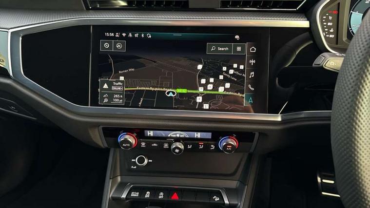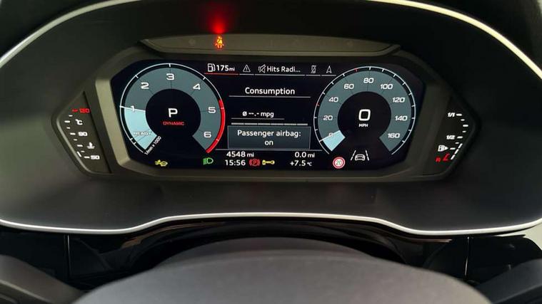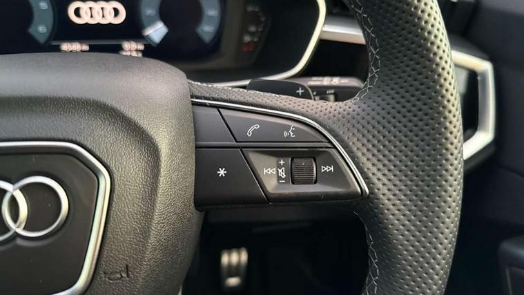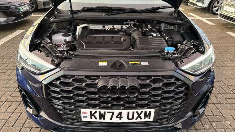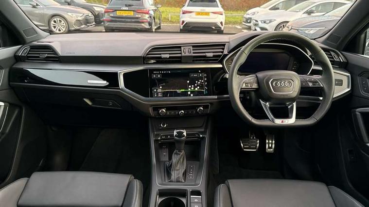 Audi connect safety and service, Audi drive select, Audi lane departure warning, Audi Virtual Cockpit - 10.25" display, Bluetooth interface, Camera based traffic sign recognition, Distraction and Fatigue warning, Legal emergency call, MMI Navigation Plus with high resolution 10.1 inch touchscreen colour display, Power operated tailgate, Progressive steering, Service interval indicator, Smartphone interface includes wireless Apple carplay/Android Auto, Start stop system with recuperation, Voice control system with natural language interaction, Diesel particulate filter, Sports suspension, 2 USB-C ports with charge and data functions, 6 passive loudspeakers, DAB digital radio module, Acoustic windscreen, Audi Beam uses LEDs to project the Audi logo onto the ground as you exit your Q3, Auto dimming door mirrors, Auto dimming frameless rear view mirror, Diffuser grille in grained matt black, Diffuser trim in selenite silver, Electrically folding, adjustable and heated door mirrors with integrated LED side indicators and kerb view function for passenger side, Front and rear electric windows, Front fog lights, Front underbody protection in manhattan grey paint finish, High gloss black finish B and C pillars, LED Dynamic rear indicators, LED headlights with LED daytime running lights, LED rear lights, LED third brake light, Privacy glass dark tinted rear and rear-side windows (from B-pillar backwards), Rain and light sensors, Rear side wing doors, Rear underbody protection in matt black, Rear wiper, S line front and rear bumpers and side skirts in contrasting Manhattan grey paint finish, Variable front intermittent wipers, 12V socket in rear centre console, 3 seat bench in 2nd row, 40:20:40 folding with manual adjustment for 60:40 forwards/backwards position and backrest angle, Adjustable rear seat bench/backrest with centre armrest and cupholder, Black cloth headlining, Dual zone electronic climate control, Electric lumbar support, Front and rear black floor mats with contrast stitching, Front and rear headrests, Front centre armrest, Height and reach adjustable steering wheel, Illuminated door sill trims with S logo, ISOFIX child seat mounting for front passenger with airbag deactivation and outer rear seat including top tether attachment point for outer rear seats, Luggage compartment sill protection in stainless steel, Manual front seats with height adjustment, Perforated leather gearknob, Single front passenger seat, Stainless steel pedals, Twin leather upholstery with front sport seats + S embossing, Black styling pack - Q3, Non smoking pack - Q3, 3x3 point rear seatbelts, 6 airbags - Driver, front passenger, curtain and side windows, Audi pre-sense front with pedestrain and cyclist recognition, Electrically operated child locks on rear doors, Electromechanical parking brake, Electronic stabilisation control including ABS, ASR and EDL, Front seatbelt reminder, Hill descent control, Hill hold assist, Pre sense basic, Seatbelt monitoring, Tyre pressure warning, Warning triangle and first aid kit, Anti theft alarm, Anti theft wheel bolts, Immobiliser, Remote central locking, Aluminium look interior elements, Detail dashboard around MMI touch colour display in glass look, black with surround in aluminium look, Leatherette door armrest, Piano black inlay,