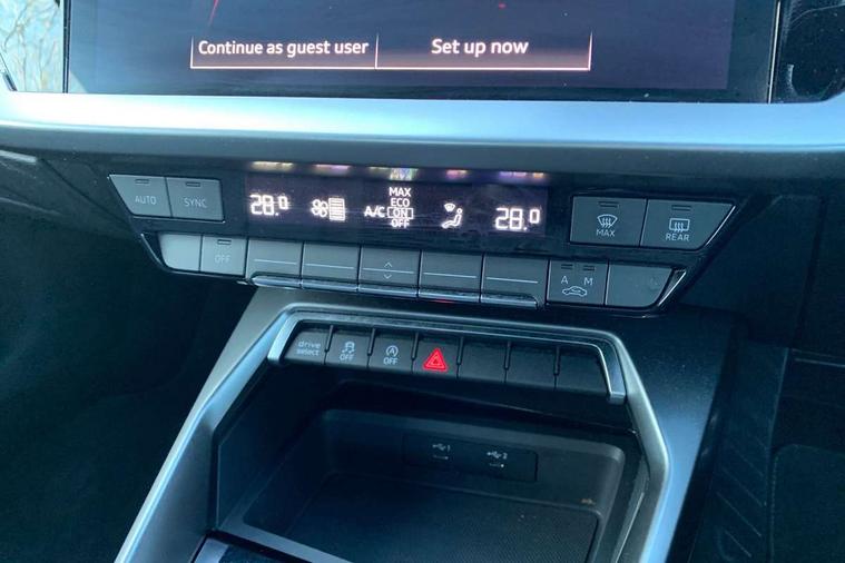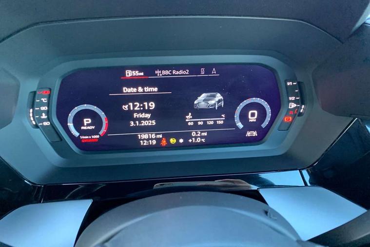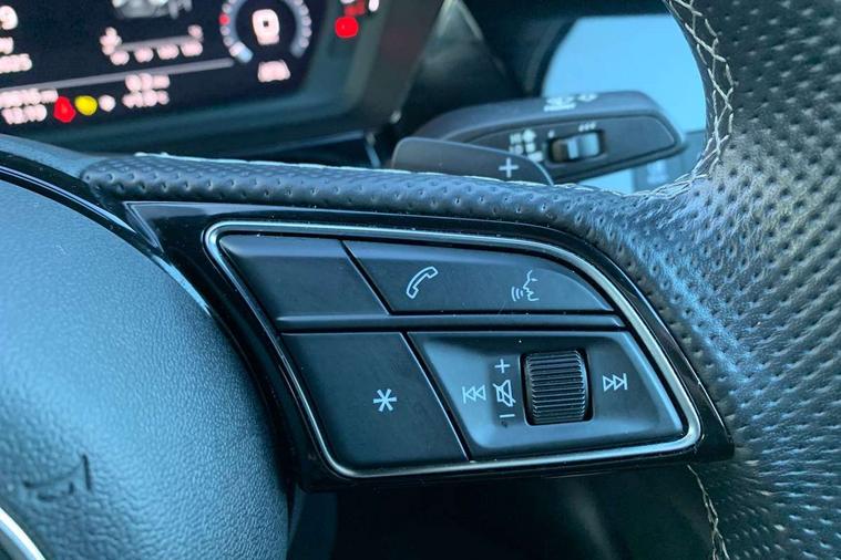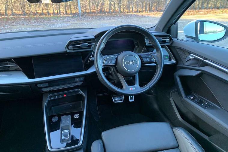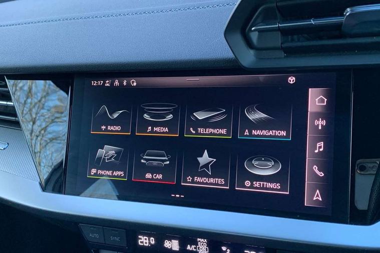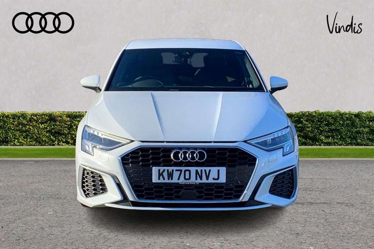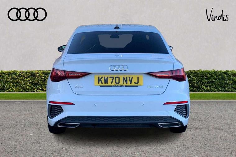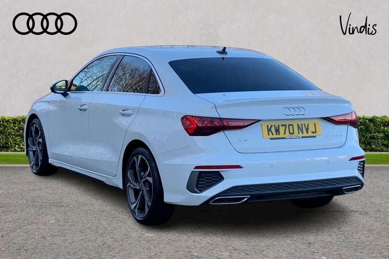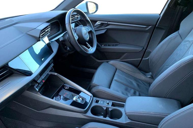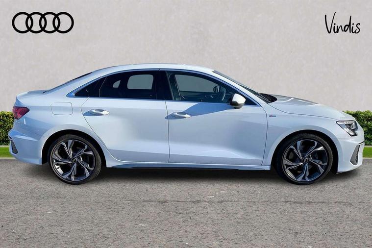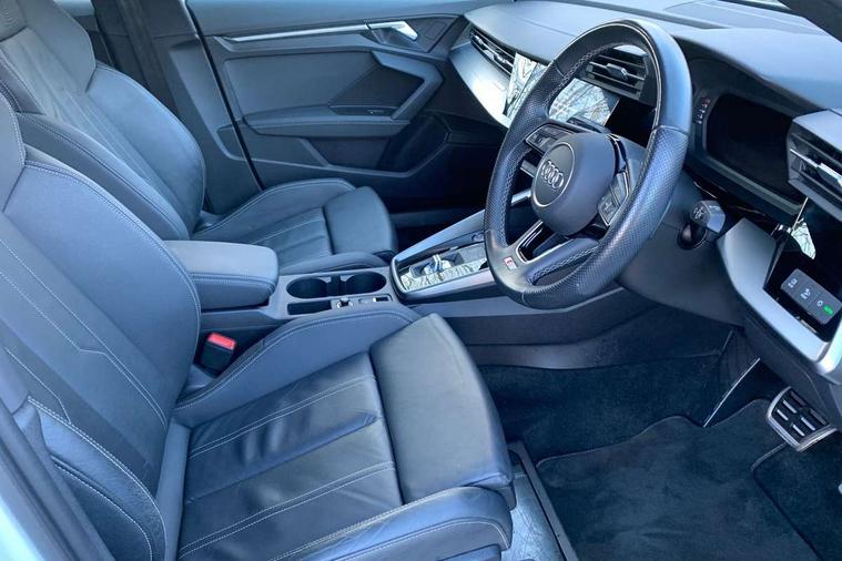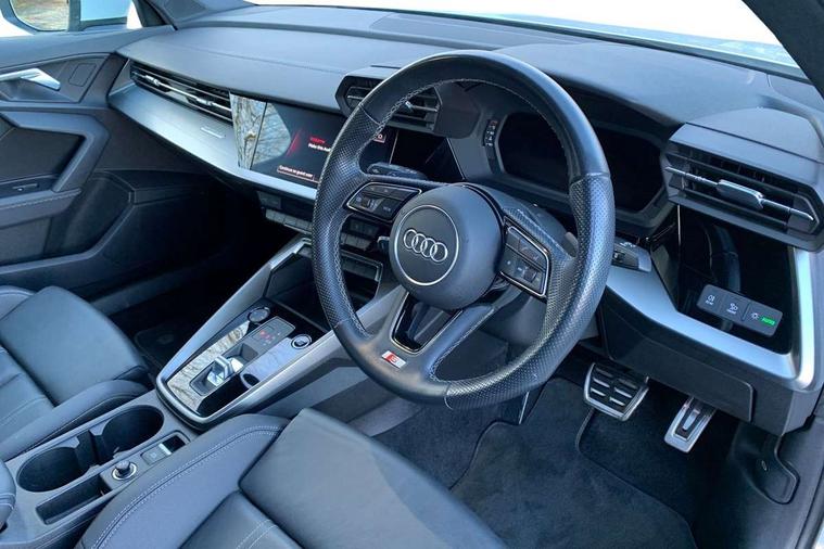 Audi connect emergency call and service, Audi drive select (Auto, Comfort, Dynamic, Efficiency and Individual), Audi smartphone interface, Audi Virtual Cockpit - 10.25" digital and colour instrument cluster, Automatic start/stop system with recuperation, Bluetooth interface, Collision avoidance assistant, Electromechanical power speed sensitive steering, Lane departure warning system, MMI Navigation Plus with high resolution 10.1" colour touch screen display, Service indicator, Voice control system with natural language interaction, 2x USB Type C ports (for charging and data transfer), 6 passive loudspeakers, CD player, DAB Digital radio, Acoustic glass windscreen, Aluminium window trim, Auto dimming frameless rear view mirror, Body colour exterior mirrors, Electrically adjustable/heated/folding/dimming door mirrors with kerb view includes integrated LED indications + kerb view function for passenger side, Front electric windows, Illuminated door sills with aluminium inserts at the front with S logo, LED daytime running lights, Light and rain sensors, Model and engine designation badges at rear, Privacy glass - dark tinted rear window, rear door and side windows, Rear electric windows, S line bumpers, S roof spoiler, 12V socket and storage compartment in front centre console, 40/20/40 split folding rear seat bench with cupholder, Black cloth headlining, Dual zone electronic climate control, Front and rear centre armrest in leather, Front and rear headrests, Front/rear floor mats, Height and reach adjustable steering wheel, Interior lighting - glove compartment light and right hand side, Luggage compartment floor covering, Manual boot compartment lid, Manually adjustable front seats, Seat side bolsters, Stainless steel pedals and front footrest, Twin leather upholstery with front sports seats S embossed logo, Aluminium interior elements pack - A3 Saloon, S line styling pack - A3 Saloon, 3x3 point rear seat belts, Driver and front passenger airbag with passenger airbag deactivation, Electronic Stabilisation Control (ESC) including ABS, ASR and EDL, First aid kit with warning triangle and 2 safety vests, Front side airbags with head airbags and interaction airbag, Hill hold assist, Pre-sense front with pedestrian and cyclist detection, Seatbelt monitoring, Tyre pressure loss indicator, Anti theft alarm, Anti-theft wheel bolts, Electronically operated child lock, Immobiliser, Remote control central locking, Aluminium air vent surrounds, Aluminium trim elements, Dark spectrum aluminium inlays, accent surfaces in the dashboard and centre console in platinum grey silk effect paint finish,