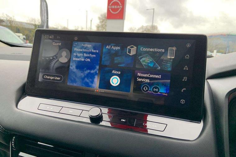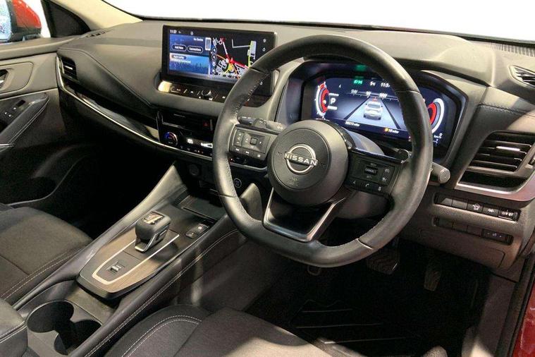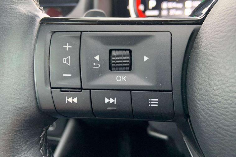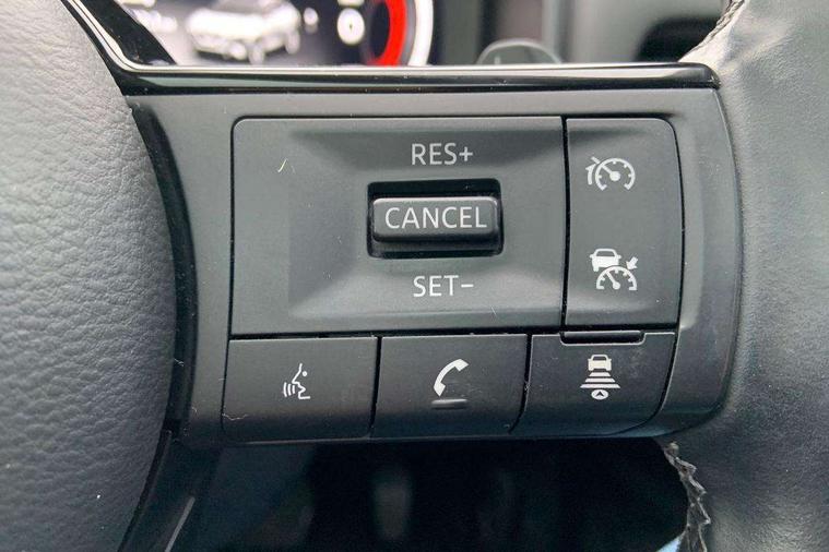 Android auto/Apple CarPlay (Wired), Blind spot warning, Drive modes (sport, normal, eco), Electric speed sensitive power steering, Emergency and breakdown call, Full Digital 12.3" TFT Digital Combimeter, Google maps services - search, weather, 3D maps and Google street view, Idle stop/start system, Intelligent around view monitor, Intelligent Cruise control (ICC), Intelligent driver alert system, Intelligent forward collision warning, Intelligent lane intervention, Lane departure prevention, Lane departure warning system, Maximum speed limiter, Moving object detection, Nissan connect 12.3 inch touchscreen infotainment system, Nissan connect navigation, Push button starter, Rear cross traffic alert, Rear parking sensors, Rear view camera, Remote control services - door locks, lights, horn and car locator, Telematics - notifications and connectivity services, TomTom live traffic services, Traffic sign recognition with legal speed adjustment, Trip computer, Virtual personal assistant and firmware over the air capability, Wireless apple carplay, 6 speakers, AM/FM audio system with DAB, Bluetooth audio streaming, Front USB connections (Type-A and Type-C), Rear USB charging only ports (Type-A and Type-C), Auto dimming rear view mirror, Auto rear wiper when reversing, Automatic hazard signal with emergency stop signal, Body colour mirror caps, Body coloured door handles, Bodyside mouldings, Chrome side window finisher, Door handle with button, Electric auto folding door mirrors, Electrically adjustable and heated door mirrors with LED turn indicator, Follow me home headlights, High beam assist, Intelligent auto headlights, LED daytime running lights, LED Headlights, LED rear lights, One touch front and rear electric windows with remote opening and closing, Partially body coloured bumpers, Privacy glass, Rear bumper with graphite insert, Rear reversing light (bulb lighting), Rear roof spoiler, Rear side wing doors, Rear styling plate, Shark fin antenna, Splash free rain sensing wipers, Super UV and infrared cut glass, Three blink turn signal, 12v power socket in dashboard and luggage, 2x Rear coat hooks, 3 bench rear seats in 2nd row, 3 rear headrests, 4 folding assist grip, 6 Luggage hooks - 4 on floor, 2 on side, 6-way manually adjustable driver's seat, 60/40 split folding rear seat bench, Ambient lighting around centre console, Centre console storage tray, Chrome interior door handles, Cloth monoform upholstery, Driver and front passenger sunvisors with illuminated vanity mirrors, Driver seat back pocket, Dual zone automatic climate control with pollen filter, Electrically adjustable lumbar support for driver, Front and rear door storage, Front centre console and armrest, Front cupholders x 2, Front door with bottle holders, Glovebox with light, Hard trunk cover, Height adjustable driver's seat, Height adjustable front headrests, Height adjustable passenger seat, Leather steering wheel, Luggage board system, Luggage space lighting, Manually adjustable passenger (slide recline + lifter), Multifunction steering wheel, Passenger seat back pocket, Rear armrest with 2 cupholders, Rear door bottle holders, Single front passenger seat, Soft PVC kneepad, Steering wheel gearshift paddles, Steering wheel switches, Sunglasses holder, Tilt/telescopic adjustable steering wheel, Two rear isofix child seat anchorage points with top tether, Welcome light and console tray ambient lighting, 3x3 point rear seatbelt pretensioners + load limiters, ABS with EBD and brake assist, Active brake limited slip, Auto hold function, Child locks on rear doors, Curtain and front side, far side airbags, Driver and passenger airbags, Driver, passenger and 2nd row rear seat belt reminder, Electronic parking brake, Front seatbelt pretensioners + load limiters, Height adjustable front seatbelts, Hill start assist, Intelligent blind spot intervention, Intelligent front emergency braking with pedestrian, cyclist recognition and junction assist, Intelligent rear automatic braking, Tyre pressure monitoring system, Vehicle dynamic control, Capless fuel filler, Engine immobiliser, Intelligent Key, Remote central door locking with deadlocking, Thatcham Cat.1 alarm, Interior instrumental panel B finisher, 18" Diamond cut alloy wheels, Tyre puncture repair kit,