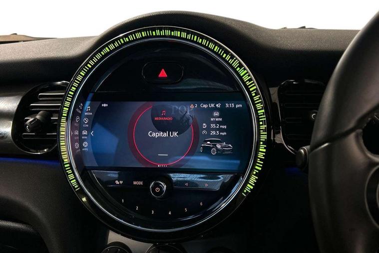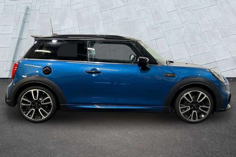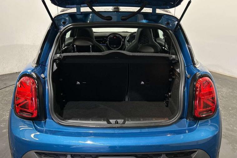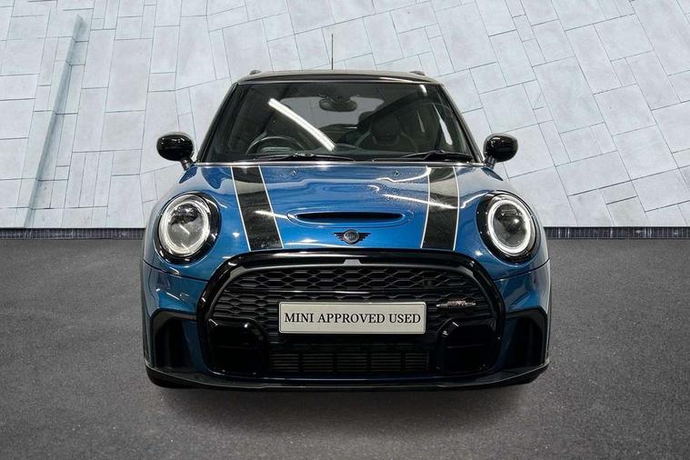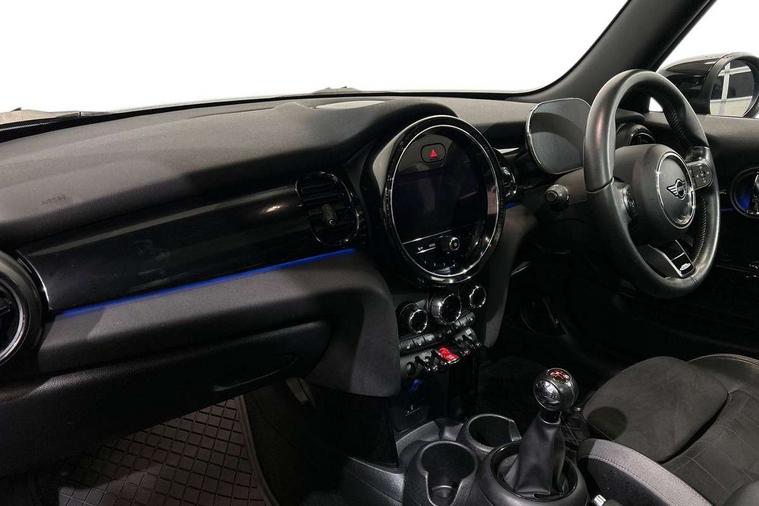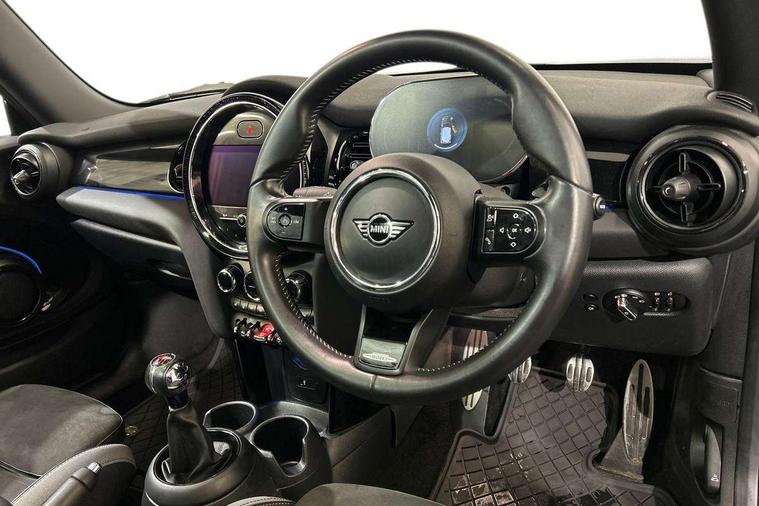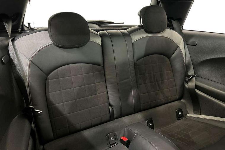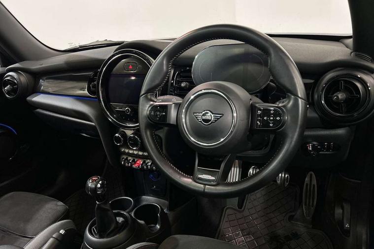 Apple CarPlay, Automatic start/stop function with brake energy recuperation, Compatible mobile phone bluetooth with audio streaming, Cruise control with brake assist, Electro-mechanical speed dependant steering assistance, Flexible car sharing preparation, Instrument cluster, MINI Driving Modes - centre toggle switch to control driving setting (sport, mid and green), Mini E-call, MINI TeleServices, On board computer, Rear park distance control, Service interval indicator, 6 Speed manual transmission including gear change indicator display, Double Vanos system, Fully variable valve control, High precision injection, Intelligent adaptive suspension, Performance Control, 8.8" touchscreen with LED ring, FM tuner and DAB digital radio, 3rd brake light, Automatic headlight activation switch, Bonnet scoop, Dynamic brake lights, Electric front windows, Heated rear window, Heated windscreen washer jets, JCW Aerodynamic kit - Front and rear bumpers with sporty JCW styling and part-painted side sills with MINI John Cooper Works door sill finishers, John Cooper Works rear spoiler, LED headlight with closed ring and daytime driving lights, Metal door sill strips with Cooper S, Model logo Cooper S on right of tailgate, Radiator grille chrome border with honeycomb structure including S Badge, Rain sensor window wipers, Rear fog lights, Rear LED lights with union jack design, Rear window wiper, Side scuttle panel with integrated indicator, Sun/heat protection glass, Two central exhaust tailpipes with chrome finisher, White indicator lenses, 12V Accessory socket in centre console, 2 seat bench in 2nd row, 4 lashing eyes in luggage compartment, 60/40 split folding rear seat, Anthracite headliner including grab handles and clothes hooks, Carbon black colour line - Knee roll and door armrest, Chrome interior highlights, Cupholders, Front and rear isofix with front passenger airbag deactivation, Front floor mats in velour, Glove compartment, Height and length steering column adjustment, Interior lighting with 12 different colours across the dashboard, underneath door bezel with illuminated laser-engraved design on central display, JCW Sport seats with integrated headrests, adjustable thigh support and John Cooper Works logo, Leatherette gearshift lever and handbrake gaiters, LED reading lights, vanity mirror lights, front foot well light and spotlight on front seats, Manual air conditioning, Mechanical seat adjustment - forward/back & backrest for front seats and driver seat height adjust, Multifunction steering wheel, Passenger seat height adjuster, Single front passenger seat, Storage compartments in doors, Storage pocket on back of front seats, Sunvisors with vanity mirrors, Walknappa leather steering wheel with grey seam and John Cooper Works badge on Piano Black lower steering wheel spoke, Piano black exterior pack - Mini Hatchback Cooper S, 3 point seatbelts on all four seats, 6 Airbags - front, side, head and seat belt tensioners, Anti-lock braking system (ABS), DSC - Dynamic Stability Control, Front and rear disc brakes, Two tone horn, Tyre pressure monitoring system, Alarm system with tilt sensor, monitoring doors, bonnet interior and tailgate, Electronic vehicle immobiliser, Start/stop toggle with keyless go, Piano black interior trim, Tool kit,