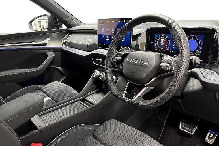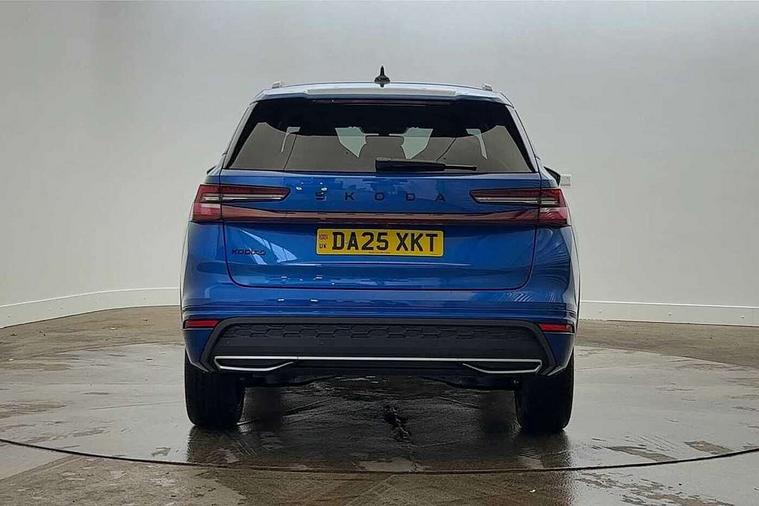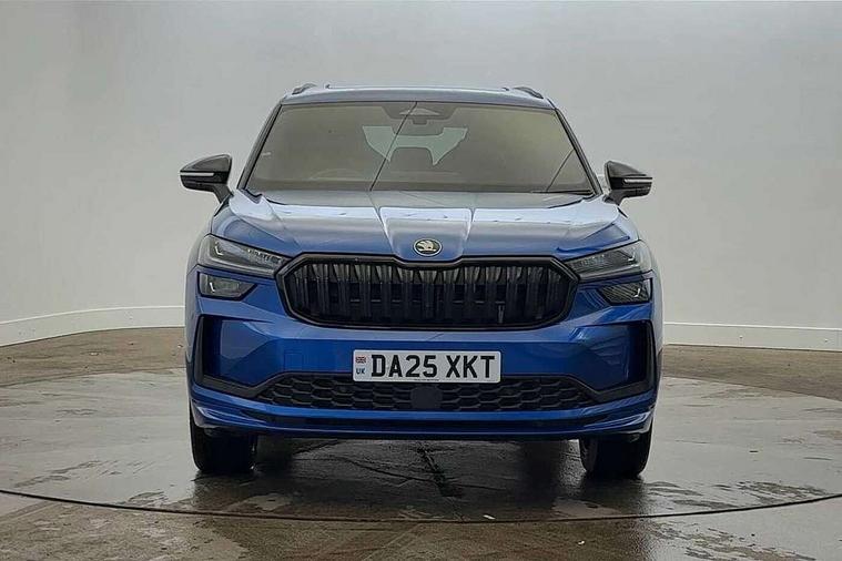 13" satellite navigation touchscreen display, Blind spot detection with door exit warning, Bluetooth system, ChatGPT functionality, Driver alert - Fatigue and drowsiness monitor, Dry display cleaner, Emergency call, Front and rear parking sensors, Front cross traffic assist, Lane assist, PAS, Rear traffic assist, Tailgate unlocking from outside, Traffic sign recognition, USB C Port x 2 in front centre console, Virtual Cockpit - 10.25" digital display, Voice control system, Wireless charging for two smartphones (15W) with cooling function, Wireless SmartLink for Apple CarPlay and Android Auto, Stop/start function, 2x USB-C in the rear, DAB Digital radio, Aero front windscreen wipers with intermittent function, Auto dimming rear view mirror, AWL (all weather lighting) and all weather light with cornering function, Black diffuser and decorative tailpipe with a unique dark chrome finish, Black roof rails, Black sports styling including front grille and window surrounds, Black wheel arch surrounds, Body colour door handles, Cornering light and poor weather light, Electric folding /adjustable/separted heated/folding door mirrors, auto dimming with boarding sports and memory function, Electric front and rear windows, Exterior black decorative trims, Front and rear sports bumpers including lower rear chrome strip, Gloss black door mirrors, Gloss black window frame and D pillar, Heat insulating glass in windshield, Heated rear window, Ice scraper in fuel tank cap, LED daytime running lights, LED third brake light in rear spoiler, Light assistant with automatic headlight control and coming home feature, Logo projection in door mirrors, Privacy glass, Rear roof spoiler, Rear side wing doors, Rear window wiper, Red decorative strip between rear LED lights, Safety reflectors on front and rear doors, Sportline badge on front fenders, Tailgate lettering in Black, Unique dark chrome design logo on alloy wheels, Window control switches with black trim, Windscreen wipers with rain sensor, Without engine designation, 1.5l bottle holder points in all door, 1x centre rear reading light, 2 seat bench in 3rd row, 3 configurable smart dials with 32mm coloured display, 3 seat bench in 2nd row, 4 foldable roof handles with rear coat hooks, Aluminium pedals, Ambient interior lighting - Dashboard, front-door stowage compartments, front and rear door panels and footwell lighting, Automatic gear selector on steering column, Chrome interior door handles, Driver/front passenger reading lights, Fabric headlining, Fixed bench 40:60:40 split folding backrests, Front and rear floor mats, Front centre armrest with jumbo box storage compartment, cup holder and 12V socket, Front sport seats, Height adjustable front headrests, Interior black decorative trims, Isofix child seat fittings in outer middle row rear seats and front passenger with top tether, Manually adjustable steering column, Pollen filter, Rear centre armrest with cupholders, Rear seat boot backrest release, Single front passenger seat, Skoda lettering on steering wheel, Storage pocket including mobile phone pockets on the backs of the front seats, Sunvisors with illuminated vanity mirrors, Three rear height adjustable headrests, Ticket holder on A Pillar, Tri zone climate control, Umbrella in door panel x1 made from sustainable materials, Upper and lower glovebox with card holder and coin compartment, USB C port by rear view mirror for charging only (15W), Acoustic package - Kodiaq, Performance package - Kodiaq, Sportline design selection pack - Kodiaq, Auto door release and activation of warning lights in the event of an accident, Driver and front passenger airbag with knee airbag and front passenger airbag deactivation, Electric child locks, Electronic parking brake, ESC (incl. ABS+EMD+MSR+ASR+EDL+HBA+DSR+RBS+ESBS+MCB+TSA+XDS), Front assist with braking reaction to vehicles, pedestrians and cyclists, Front disc brakes, Fuel cut off safety device, Height adjustable front 3 point seatbelts + pretensioners, Hill hold assist, Junction assist with automatic emergency braking, Rear disc brakes, Safety vest holder in door, Seat belt reminder for all seats, Three point rear seat belts, Two tone horn, Tyre pressure monitor, Alarm with interior monitoring and tilt sensor with safe function, Anti-theft wheel bolts, Immobiliser, Remote central locking with 2 keys, 20" Rila anthacite polished alloy wheel with black matte aero covers,