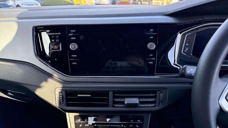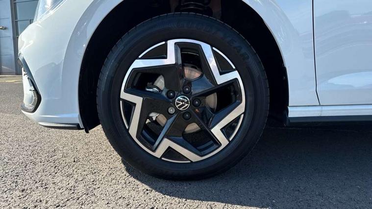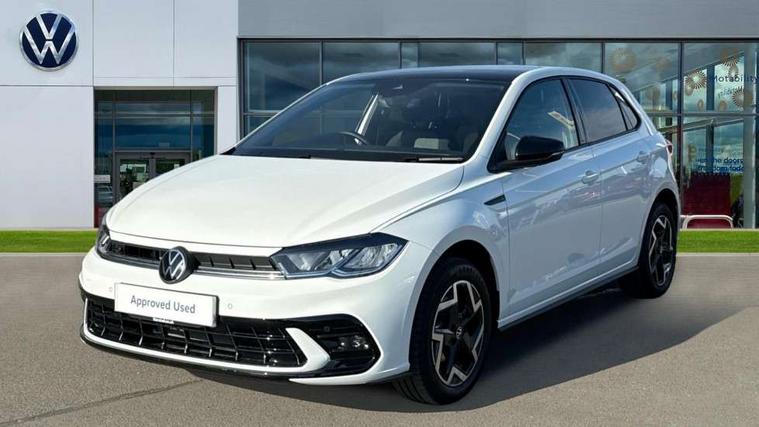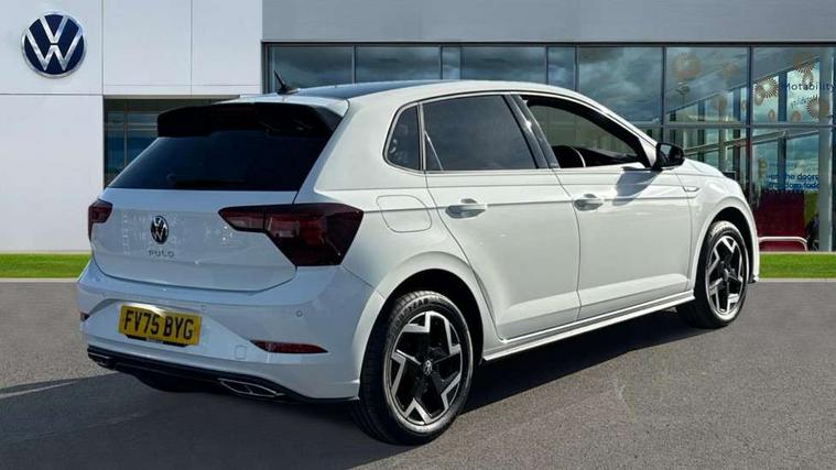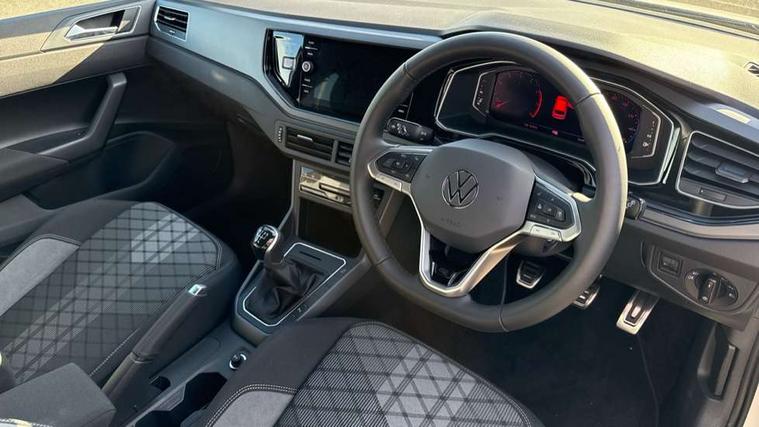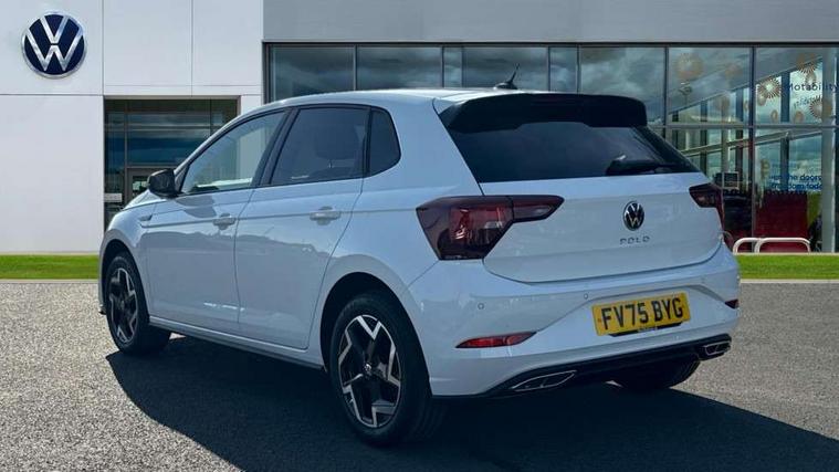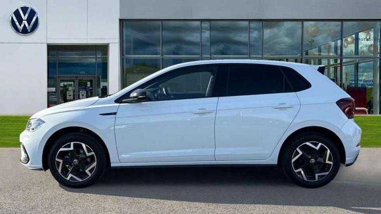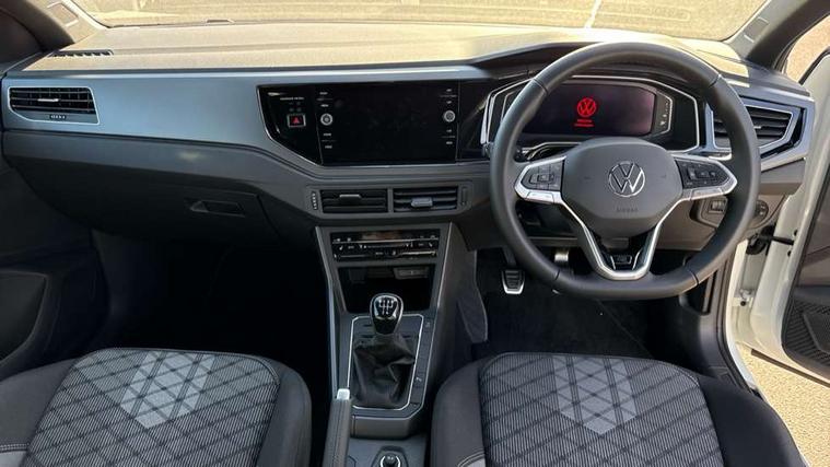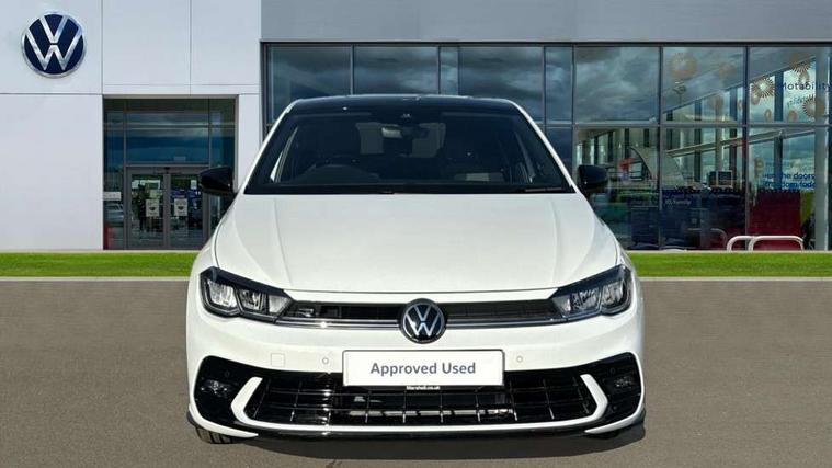 Advanced driver attention and drowsiness monitor, Bluetooth mobile phone interface, Digital Cockpit Pro with 10.25" Display, Dynamic road sign display, Emergency call service, Mobile phone preparation with inductive charging function, Multifunction camera, Power assisted speed sensitive steering, Predictive adaptive cruise control without follow-to-stop and speed limiter, Preparation for We connect and We connect plus, Speedo and rev counter, electronic odometer, trip, service interval display and fuel gauge, Standard rear axle, Travel Assist - Lane keeping system and traffic jam assist, Travel assist including emergency assist, Trip computer, Warning signal and warning light for front and rear seatbelts not fastened, Washer fluid level indicator, Wireless app connect, Front wheel drive, Rear shock absorpion, Start-stop system with battery regeneration (recuperation - energy recovery during braking), DAB Digital radio, Diversity antenna for FM reception, Body colour bumpers, Body colour door handles, Electric front windows, Front scuff plates with R-Line logo, Heat insulating glass windscreen, Power folding adjustable/heated exterior mirrors and front passenger exterior mirror lowering function, Rear electric windows, Rear fog light, Rear side wing doors, Rear windscreen washer and wiper with interval delay, Third brake light, 12V power socket in centre console, 2 USB-C ports in the front, 2 USB-C charging sockets on the center console in the rear, 3 rear head restraints, 60/40 split folding rear seat and rear seat bench not split, Air care climatronic air conditoning system with active combination filter and 2-zone temperature control, Black roof lining, Carpet mats, front and rear, Chrome plated radiator grille inserts, air vent surrounds and light switch surrounds, Door and side trim panel, Driver and front passenger seat height adjustment, Driver/passenger sunvisors with illuminated vanity mirrors, Front centre armrest, Front footwell illumination, Front seat backrest storage pockets, Front sports comfort seats, Handbrake lever handle in leather, Headliner in recycled material, Isofix child seat preparation easy-fit (for two outer rear seats, and front passenger seat) compatible with I-size, Karoso artvelours cloth upholstery, Leather trimmed gear knob, LED interior light with switch off delay and dimmer, 2 reading lights front and rear, Luggage compartment cover, Luggage compartment floor, Luggage compartment lighting, Lumbar adjustment for front seats, Multifunction steering wheel, Single front passenger seat, Stainless steel pedals, Standard pedal cluster, Light and sight pack - Polo R-Line/Black Edition, 3 point height adj front seatbelts + pretensioners, 3x3 point rear seatbelts, ABS, Driver and front passenger airbag with front passenger airbag deactivation, Drivers and front passengers safety optimised head restraints, ESC (Electronic stability control) + EDL (Electronic Differntial lock) and ASR (Traction control), Extended and predictive pedestrian/ cyclist protection, Front curtain and side airbags with center airbag, Hill hold control, Manual child lock in rear doors, Single tone horn, Tyre pressure loss indicator, Alarm with interior protection, Anti-theft alarm system with interior monitoring, backup horn, and towing protection, Anti-theft wheel bolts, Electronic engine immobiliser, Chrome applications on rotary light, mirror adjustment, window regulator switches, outlet with frame in black, Dark grey anodised matt decorative inserts in dash and front door panels, 16" Coventry alloy wheels, Low rolling resistance tyres,